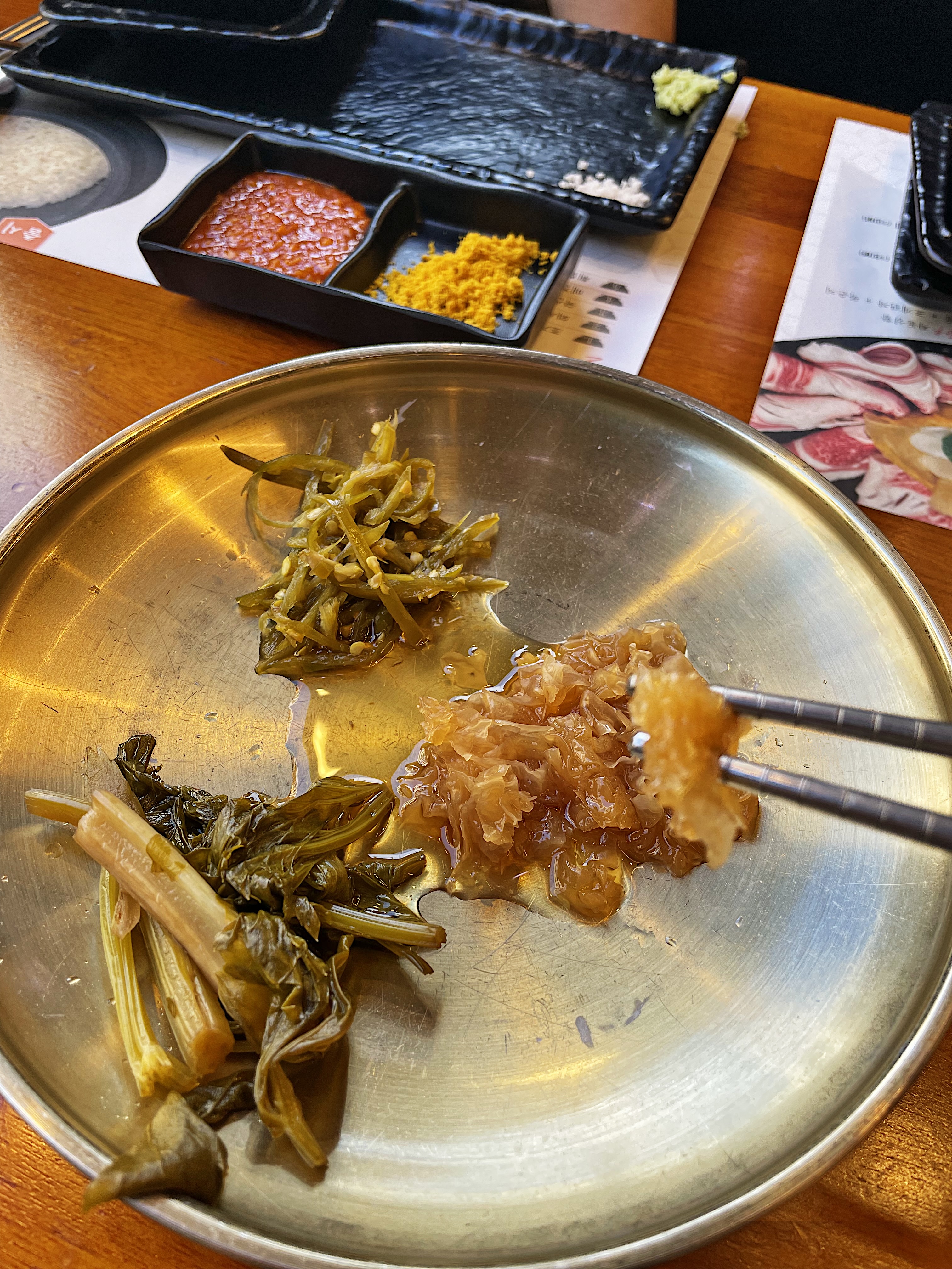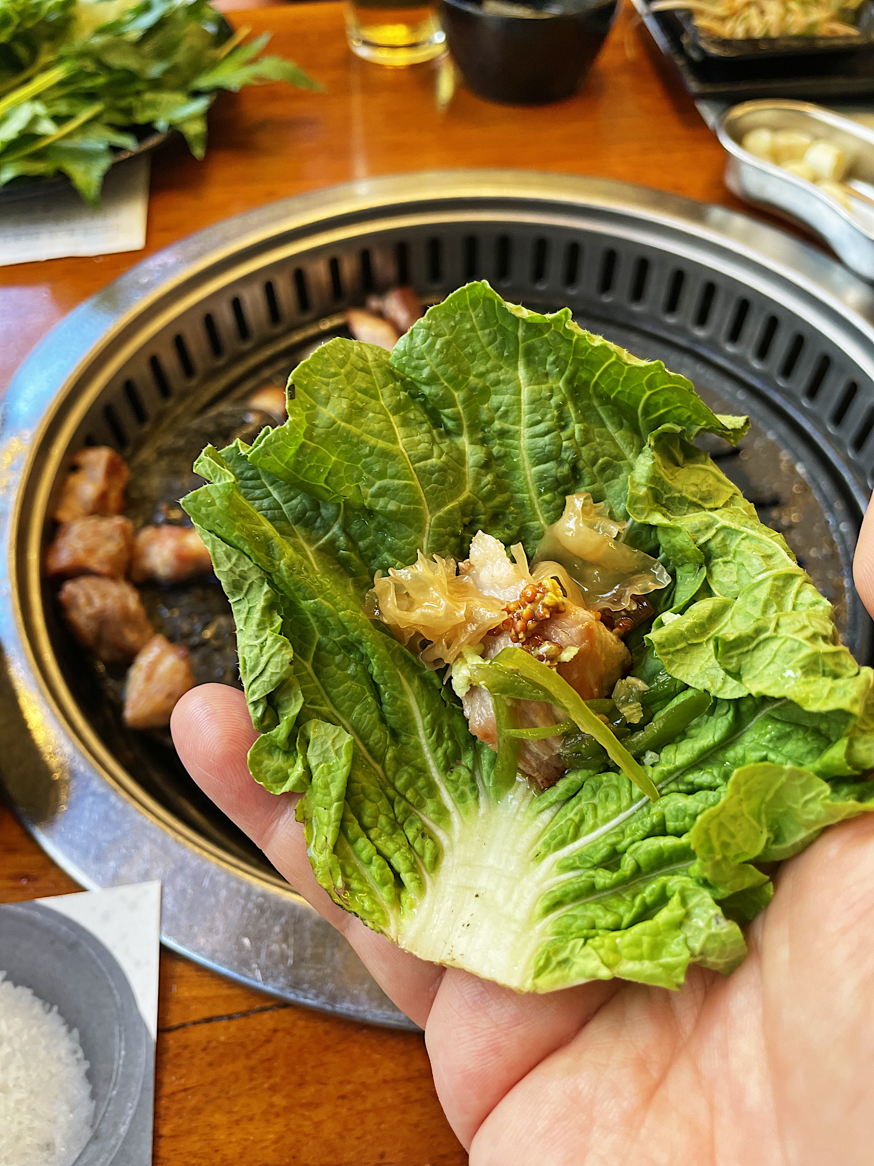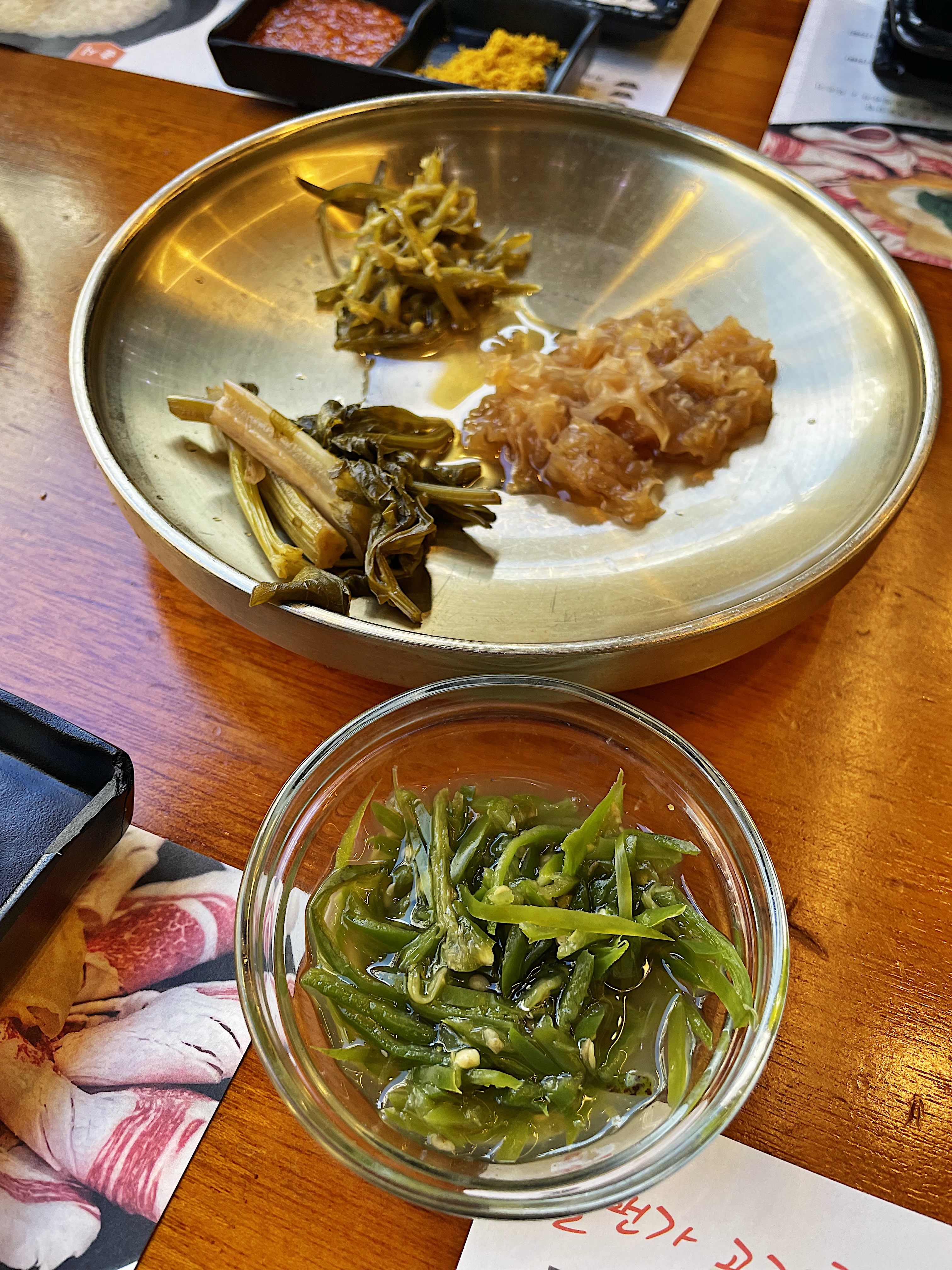 사실 맛있는 고깃집에는 장아찌 몇 개와 쌈야채만 있으면 되는 것 같아요.
