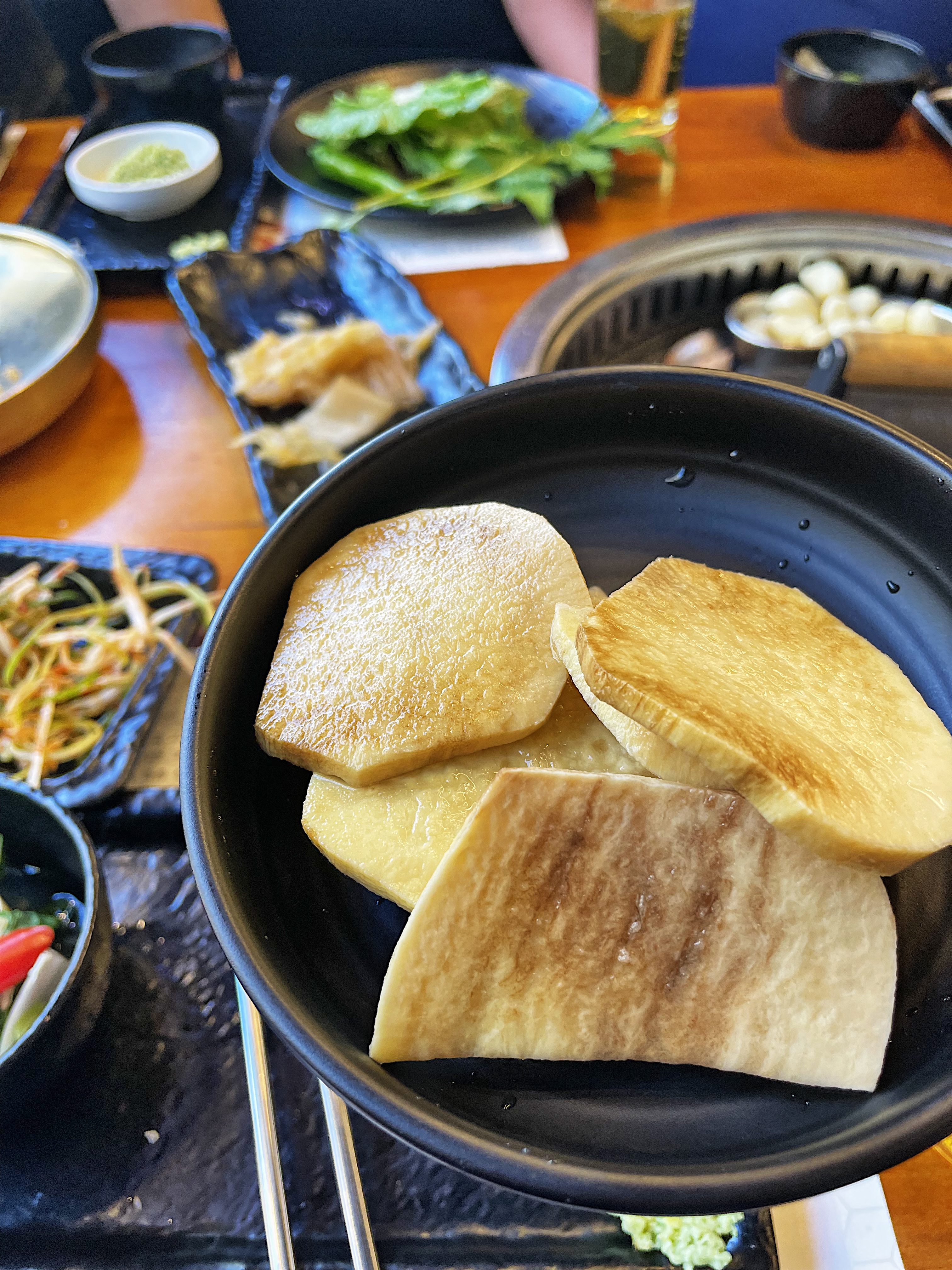 셀프바에 있던 고구마는 물에 담가놓은 지 오래되어 색이 좀 변했구요.