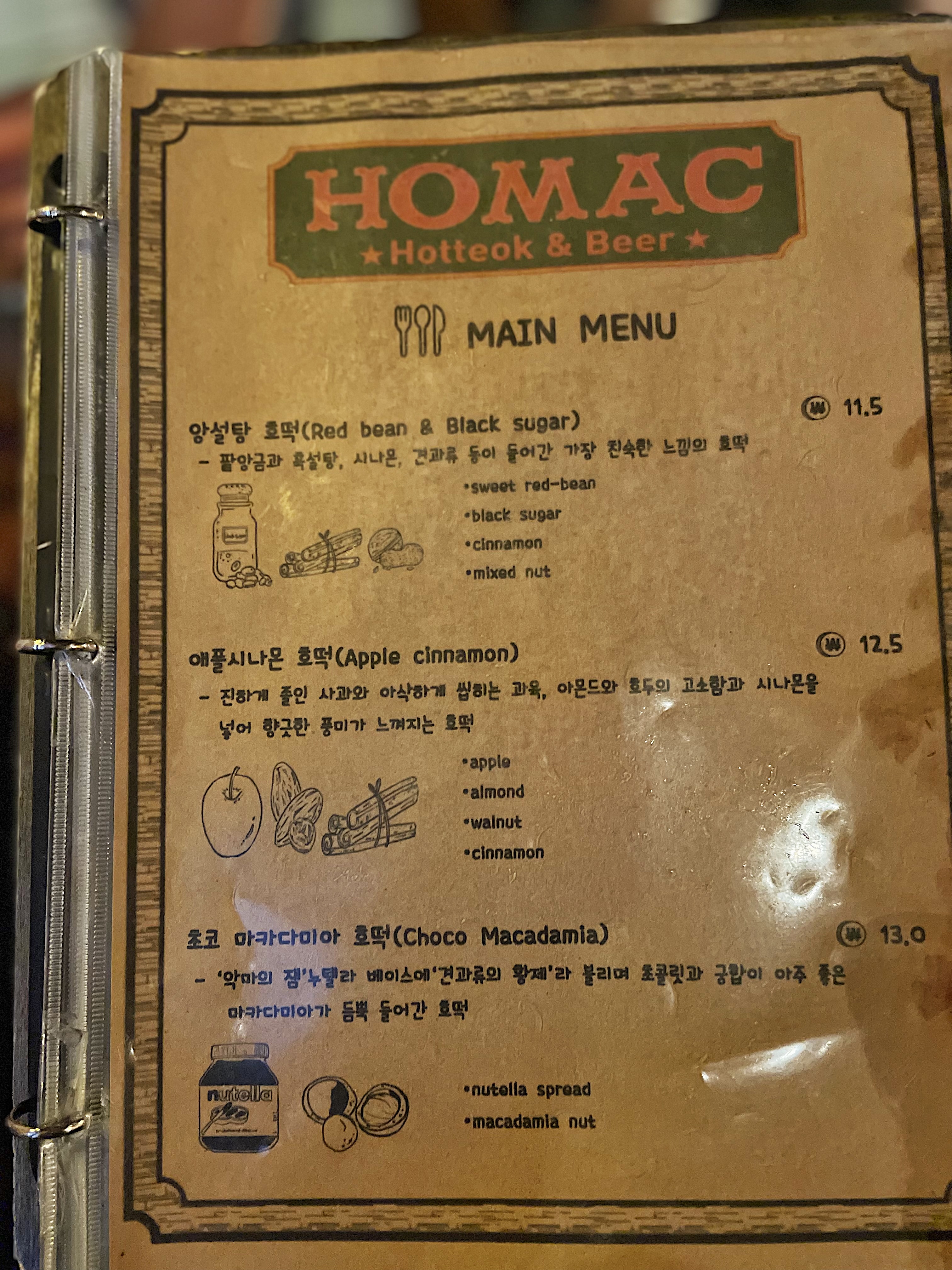 넣어 향긋한 풍미가 느껴지는 호떡이라고 메뉴판에 적혀 있습니다.