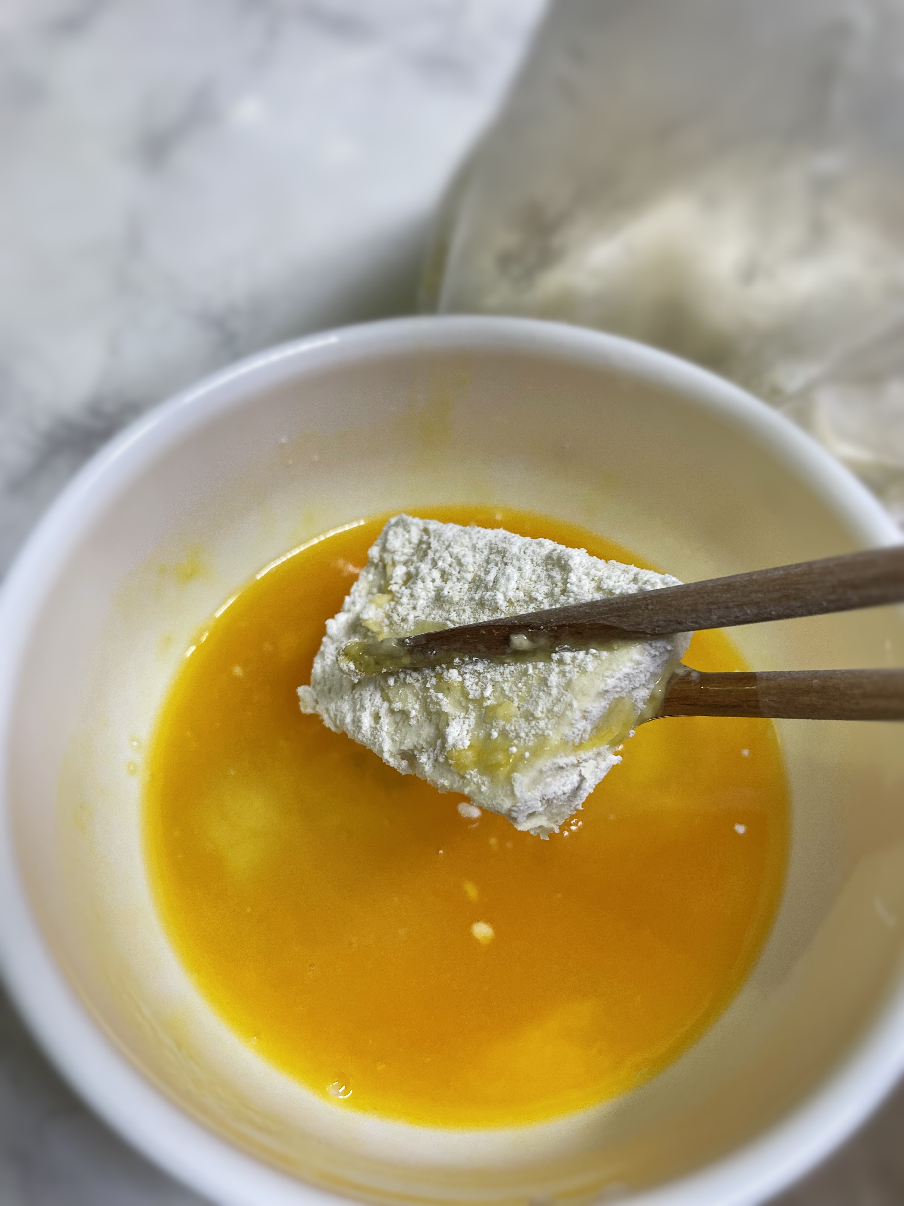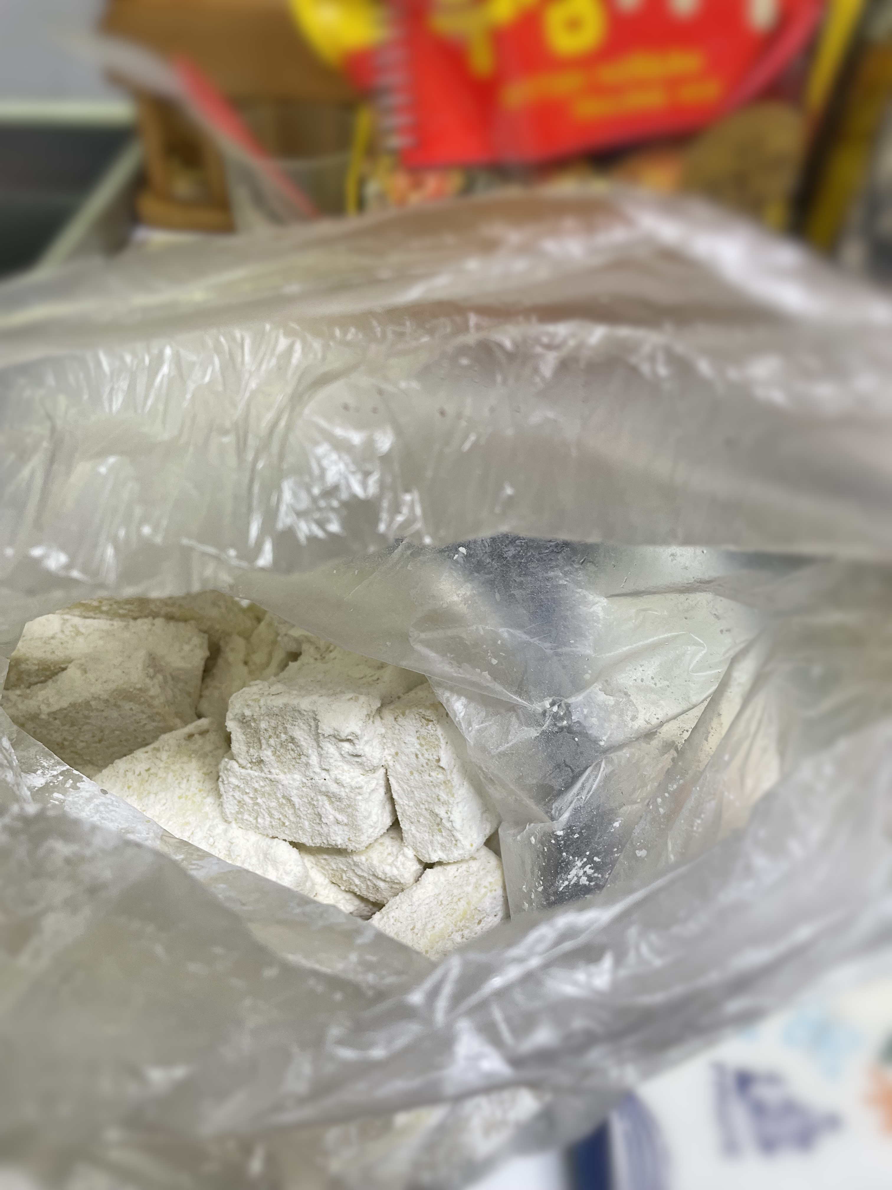 저는 간편하게 위생 비닐팩에 부침가루 한컵 넣고, 두부를 넣어서 쉐킷쉐킷 흔들어 주었습니다.
