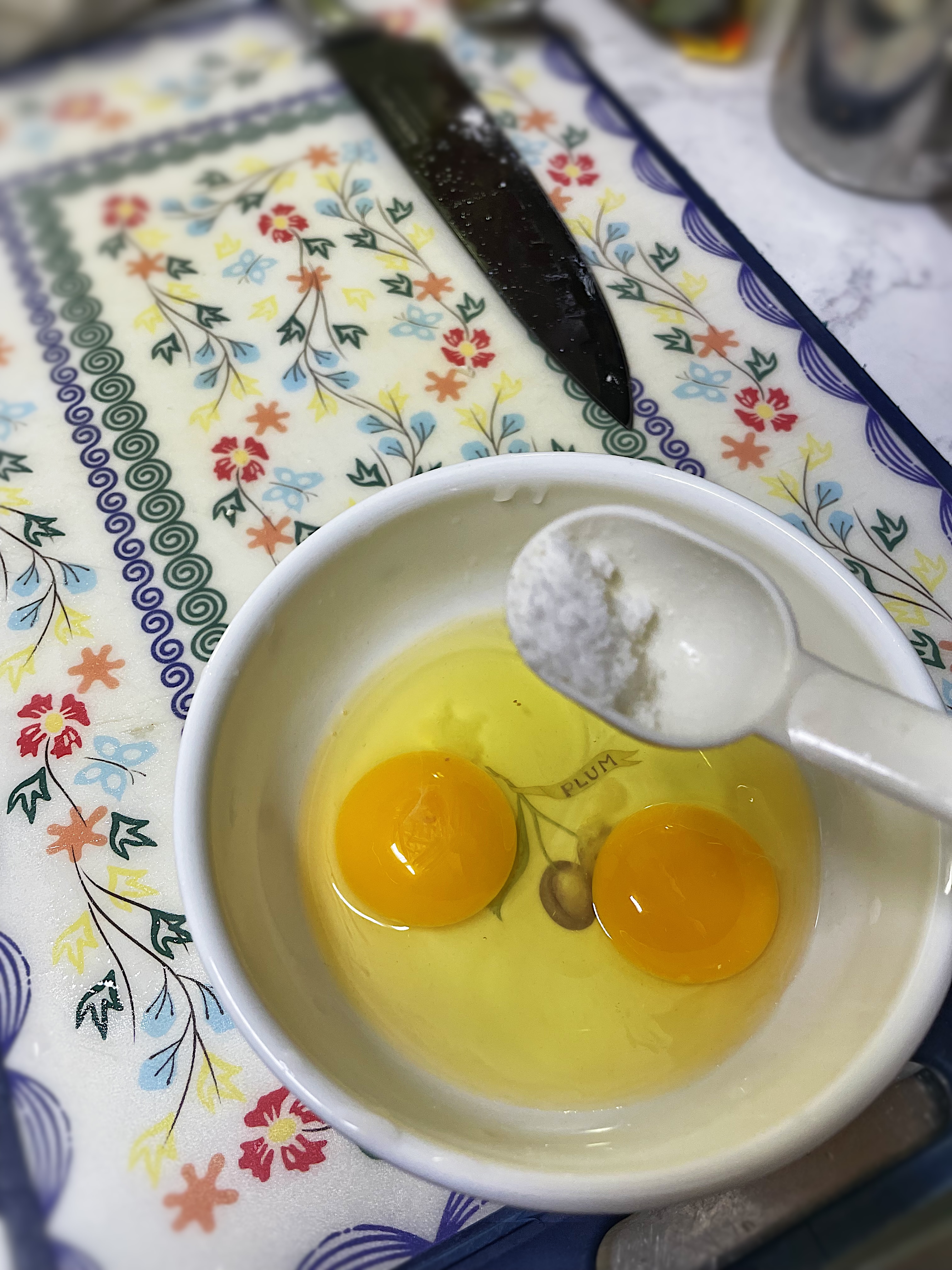계란 2개에 소금(0.3)으로 살짝 간하고 젓가락으로 휘휘 저어 섞어 줍니다.
