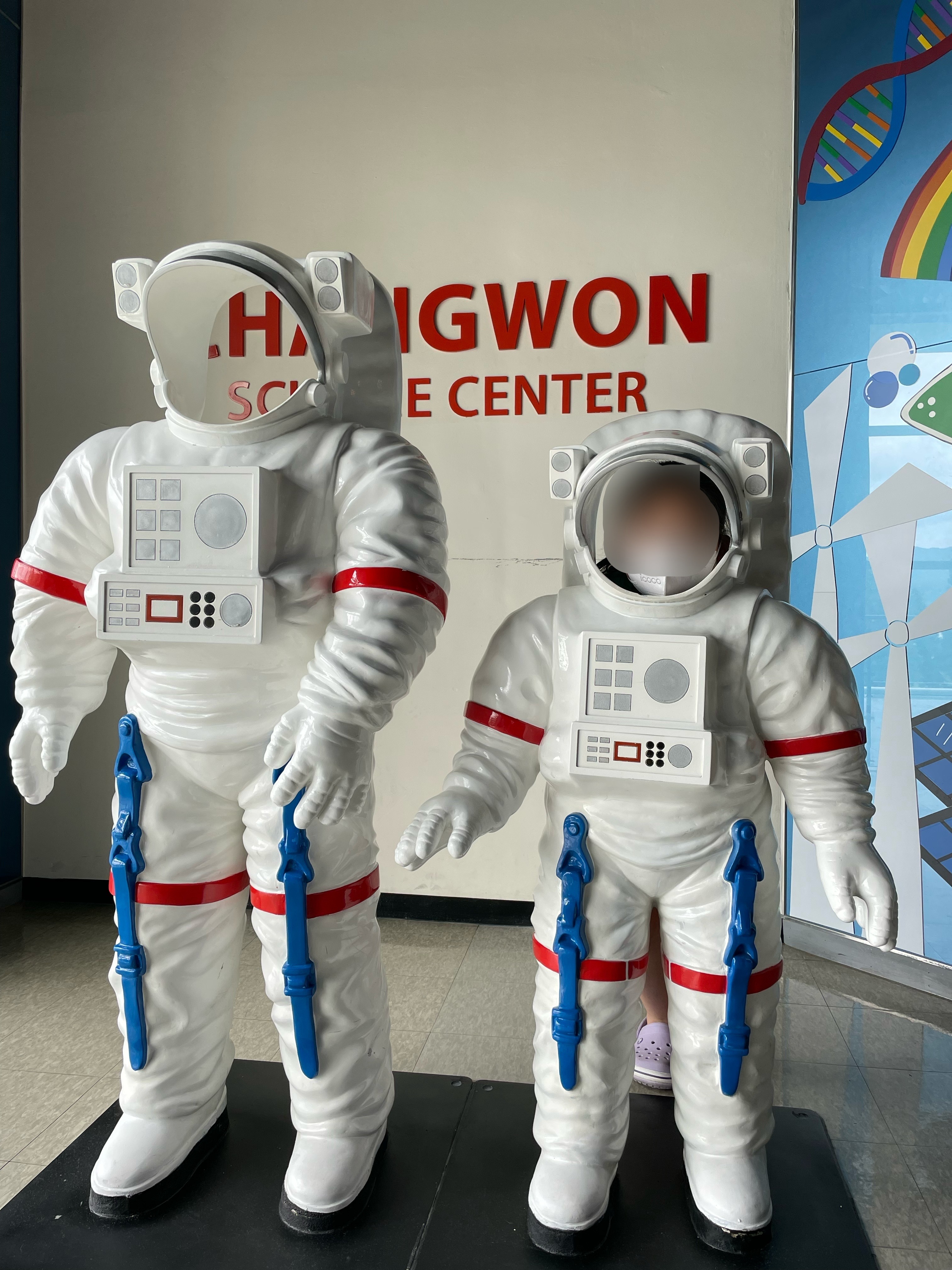 2층 입구에는 우주복 모양의 인형과 함께 사진도 담을 수 있답니다.