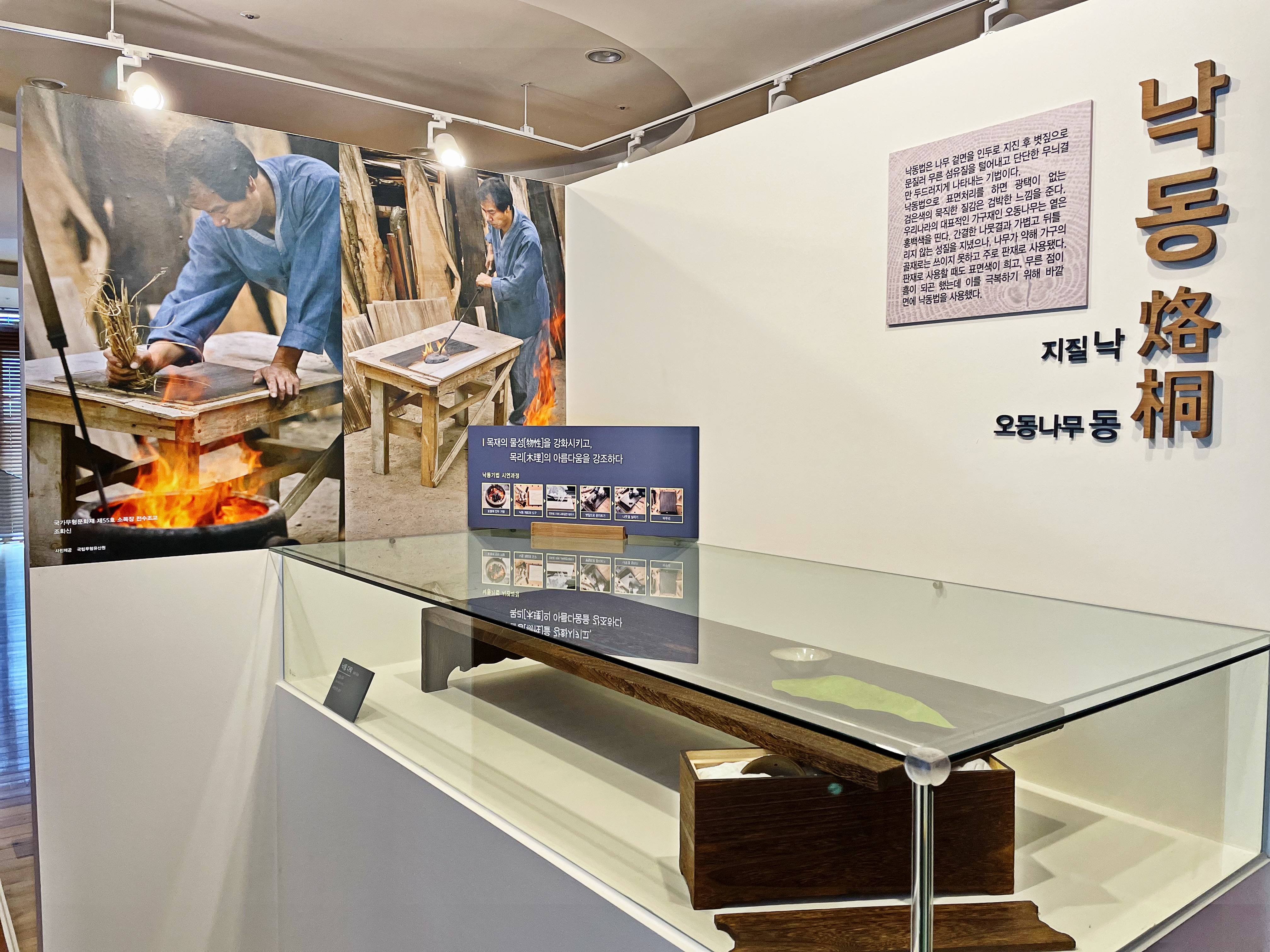 약한 오동나무의 겉면을 인두로 지진 후 볏짚으로 문질러 무른 섬유질을 털어내고 단단한 무늬결만 두드러지게 나타내는 기법을 '낙동' 이라고 합니다.