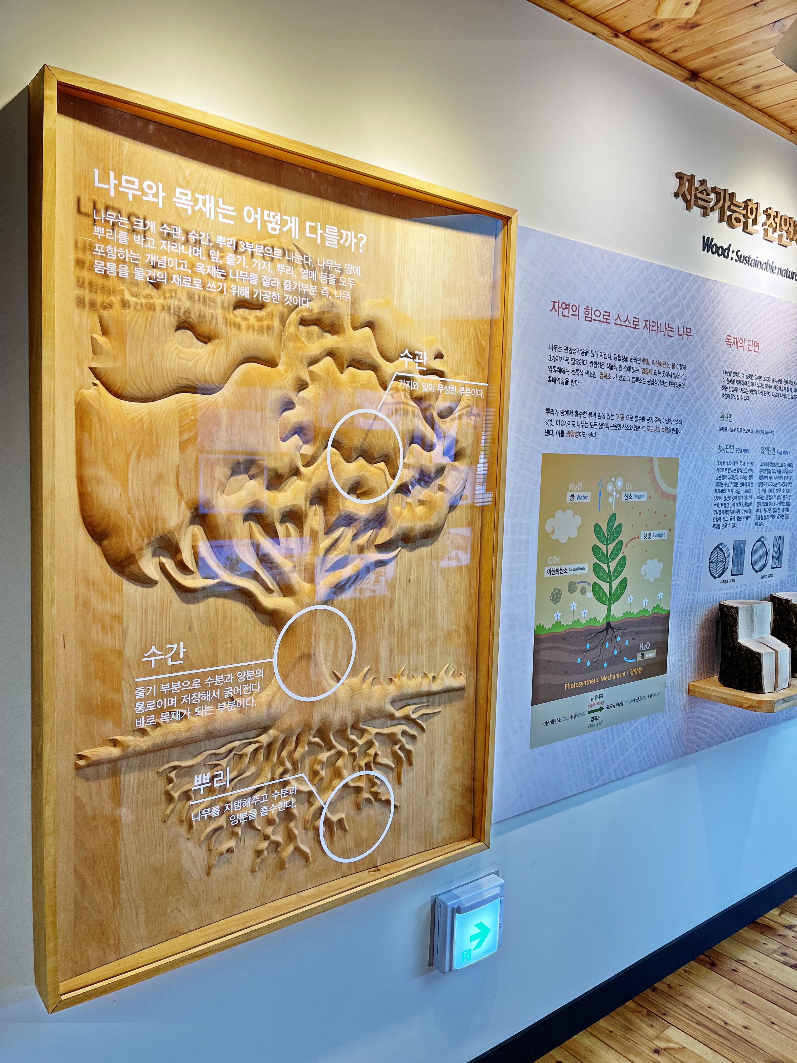 이 곳에서는 침엽수와 활엽수 등 목재 속의 구조에 대해 살펴볼 수 있습니다.