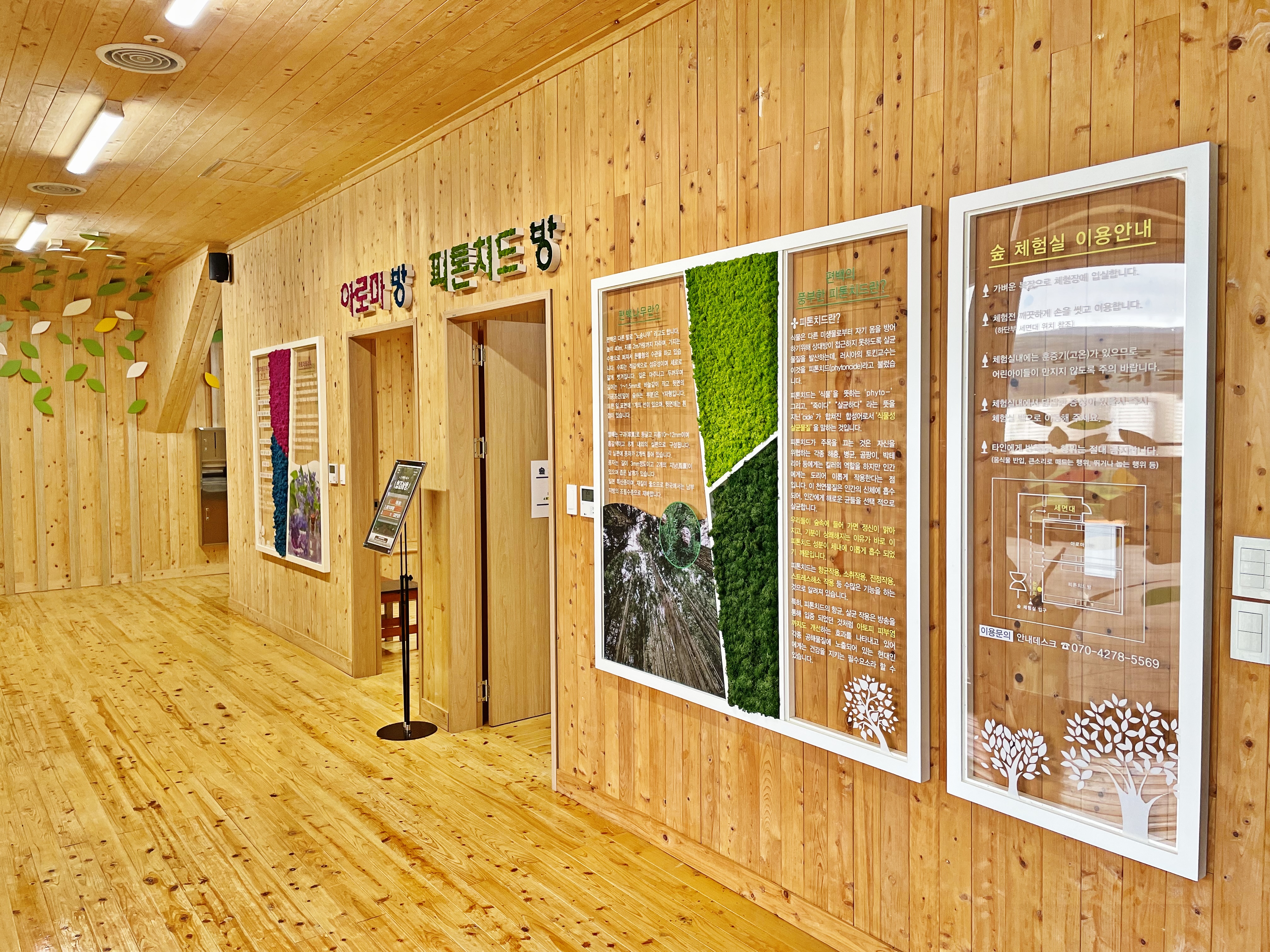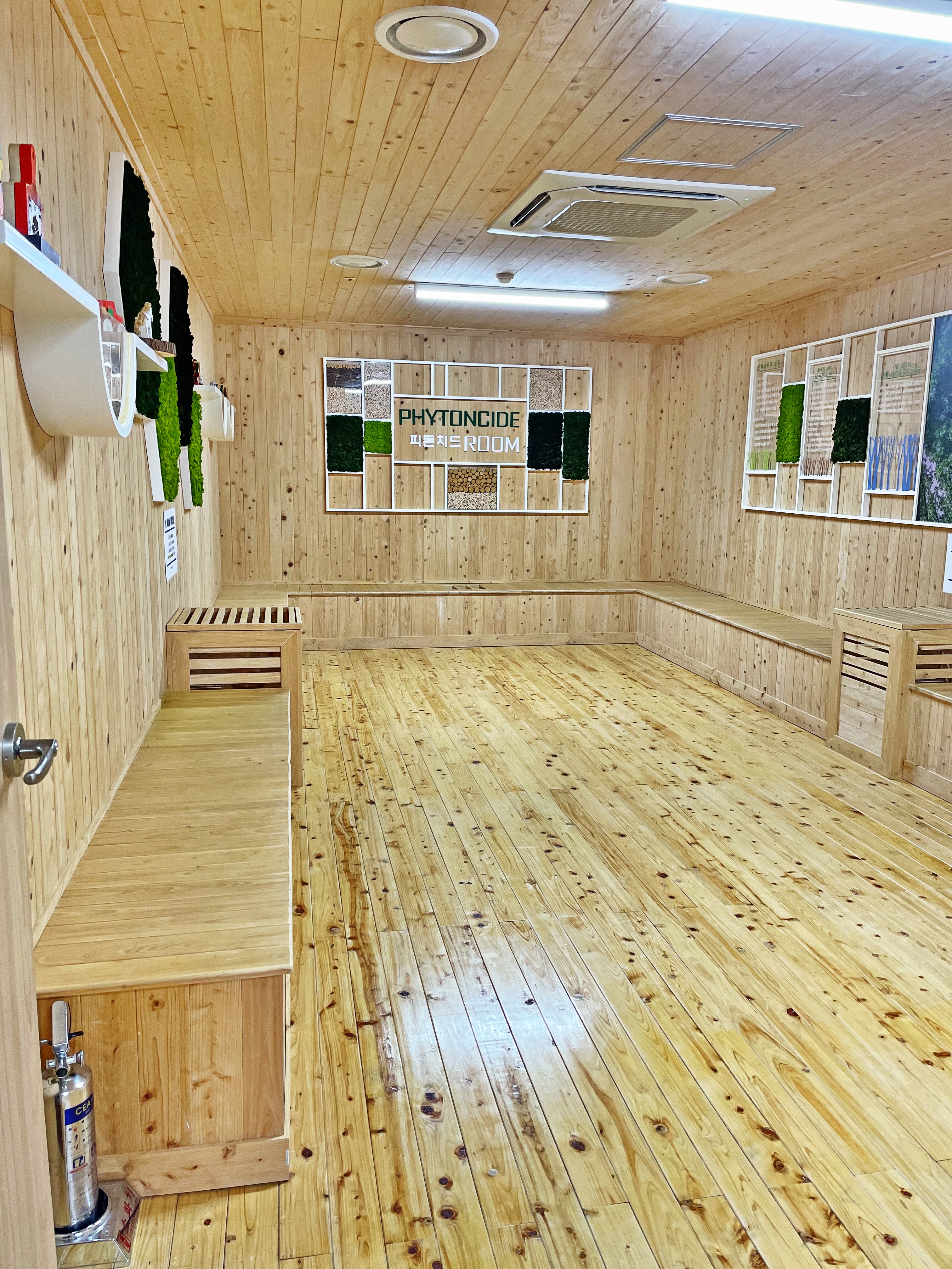 기존 건물에는 숲체험실로 피톤치드와 아로마를 체험할 수 있는 방이 2개 있습니다.