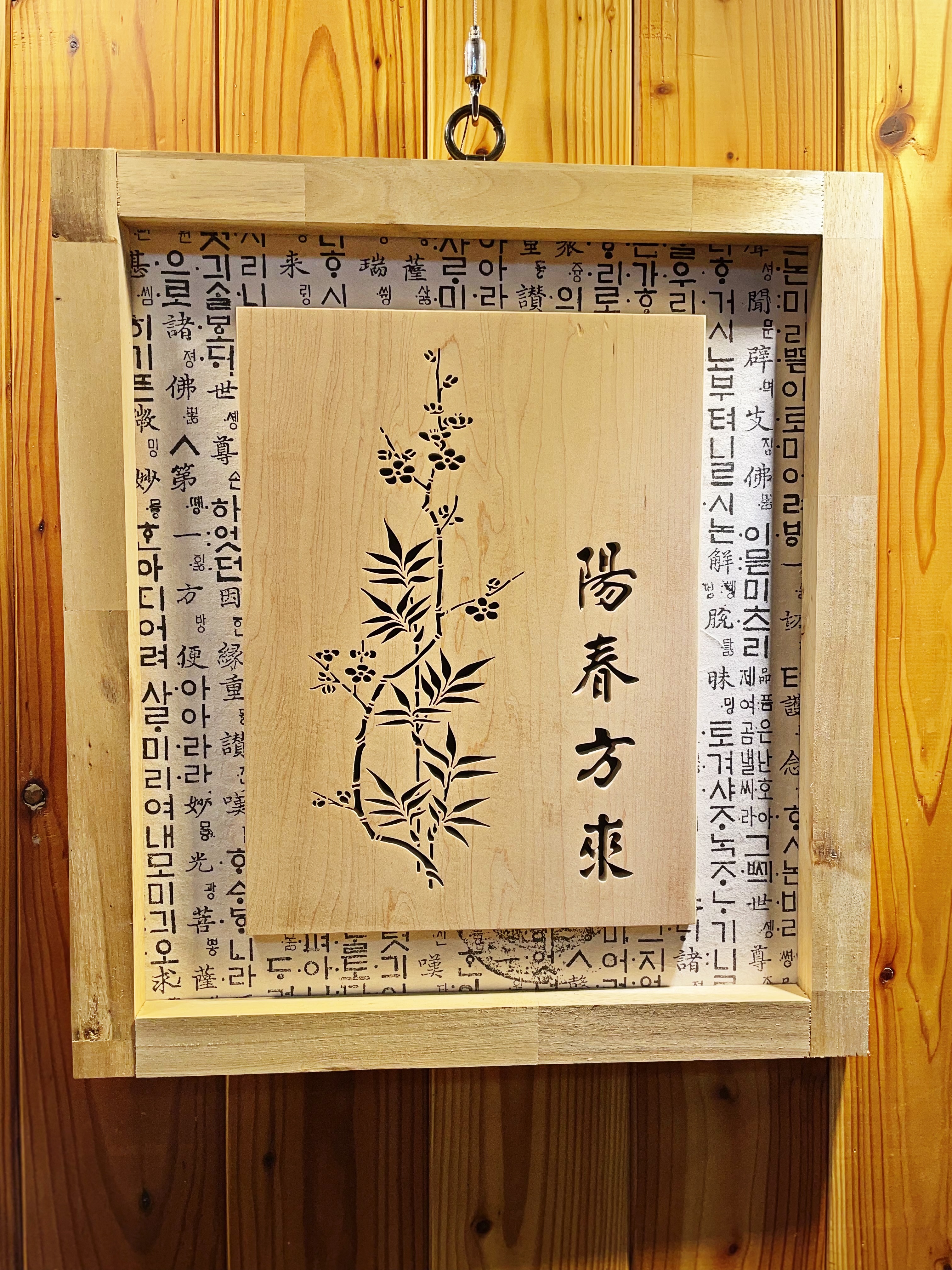 위 사진은 국가무형문화재이신 각자장 김각한 선생의 작품으로 해당 글자를 주목나무에 새긴 작품입니다.