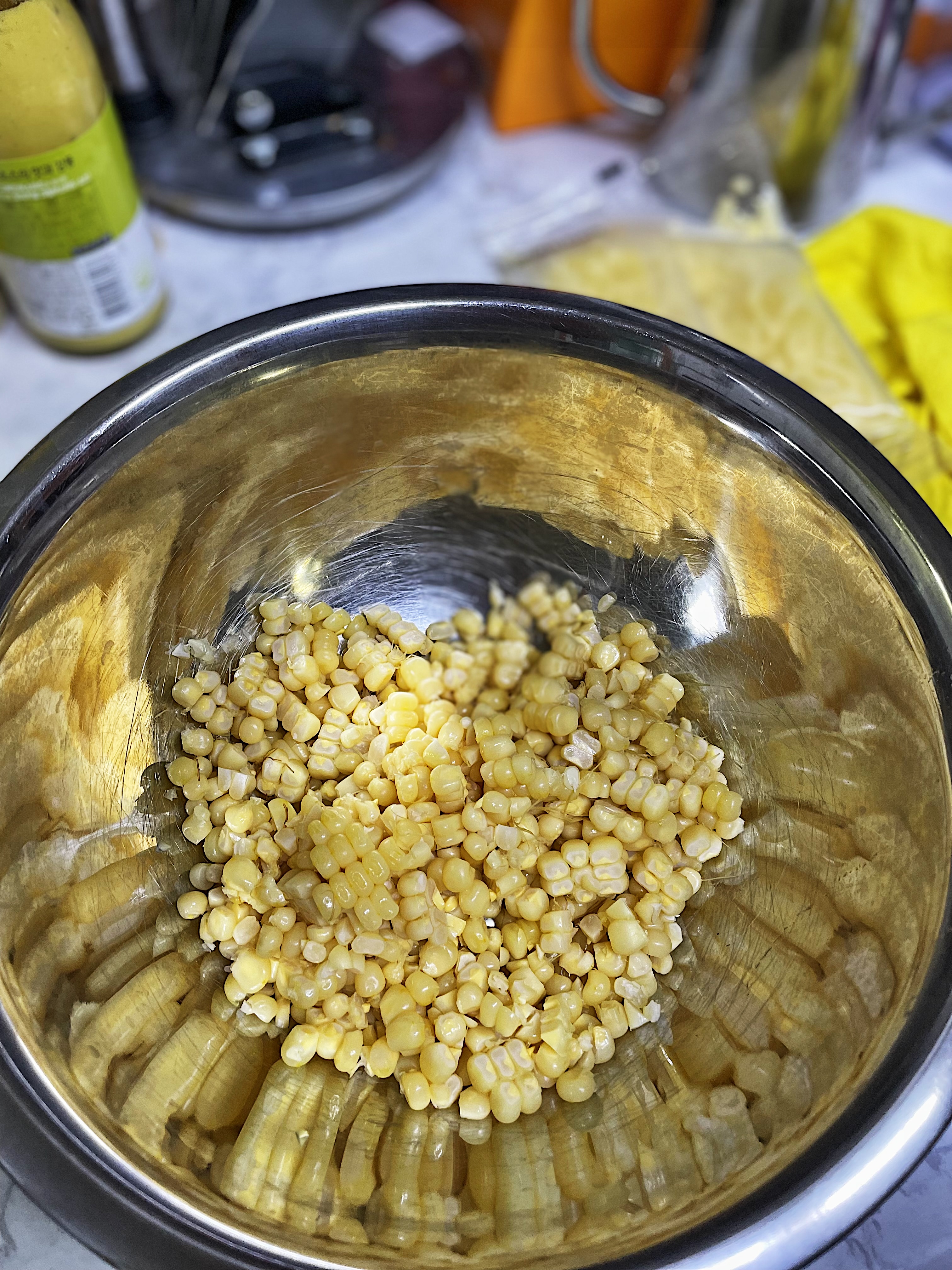 스뎅볼에 분리해 낸 옥수수 알갱이를 담아 두고요.