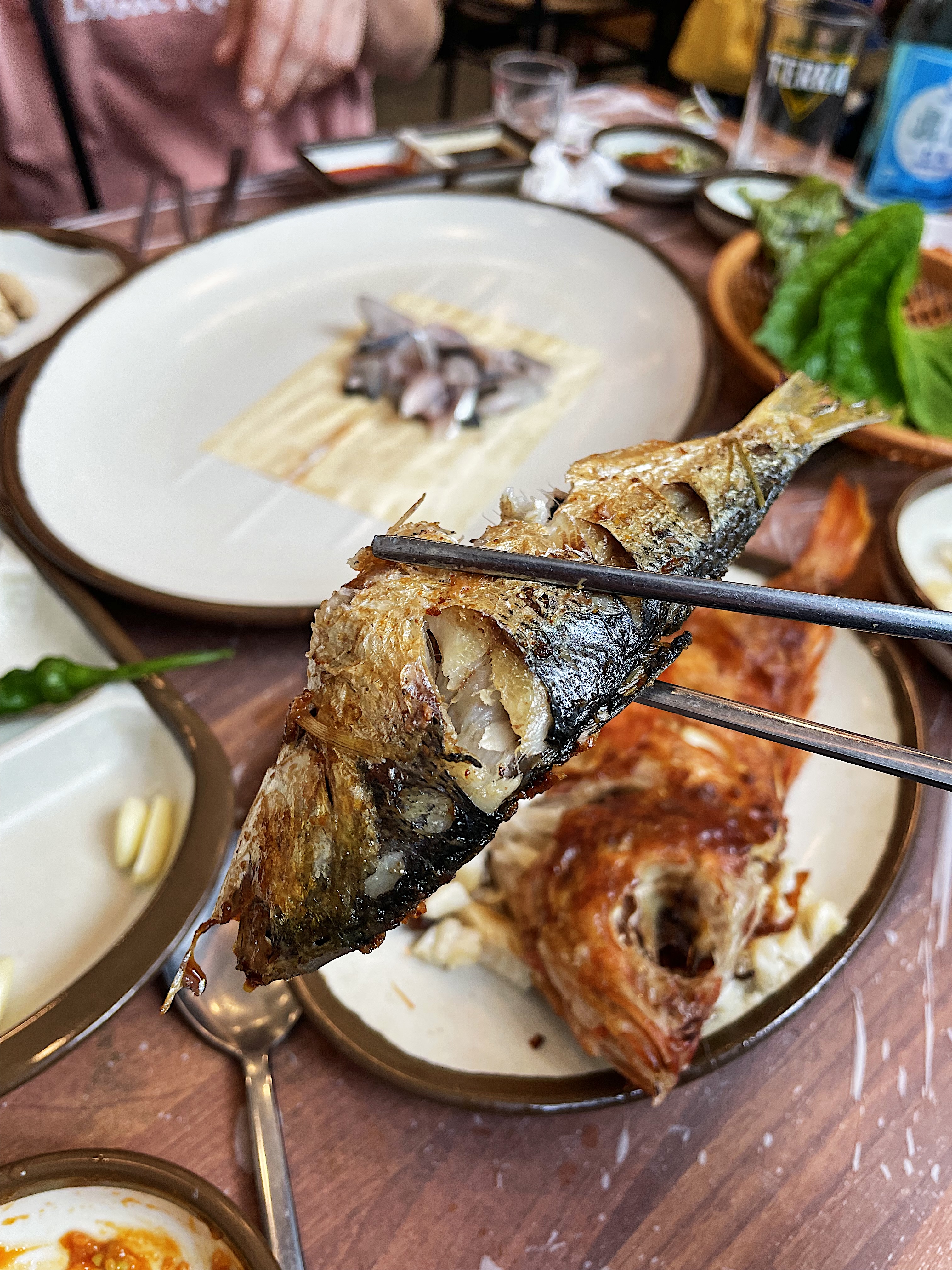 회를 다 먹어갈 때쯤 주방 이모께서 구운 생선을 내어 주십니다.