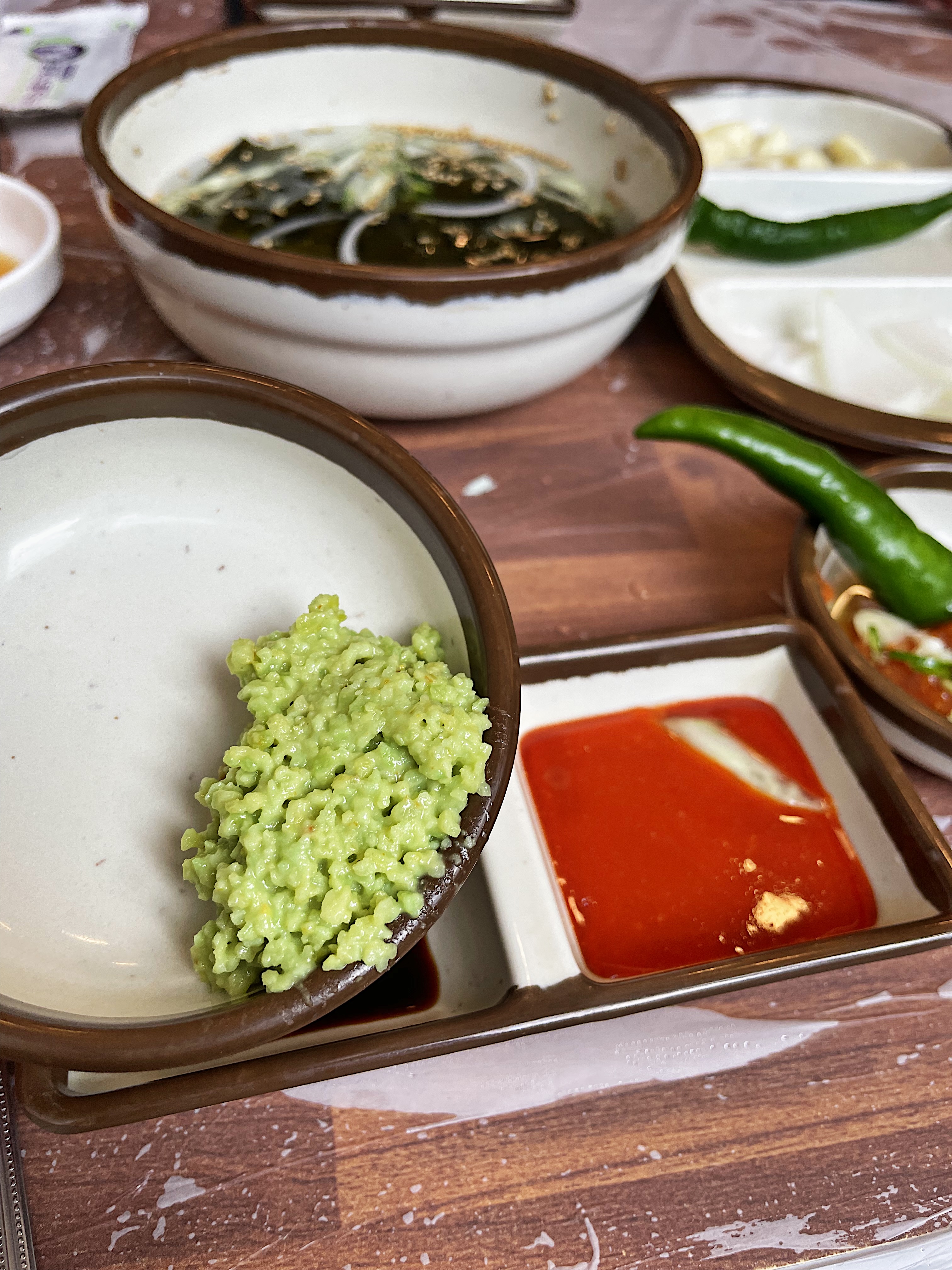 테이블에는 초장과 간장이 항상 비치되어 있습니다.