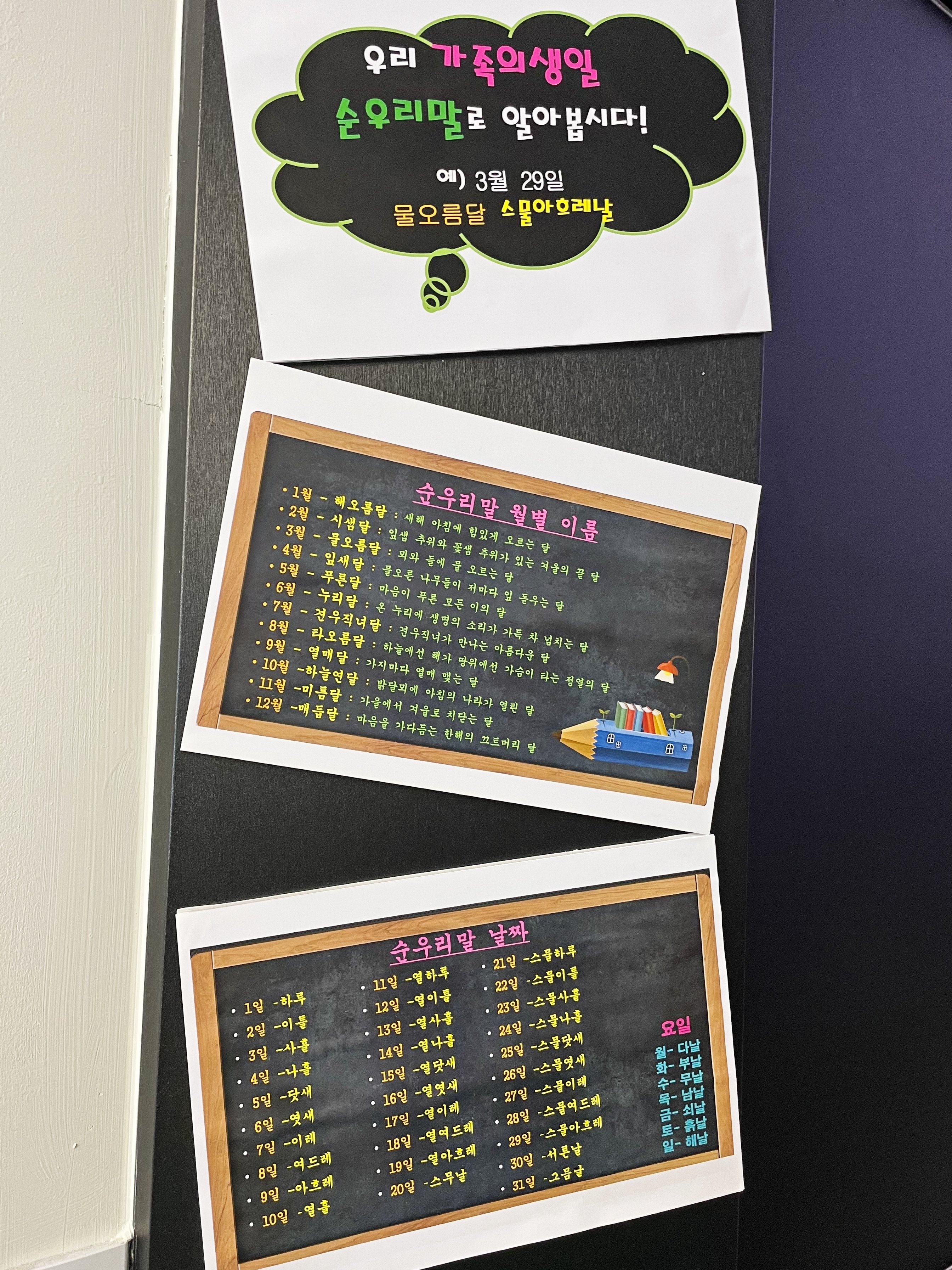 월별, 날짜, 요일까지 순우리말이 있다는 건 처음 알았습니다.