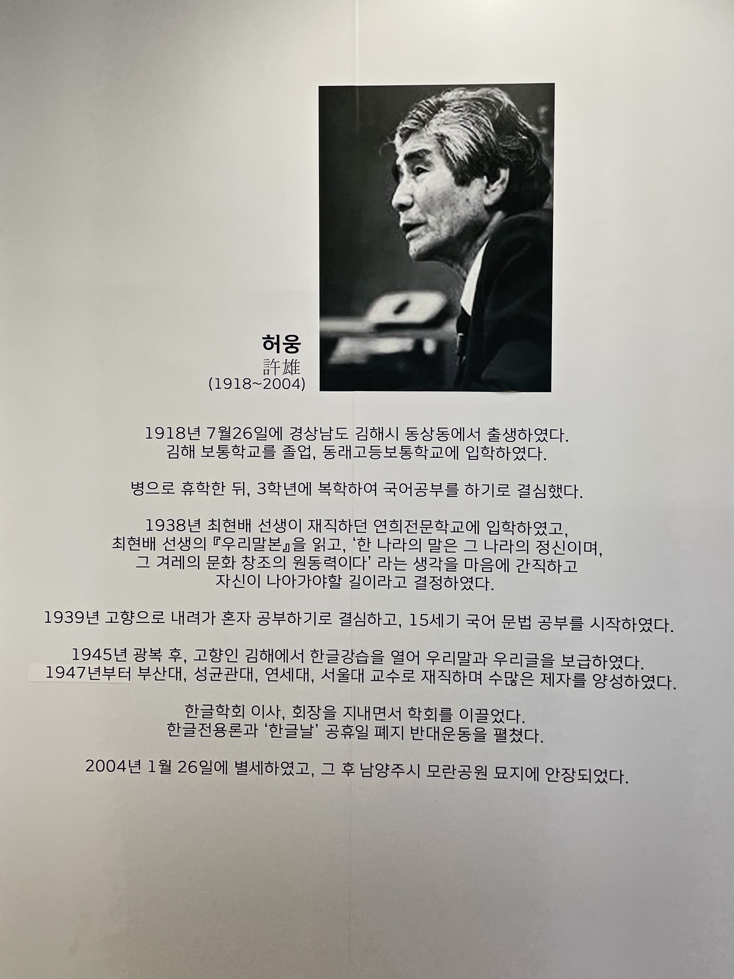 한글학회 회장까지 역임하며 2004년 별세하시기 전까지 우리말과 글에 대해 많은 업적을 남기신 분이라고 합니다.