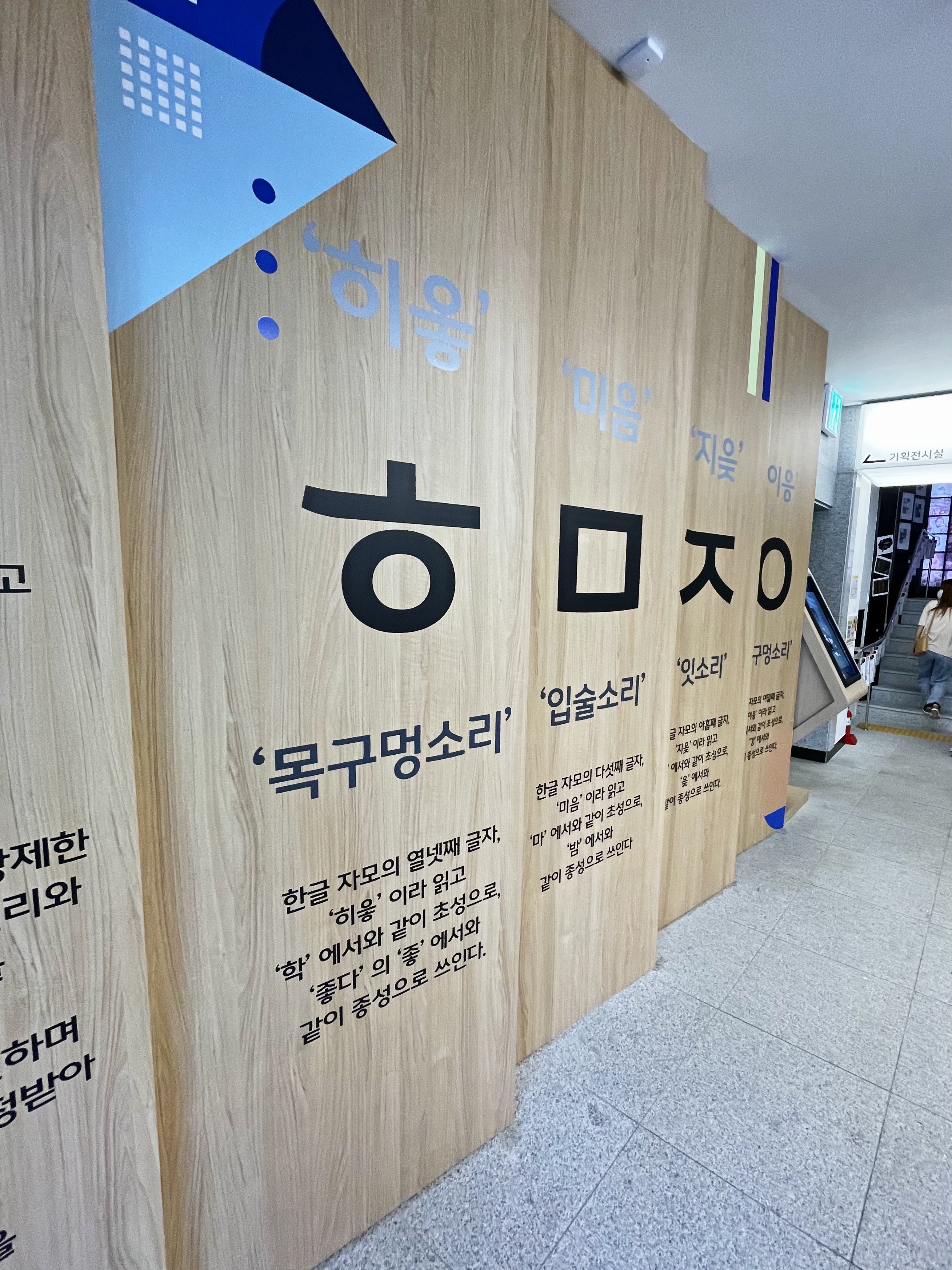 좌측으로는 우리 한글의 여러 소리에 대한 전시물이 제일 먼저 반겨줍니다.