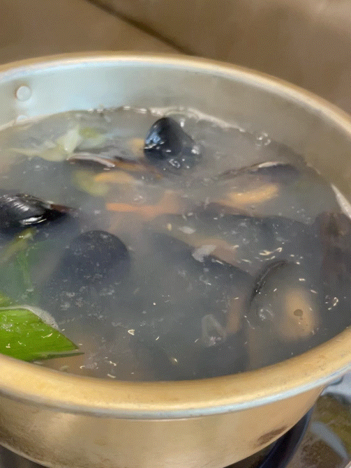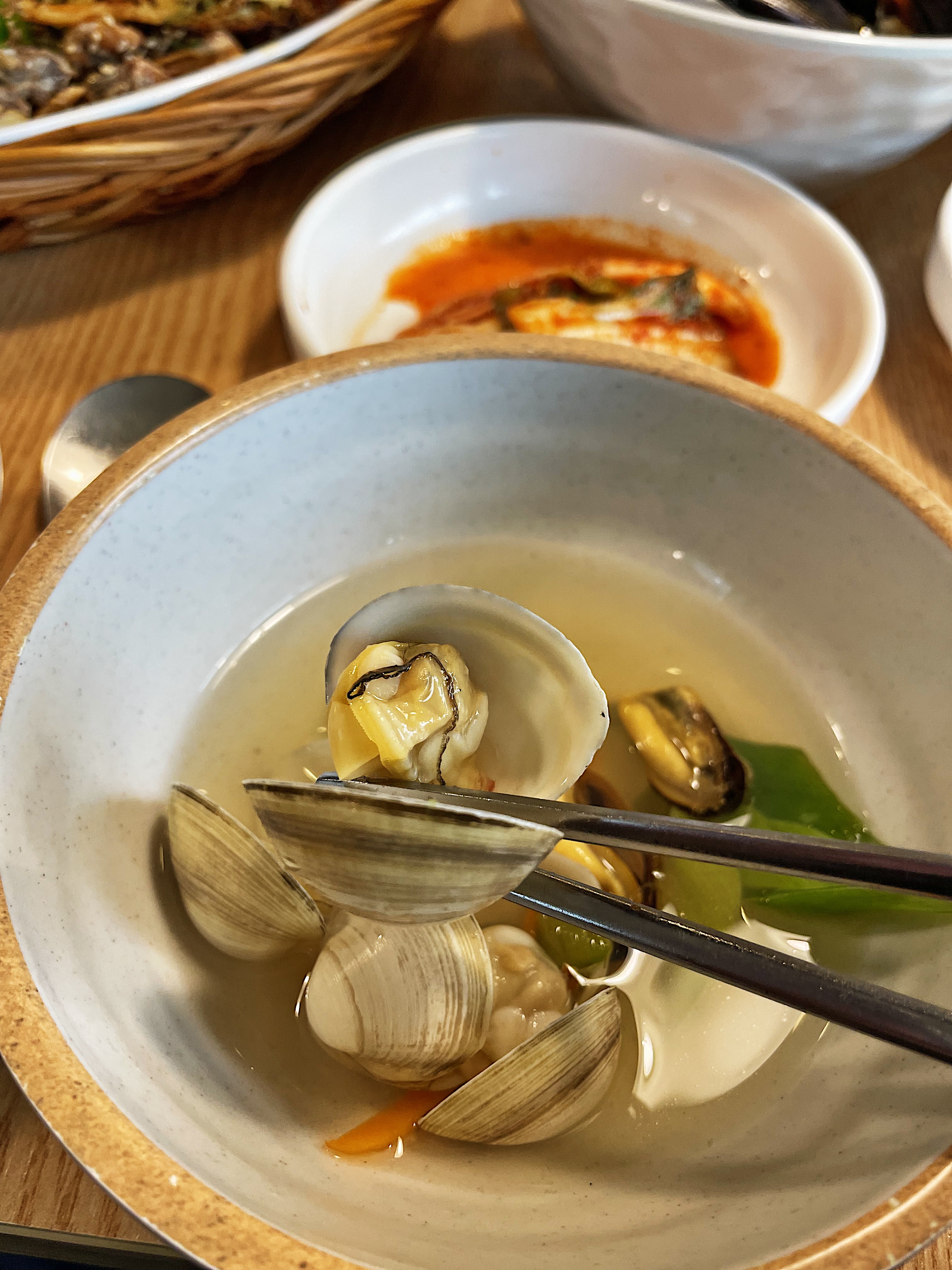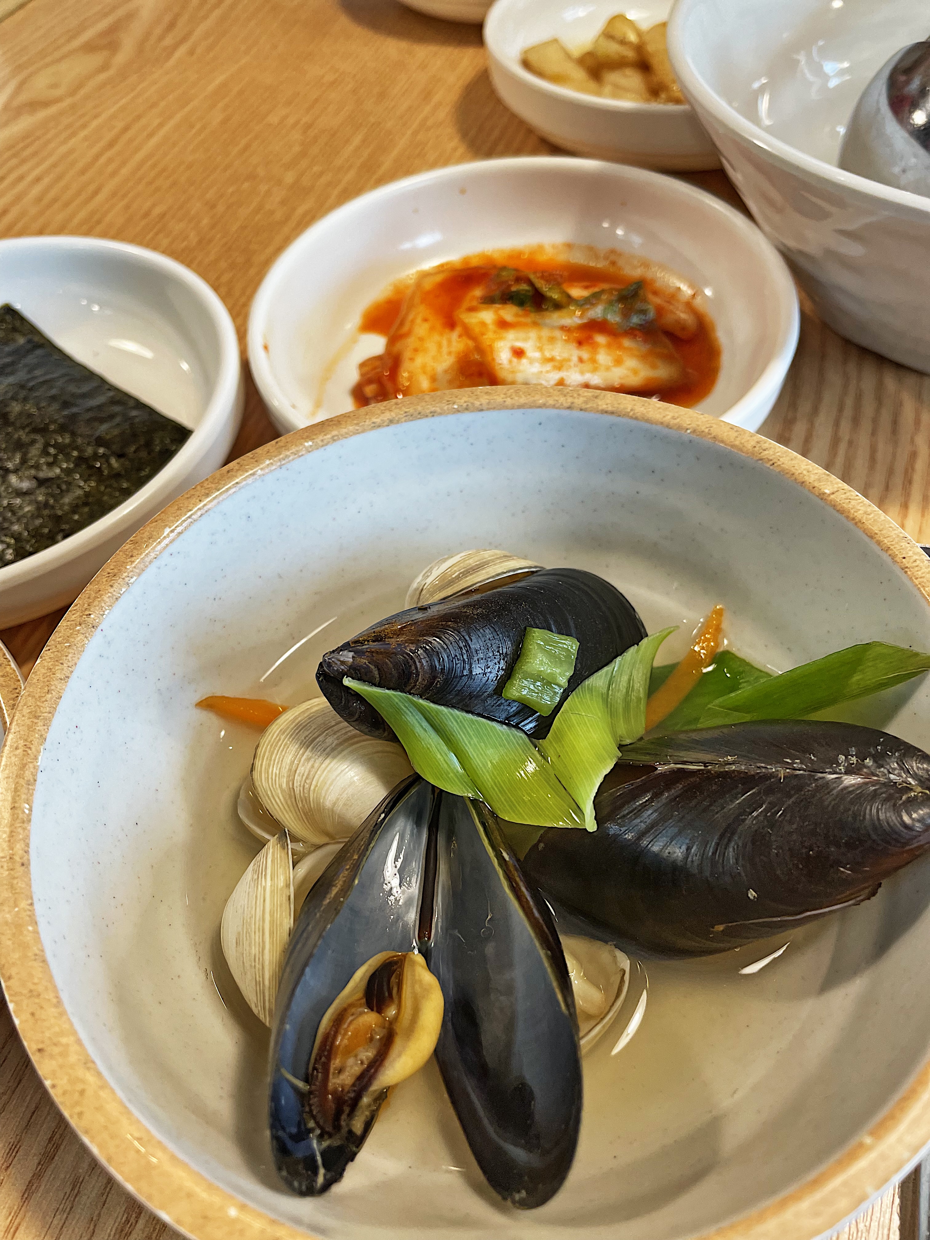 홍합뿐만 아니라 바지락도 들어가 있어서 국물이 너무 시원하더라구요.