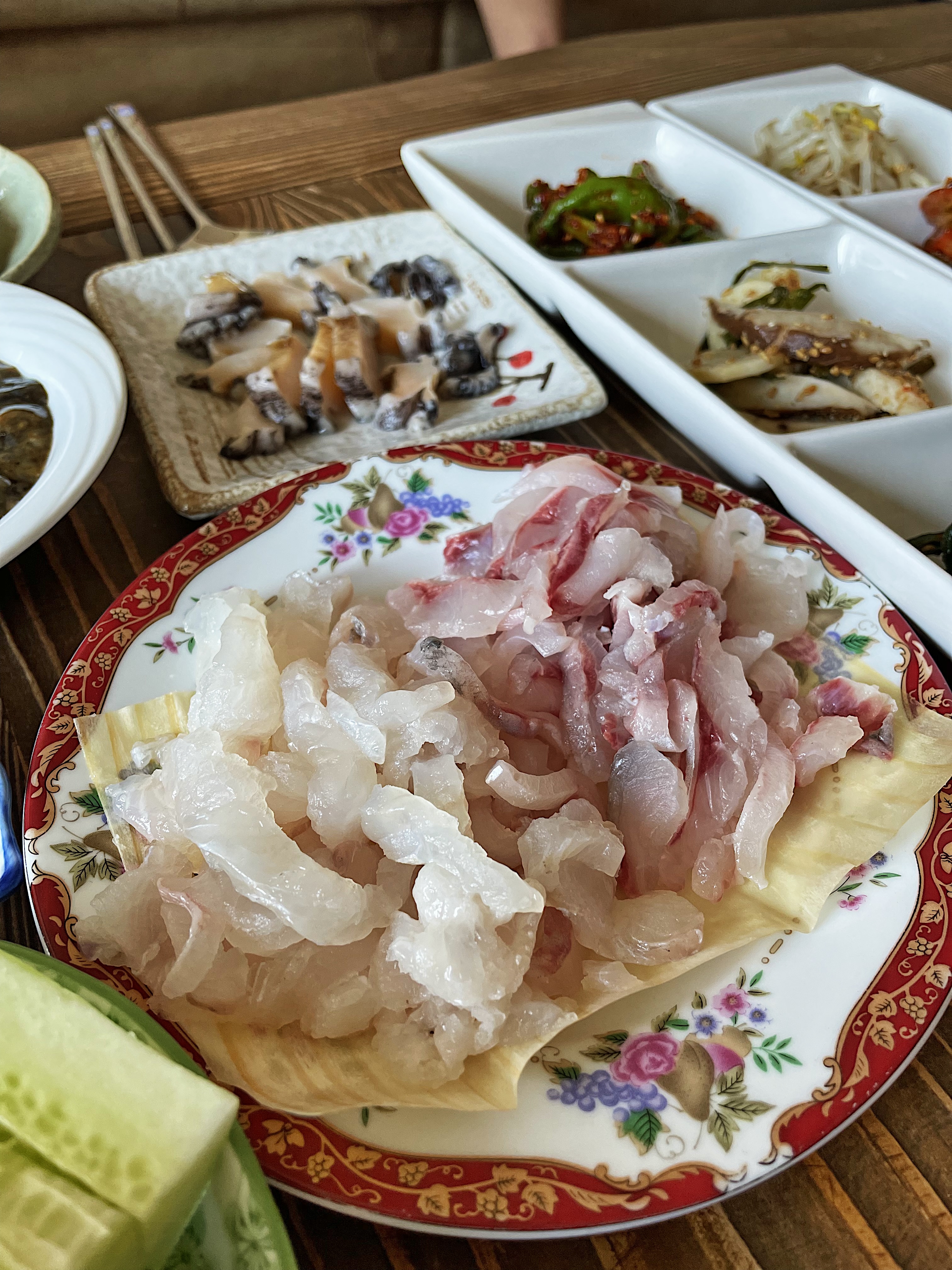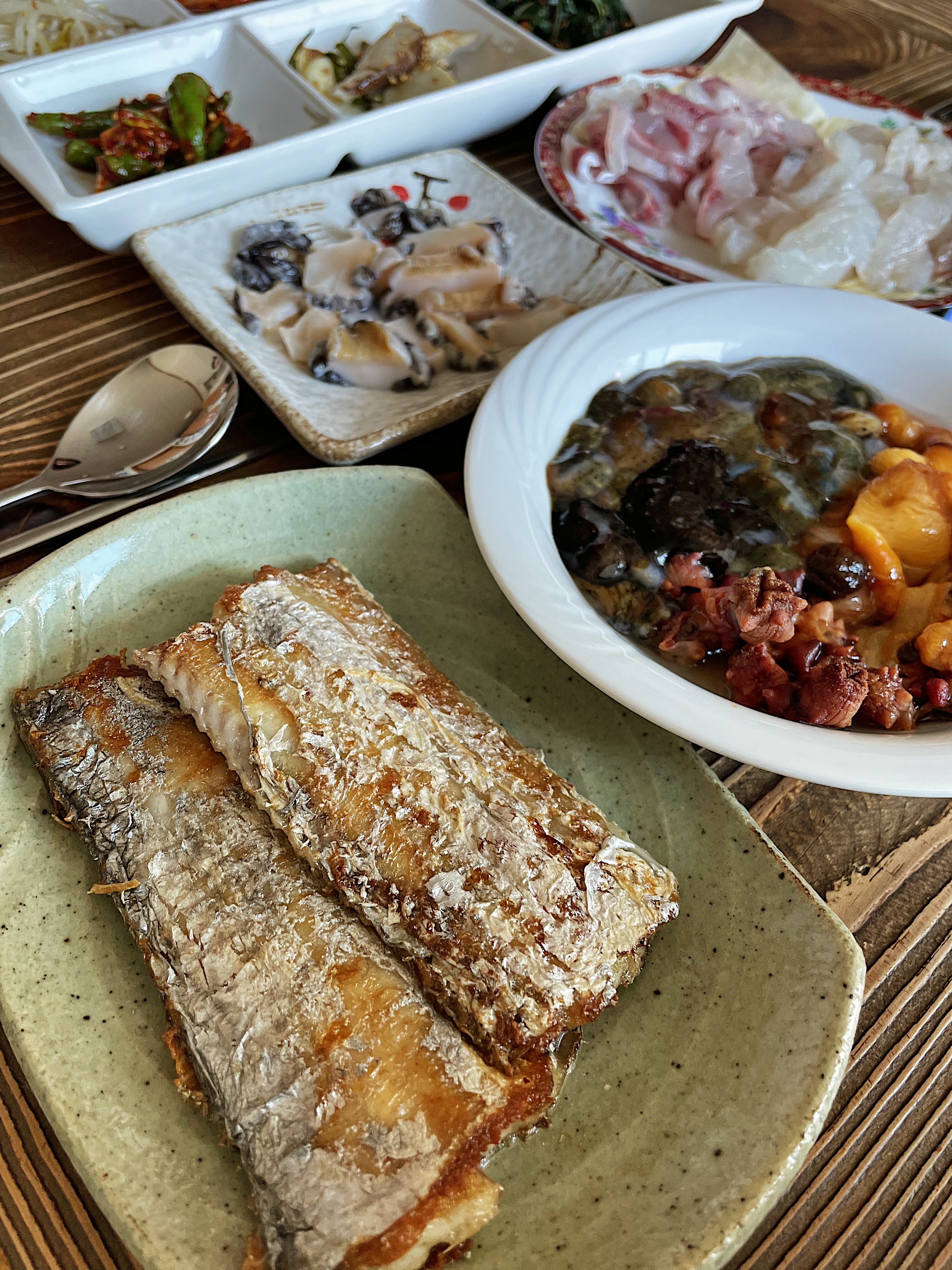 전복, 해삼, 멍게, 가리비, 갈치, 회(광어,밀치), 문어까지..