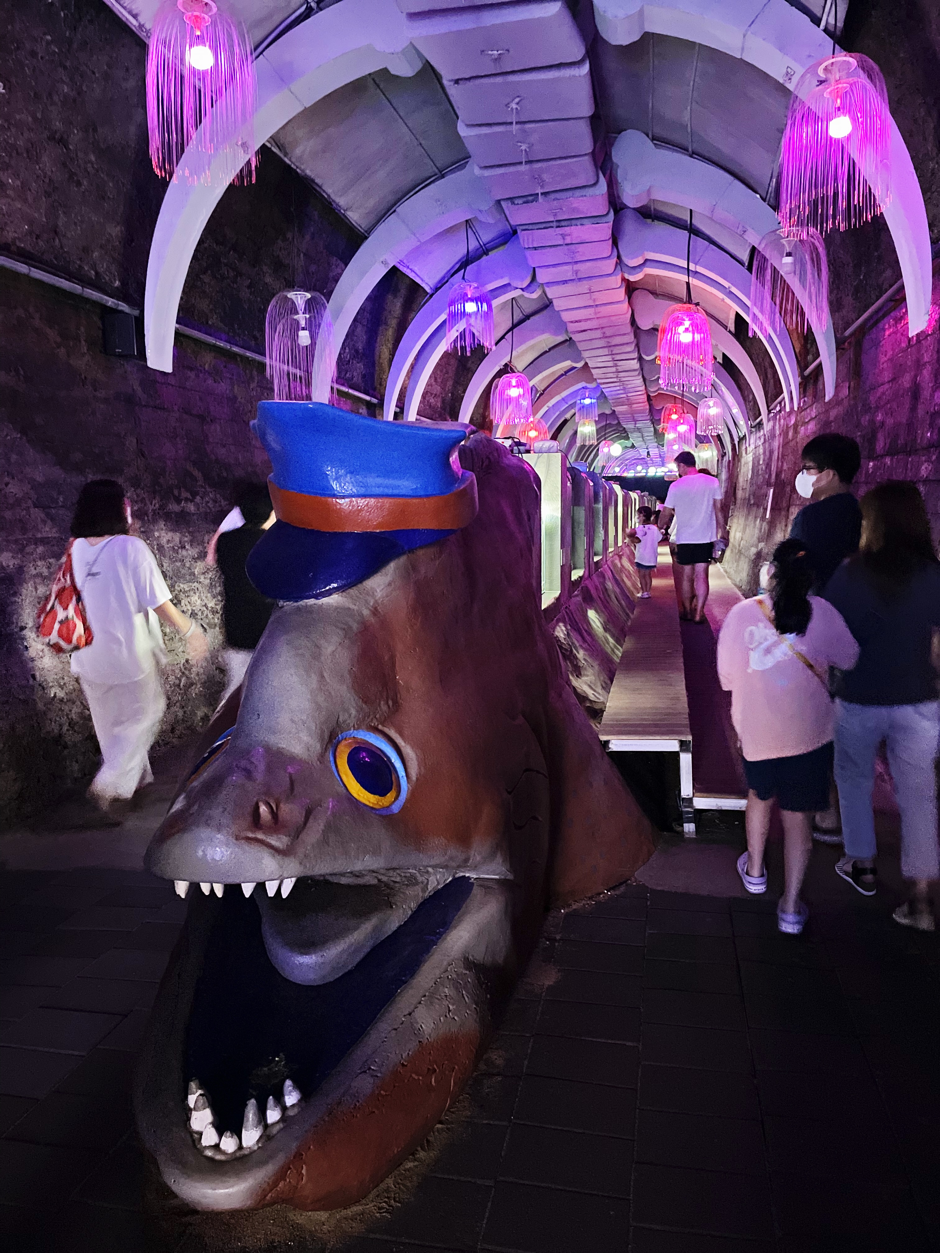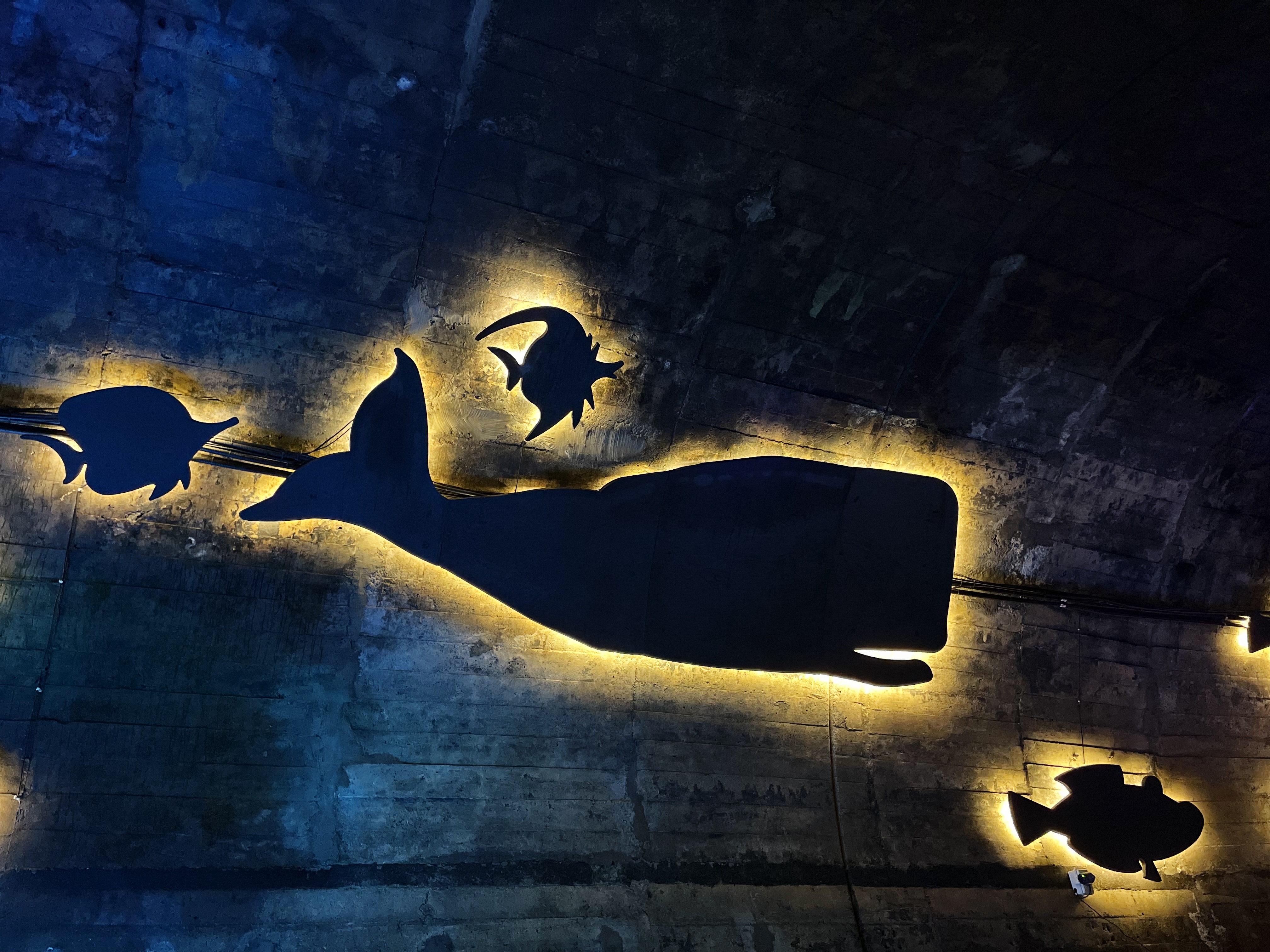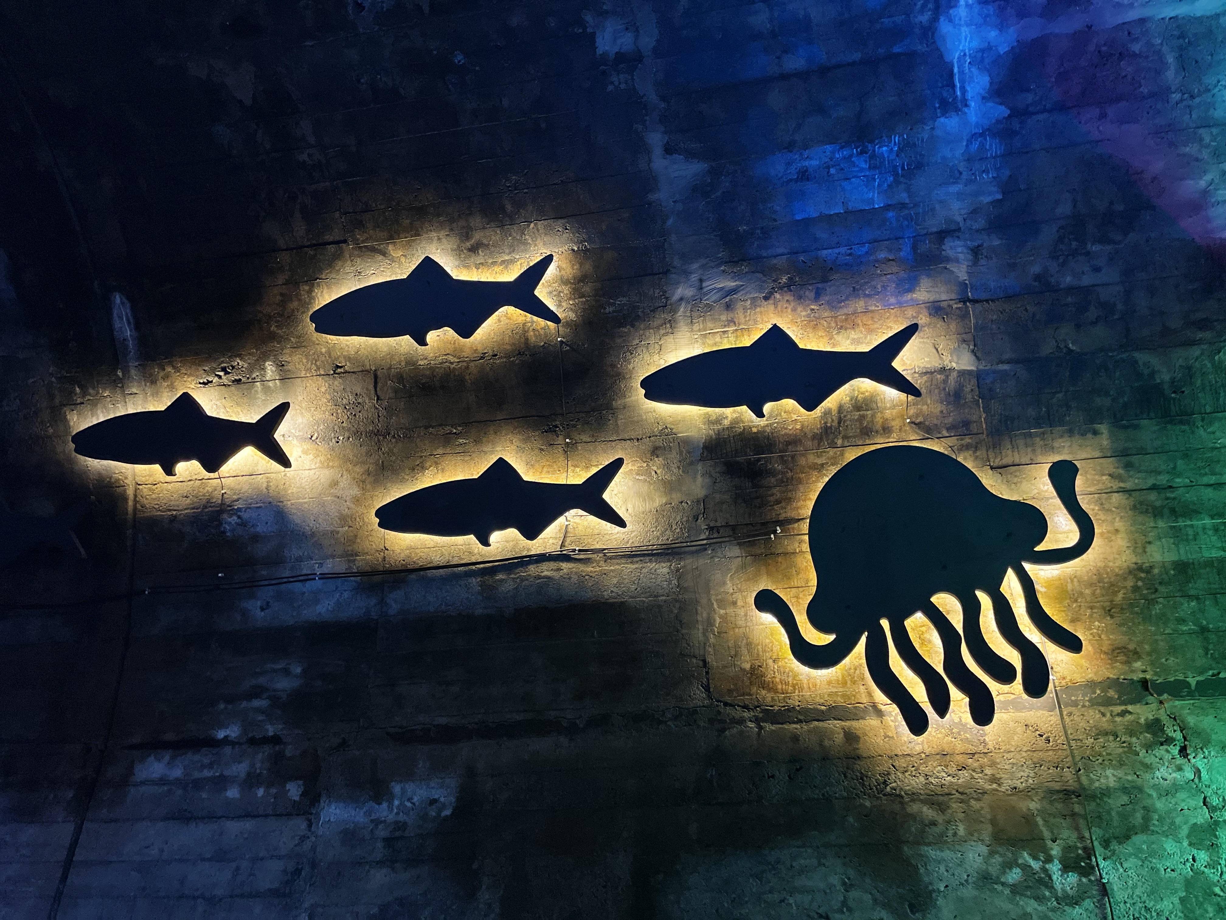 두 번째 만나본 공간은 곰치처럼 생긴 조형물 뒤로 수족관이 길게 놓여 있었고,