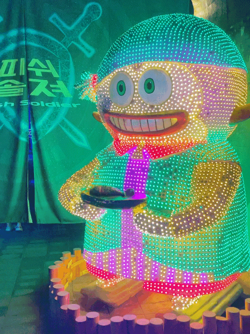 노오란 불빛이 양쪽 보리 모형에 밝게 빛나고 있었습니다.