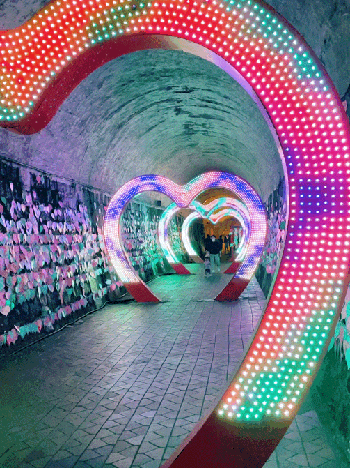 밀양 트윈터널은 편도 약 500m 정도의 길이로 왕복 1km의 공간을 여러 가지 테마로 나누어 구성해 두었는데요.