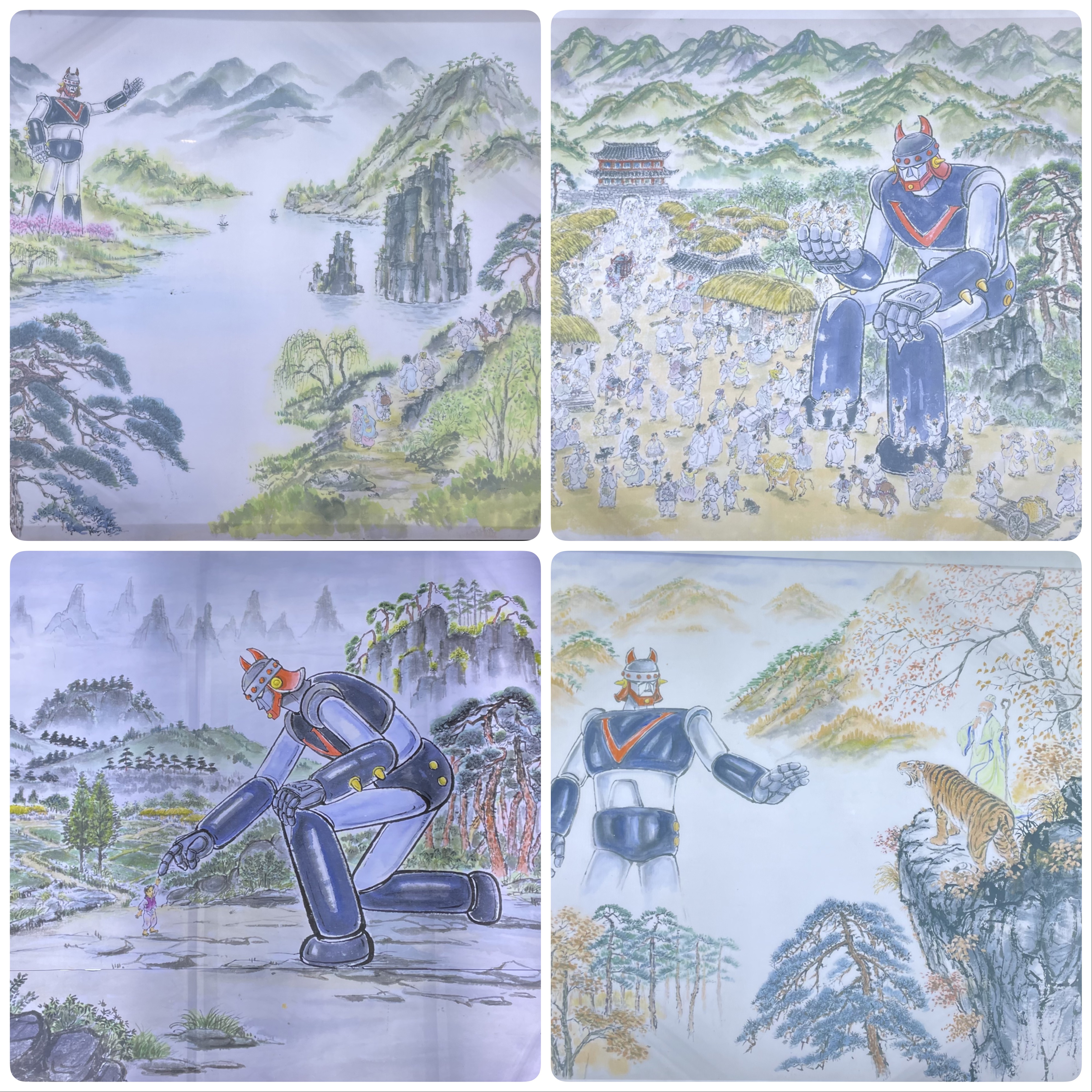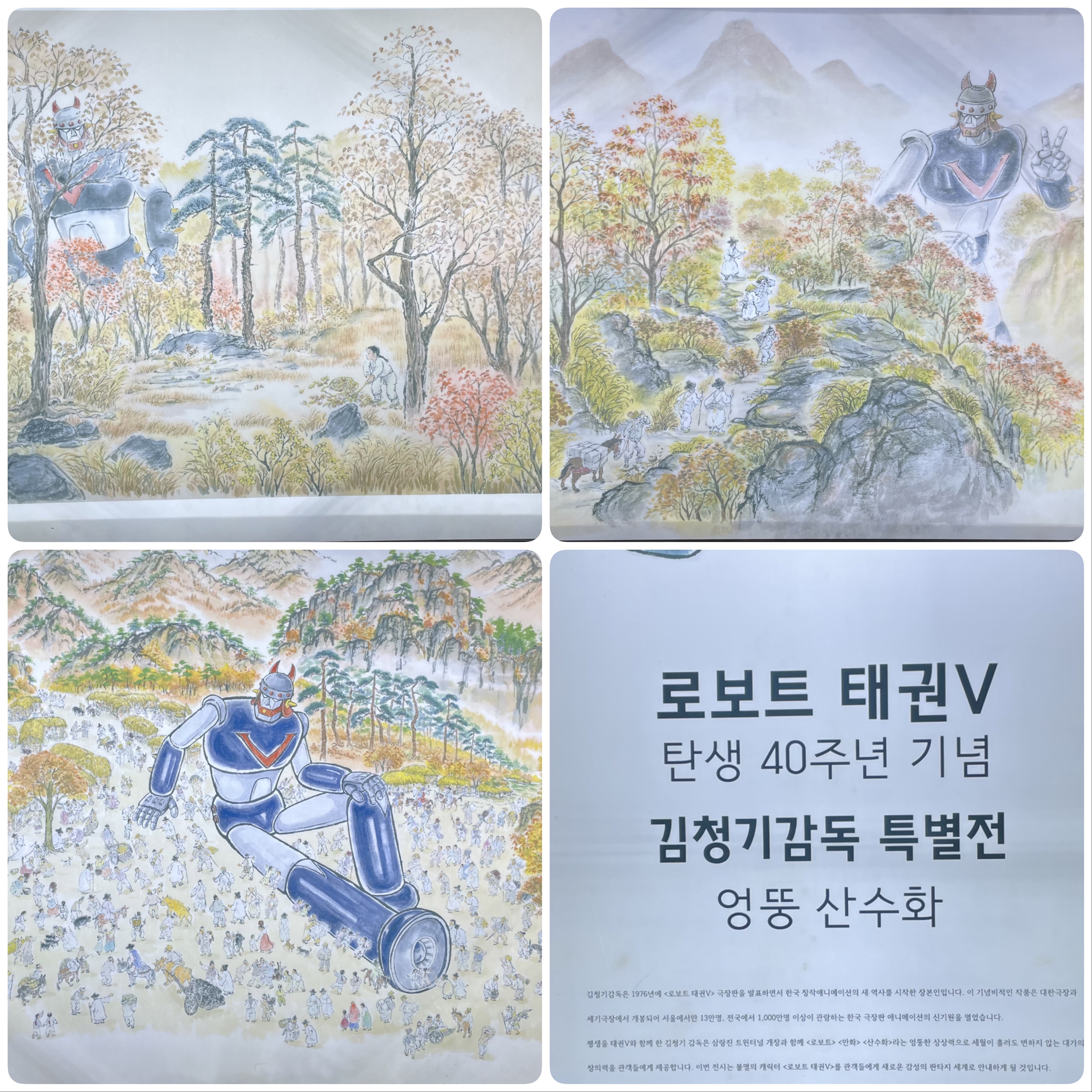 산수화 속 로보트 태권 V의 모습이 친근하기도 하고 정말 엉뚱하게 보였습니다.