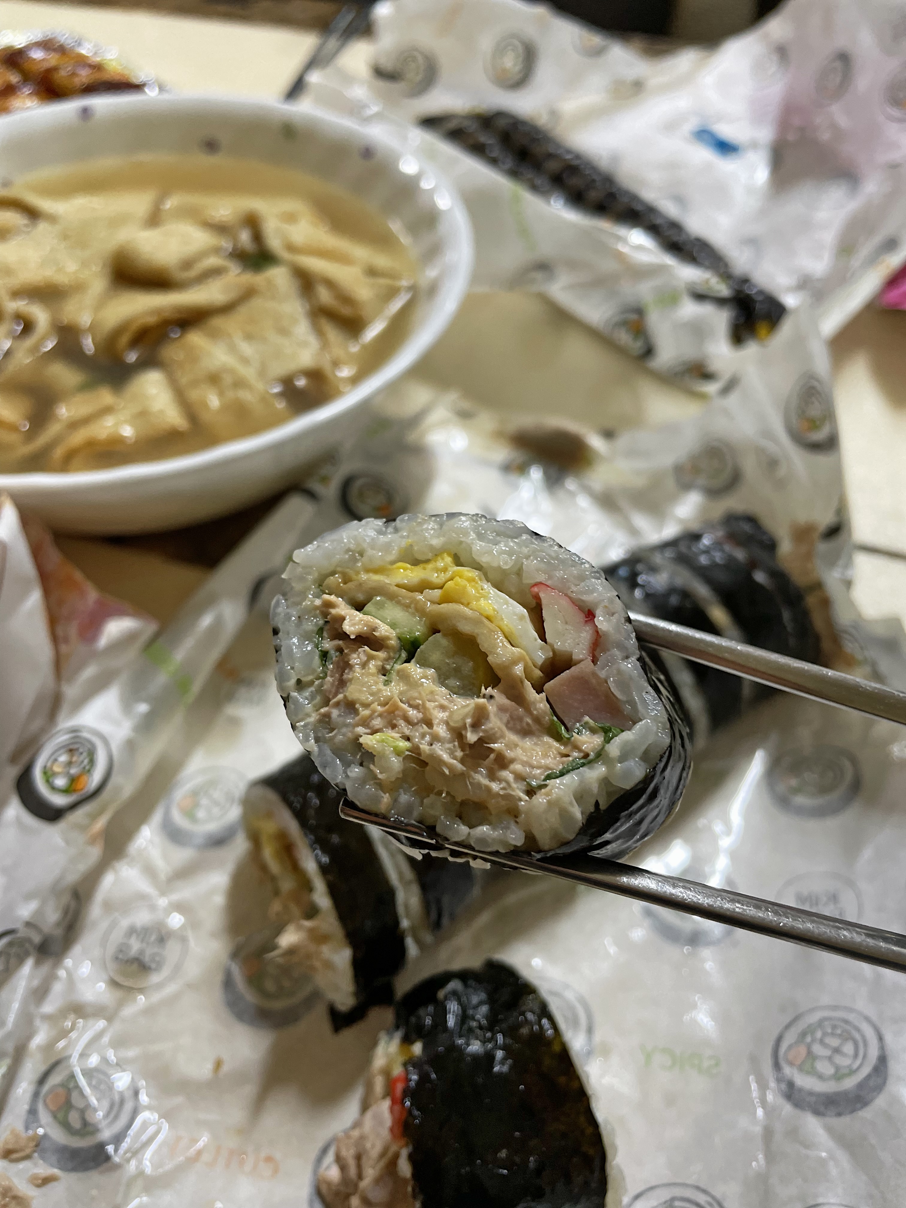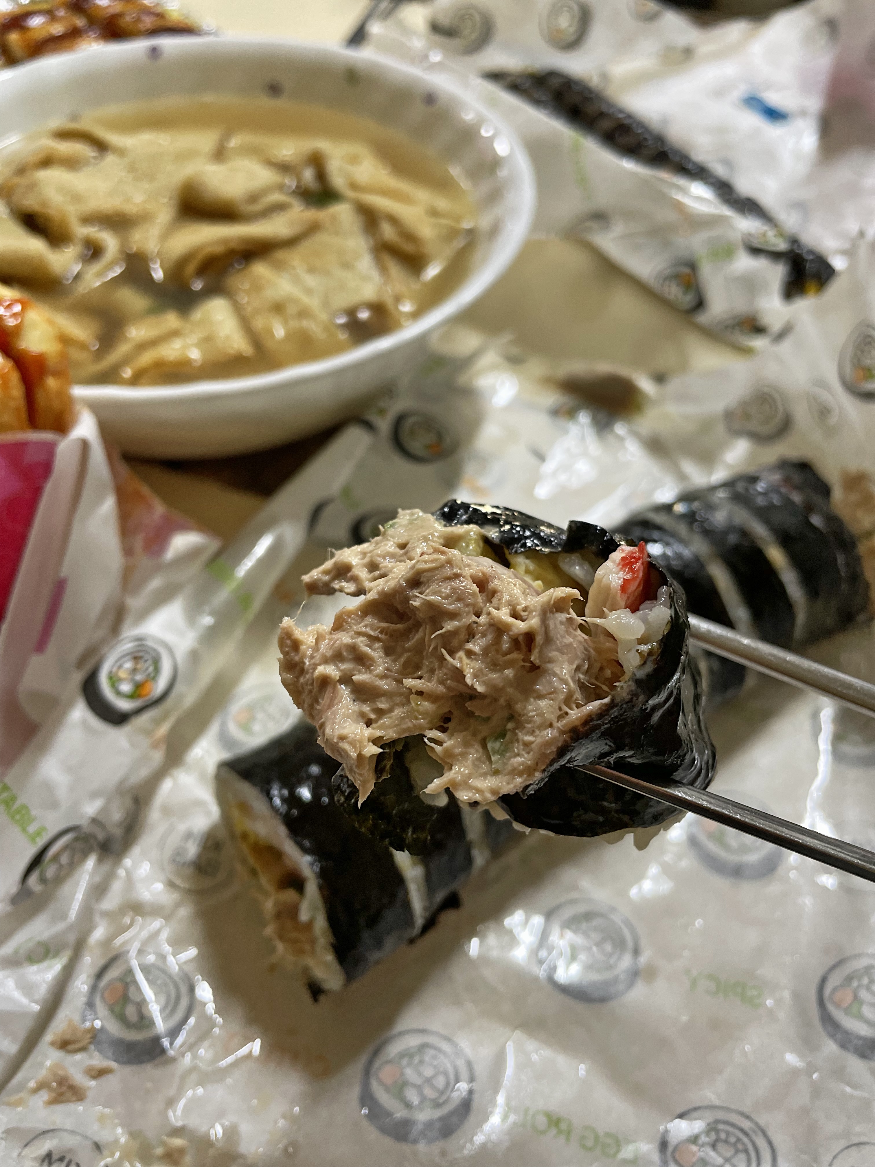 참치 김밥에 든 참치 보이시나요?