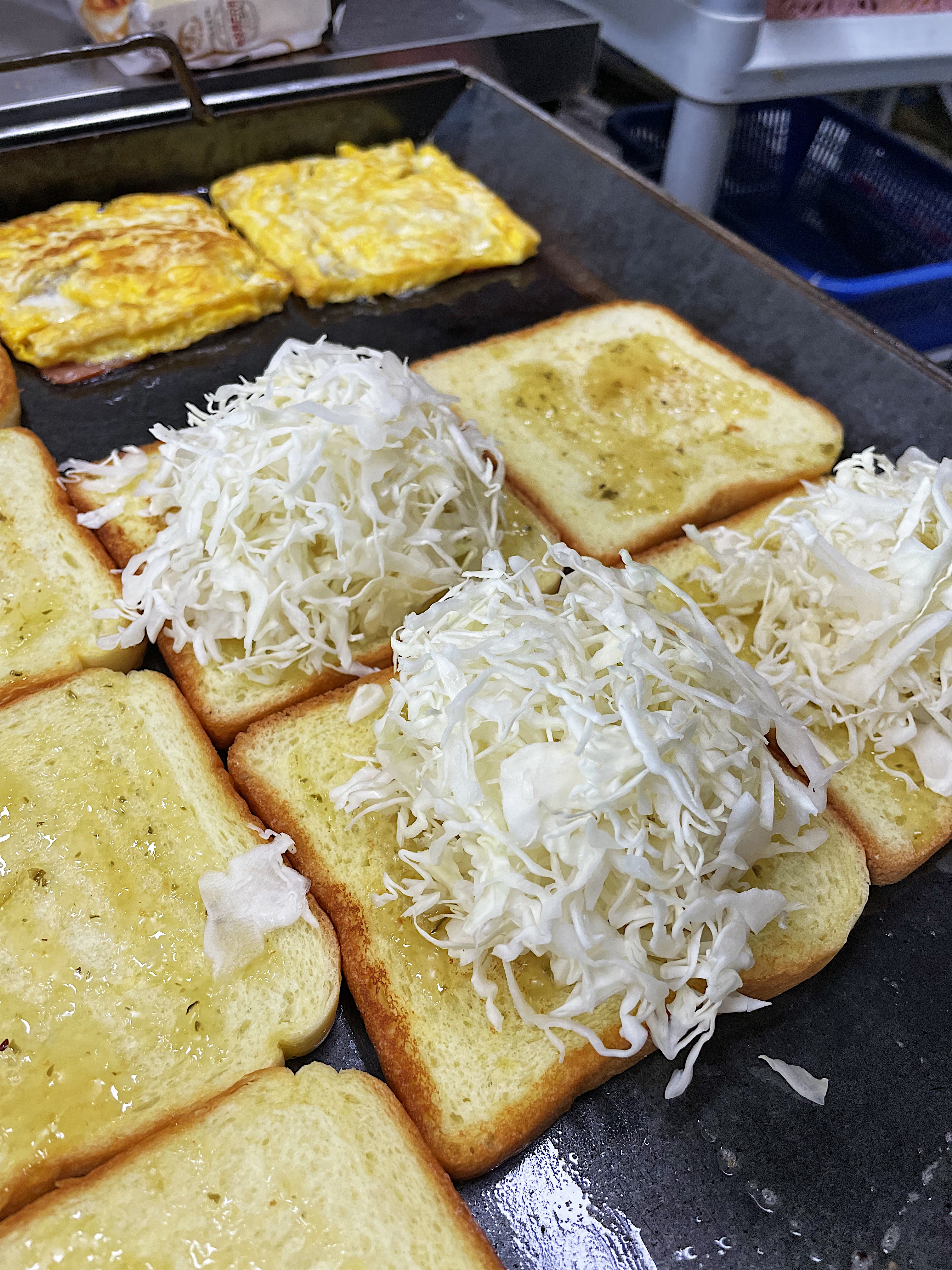 햄 계란 토스트는 양배추가 가득 올라가고,