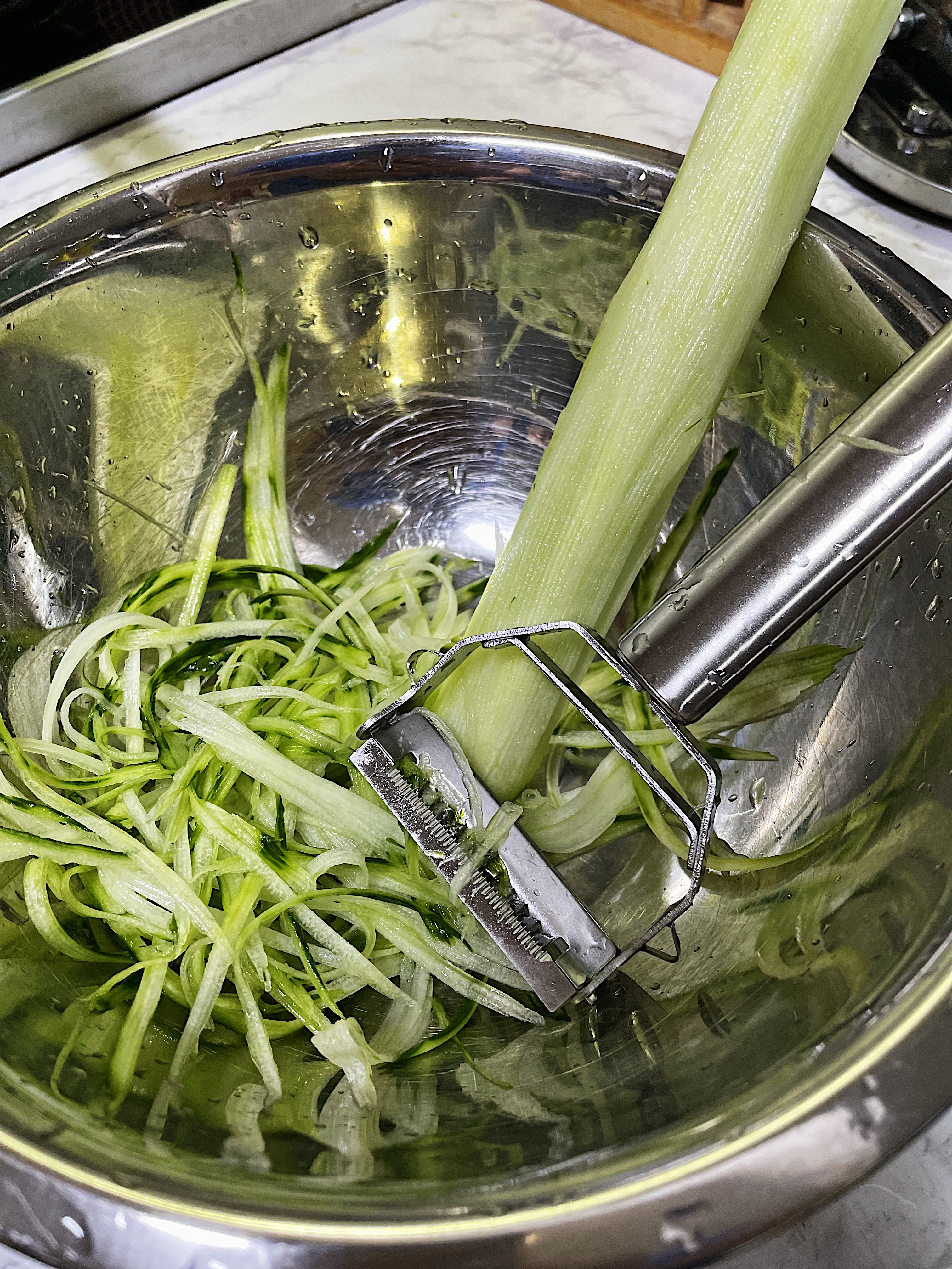 이번에는 채칼로 오이 하나 썰어서 함께 먹었습니다.