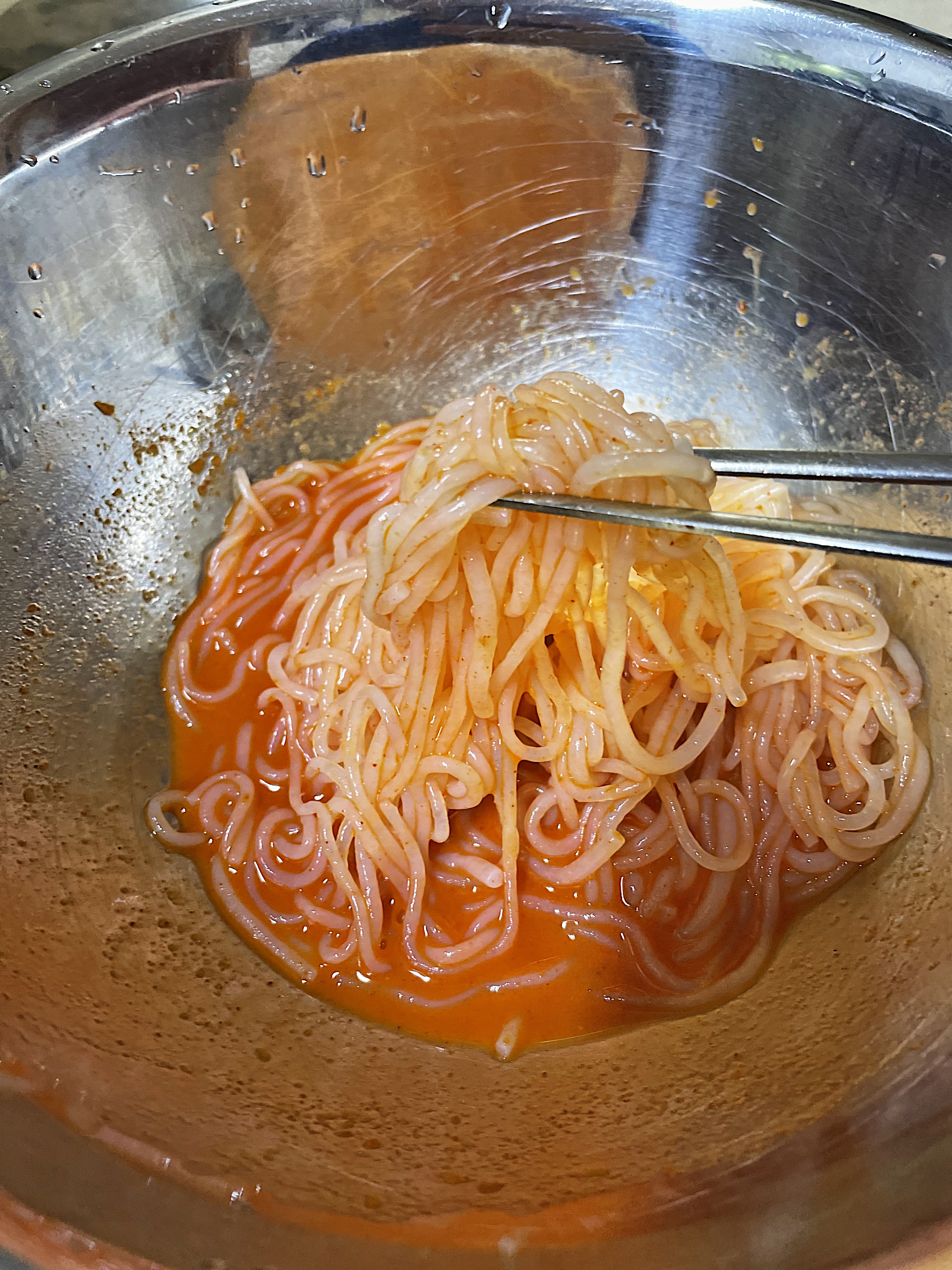 귀찮아서 그냥 스뎅볼에서 비벼서 그대로 먹었죠.