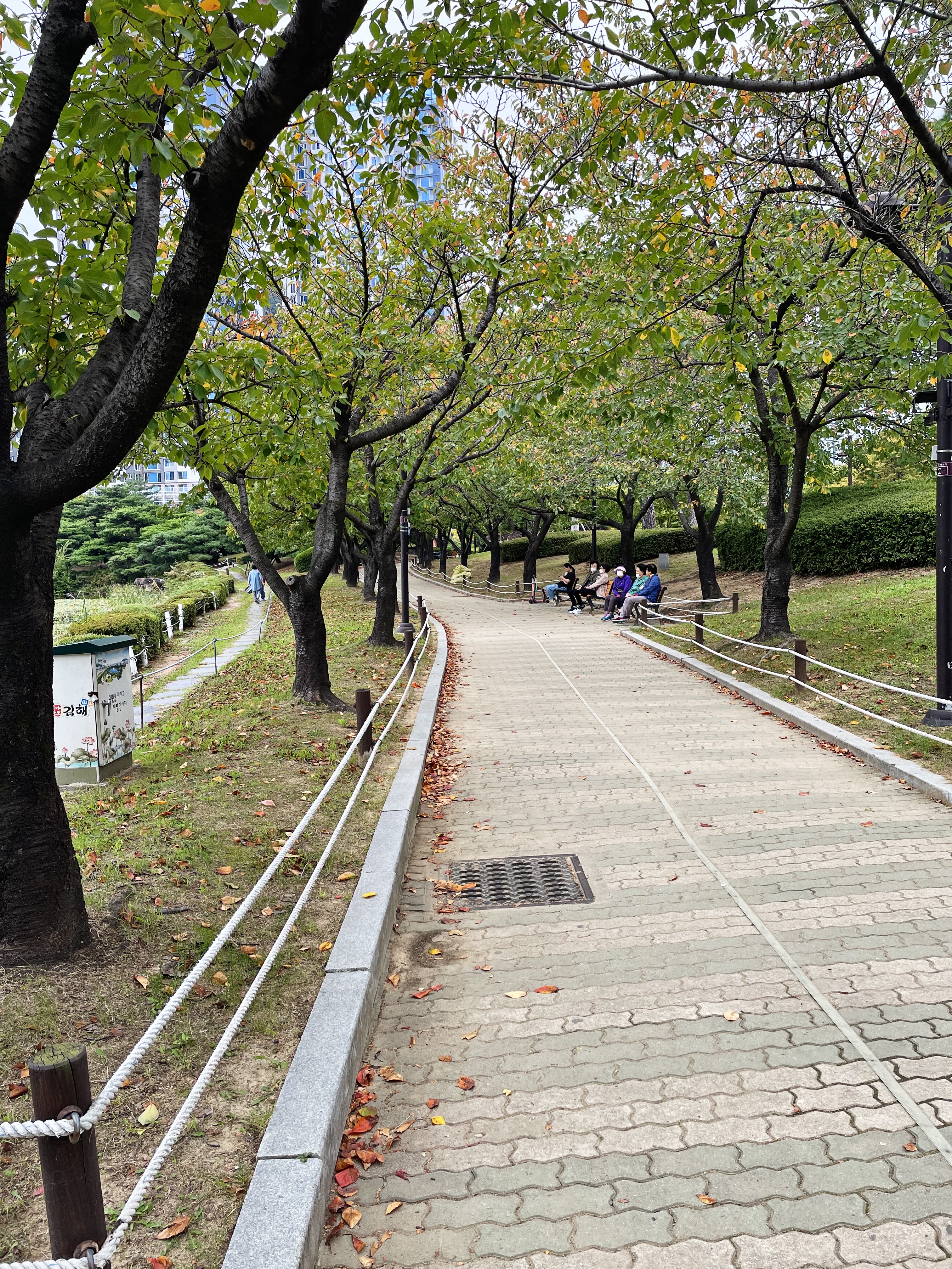 안쪽은 이렇게 보도블럭이 깔려 있고, 바깥쪽으로 마사길로 비포장된 2개의 산책로가 있습니다.