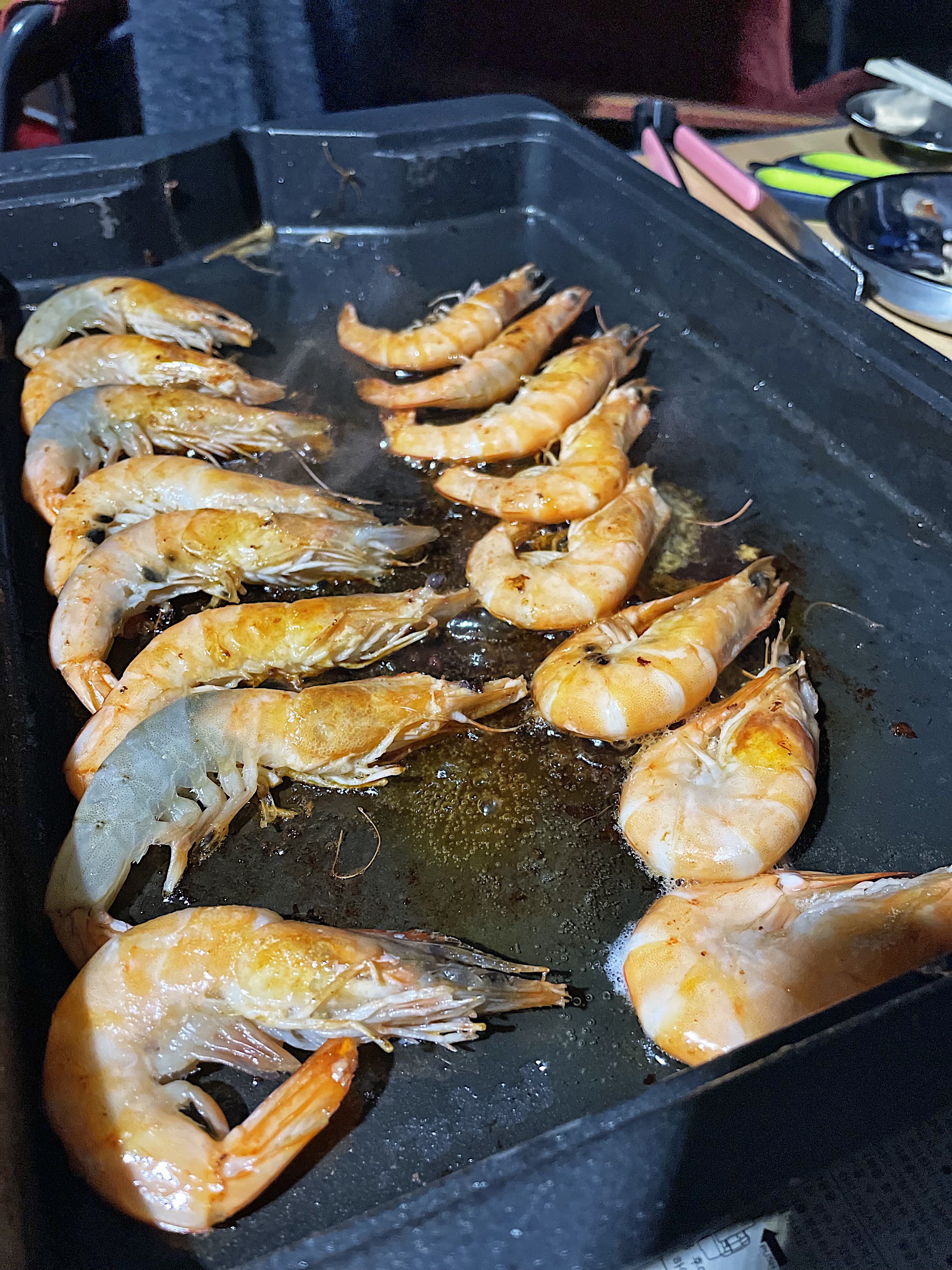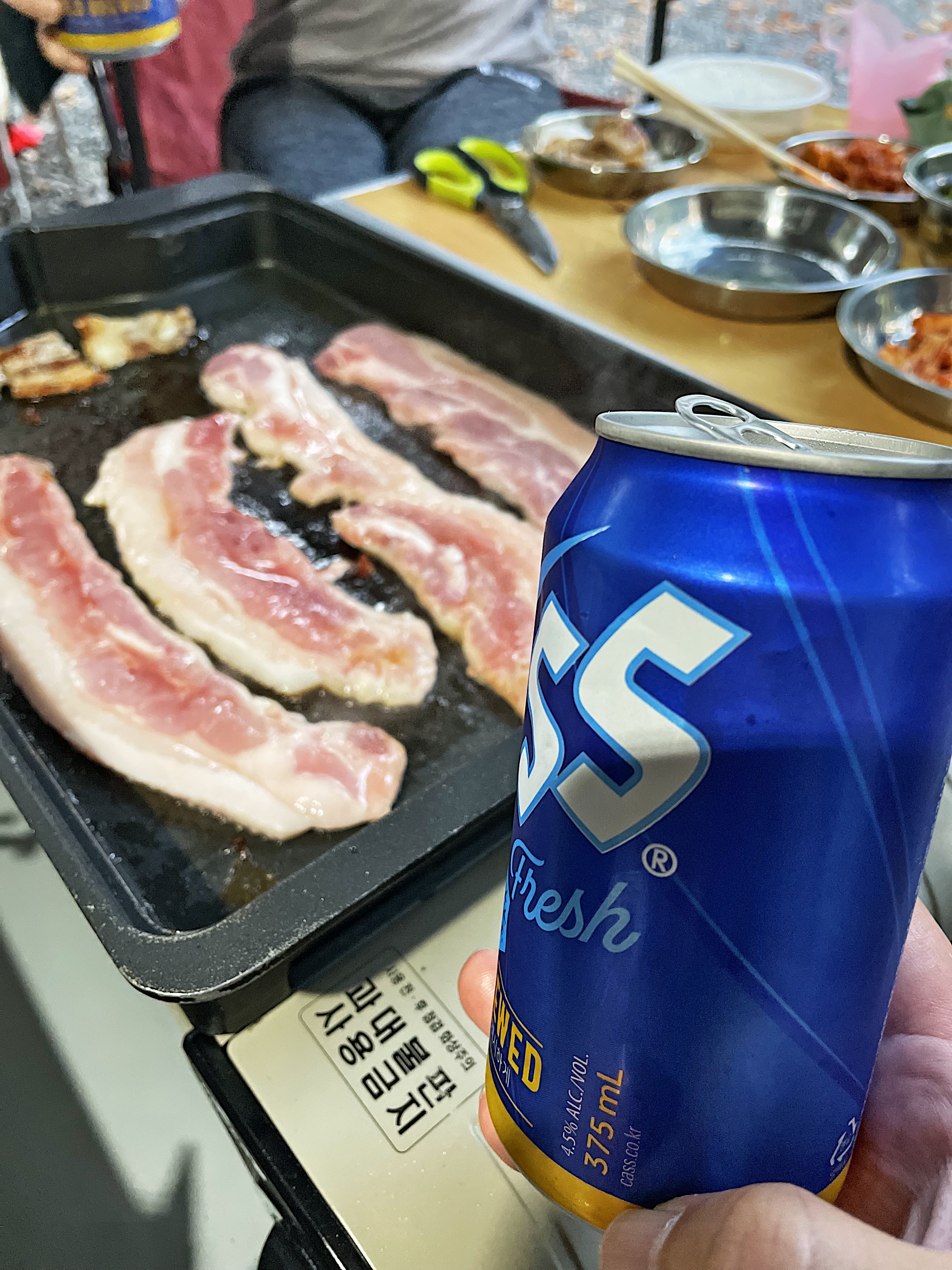 구이바다에 삼겹살과 새우 적당히 구워 먹구요.