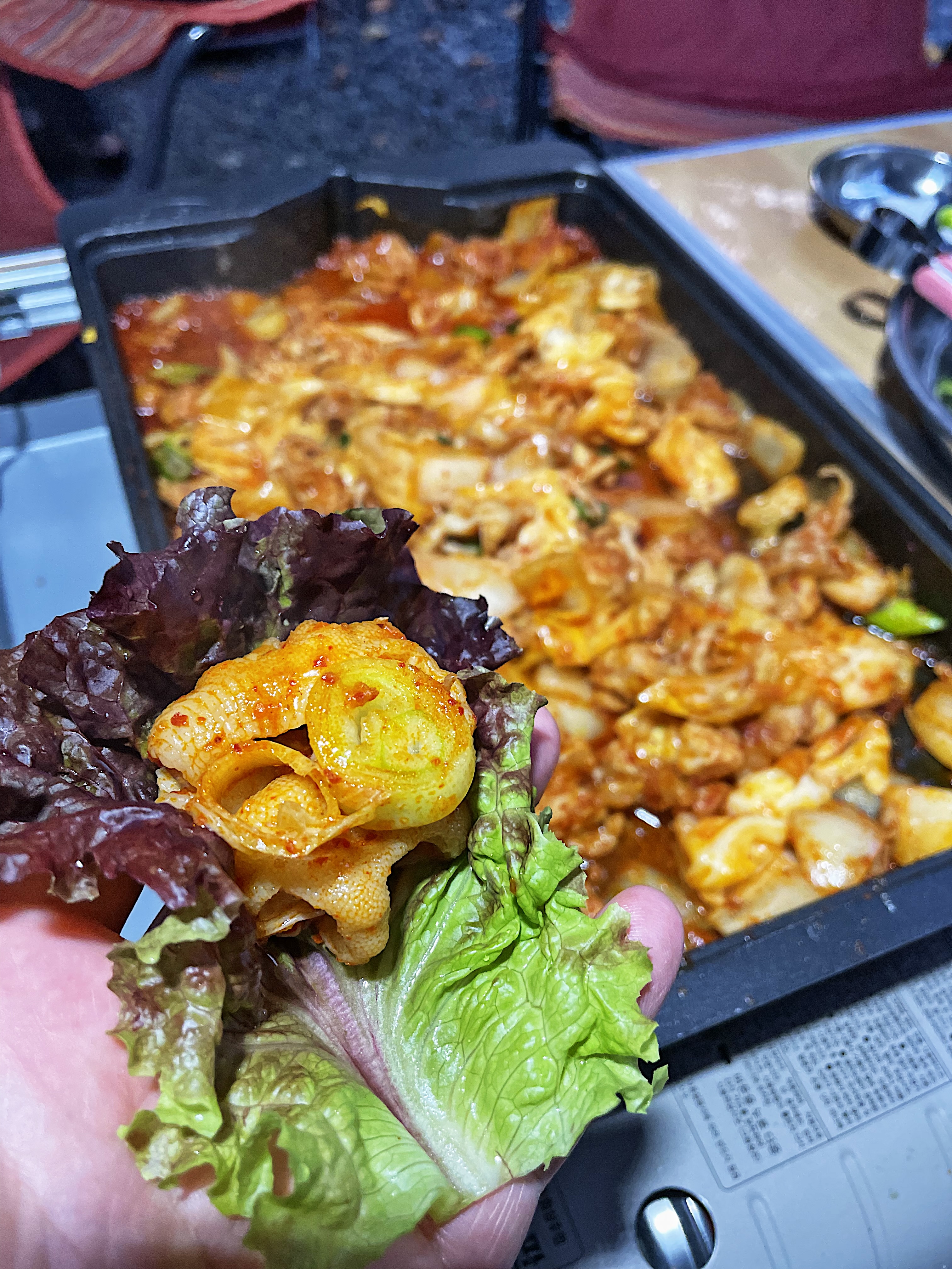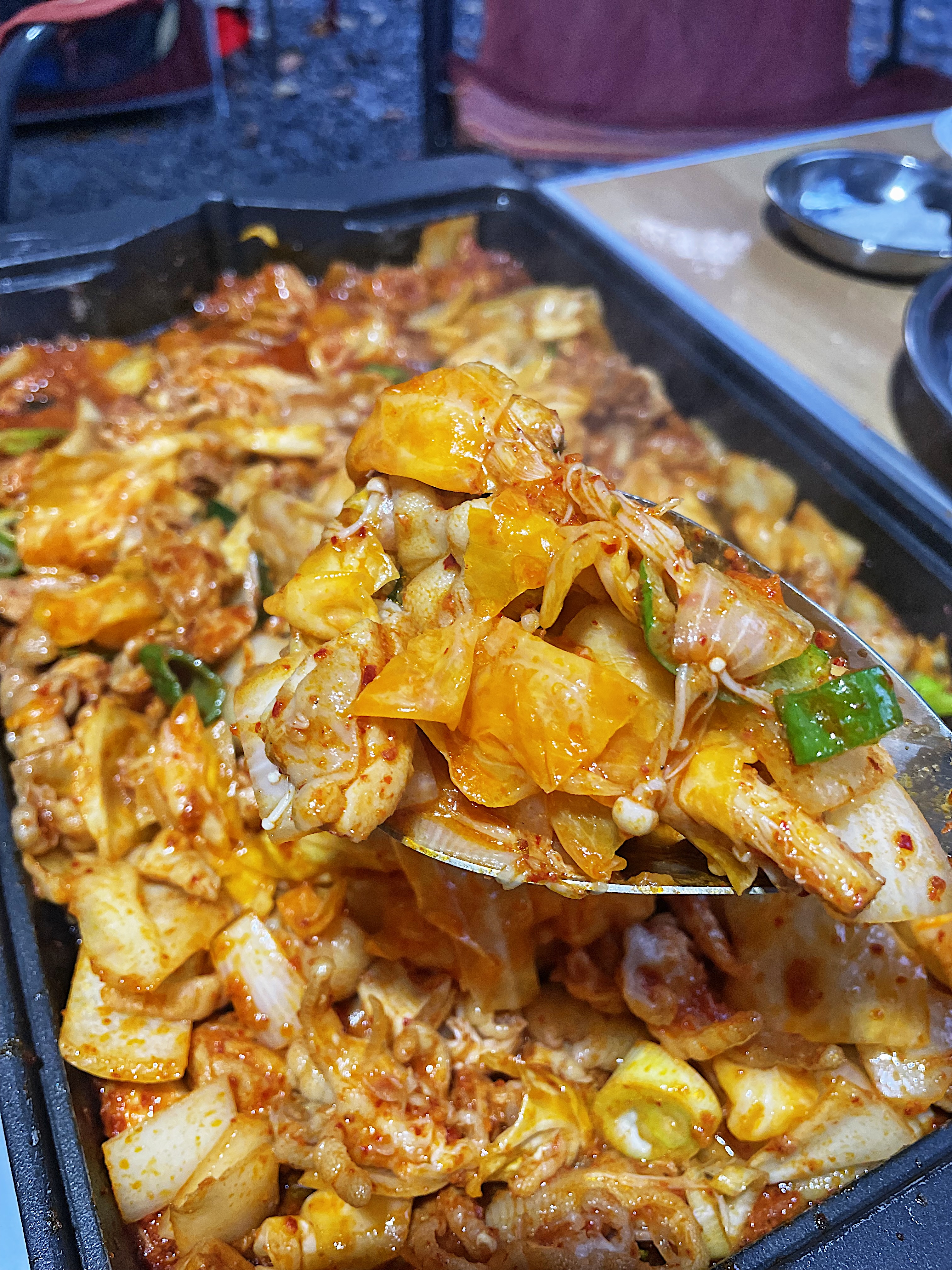 둘째날 저녁은 양념 닭갈비와 무뼈닭발입니다.