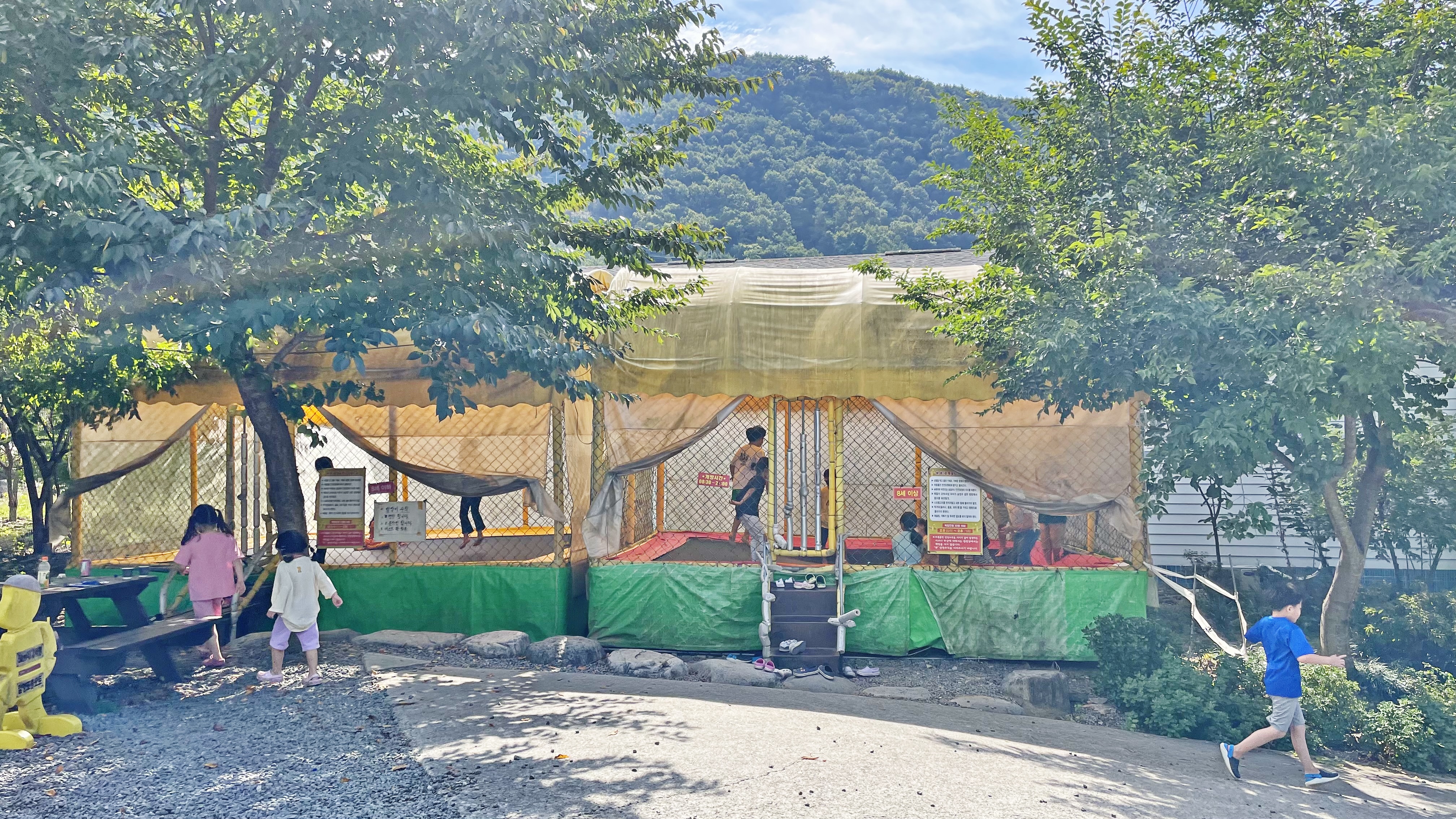 캠핑장 입구쪽에 위치한 방방이는 8세 기준으로 2개를 운영하는데요.