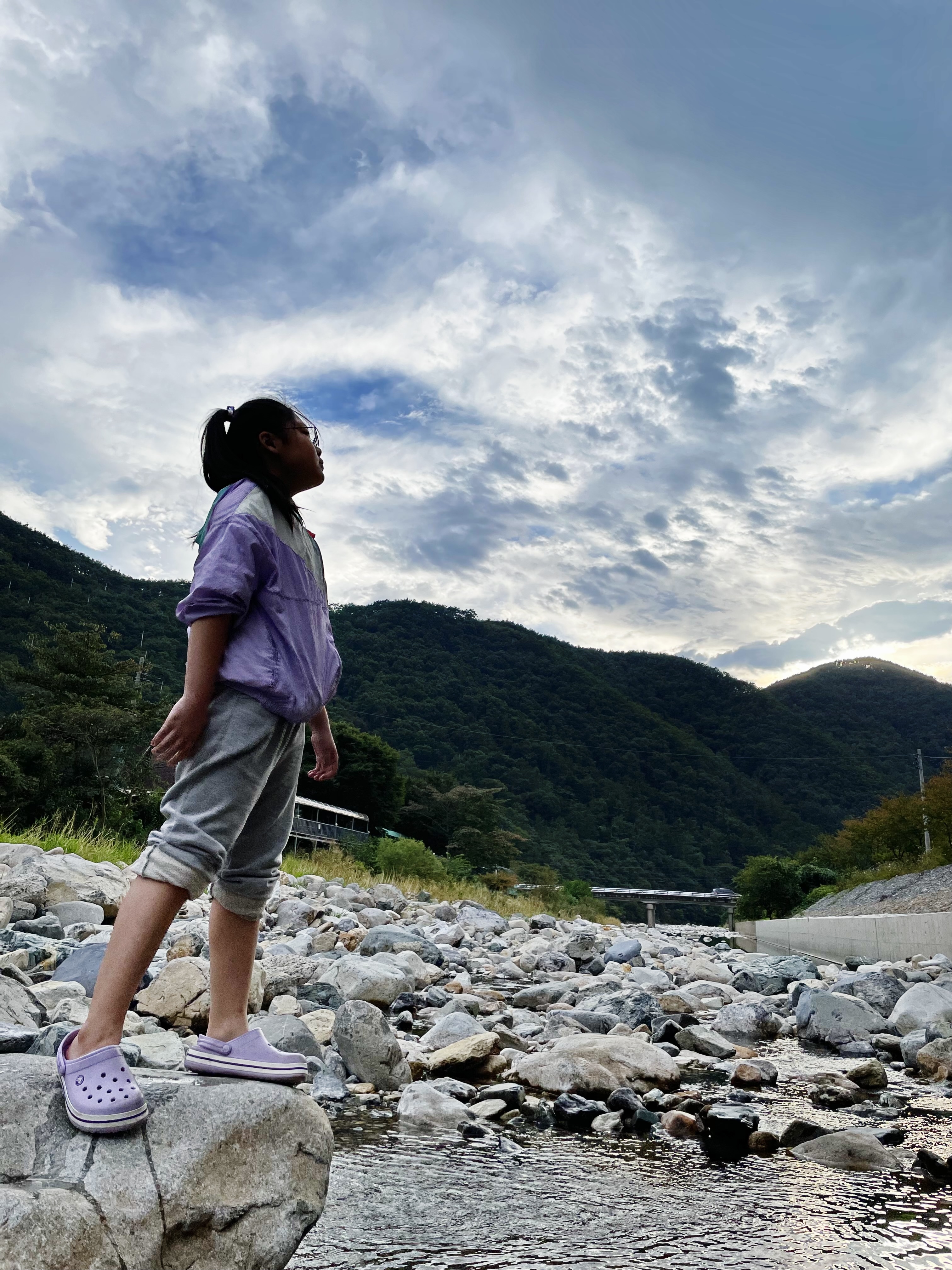 계곡에서 아침에 놀았던 게 즐거웠던지 또 가자고 보채는 딸아이를 데리고 캠핑장 밖을 나와 잠시 걸었습니다.