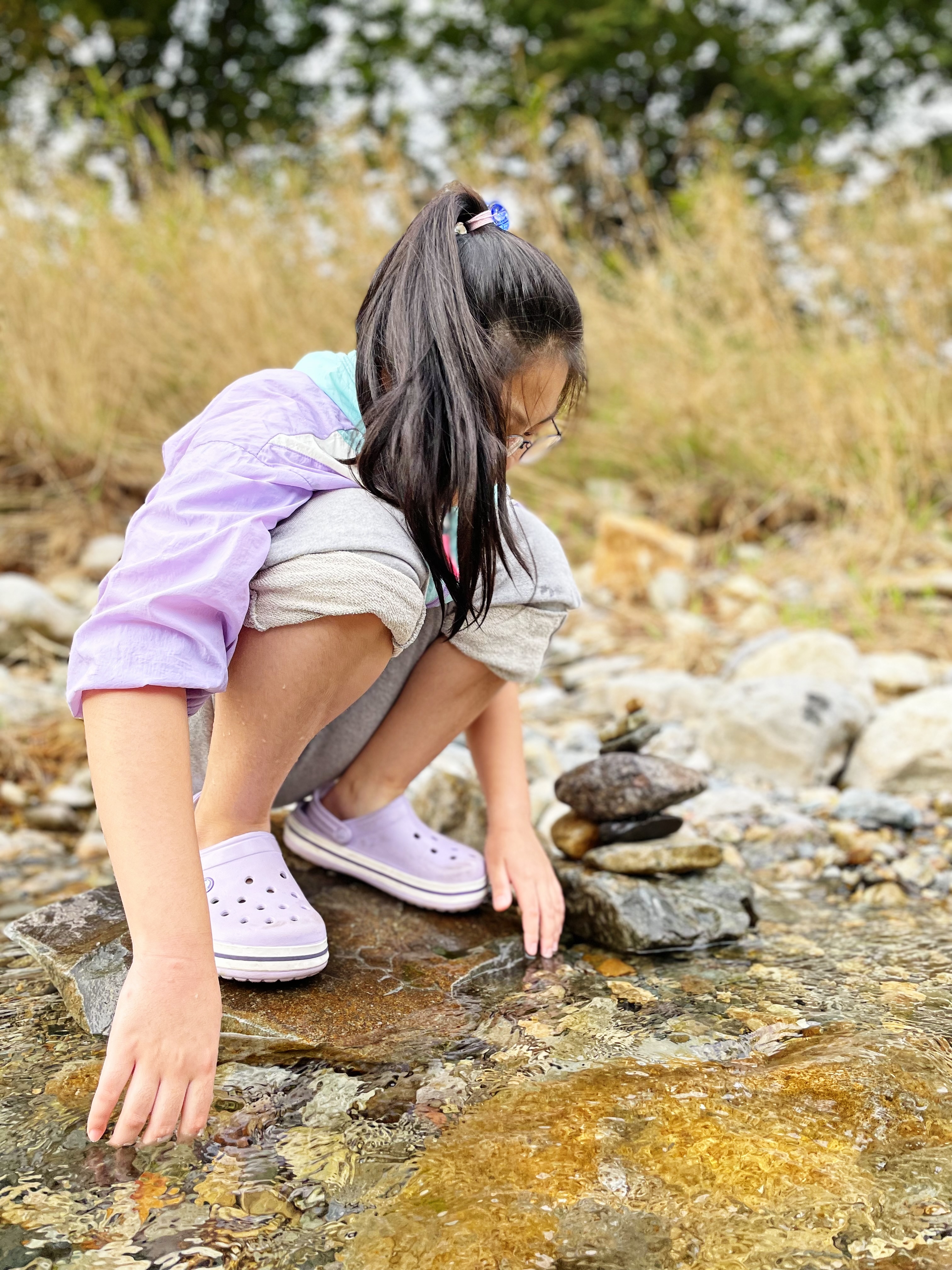신발로 뱃놀이도 하고, 돌탑도 쌓고, 돌을 놓아 물길도 바꿔 보고...