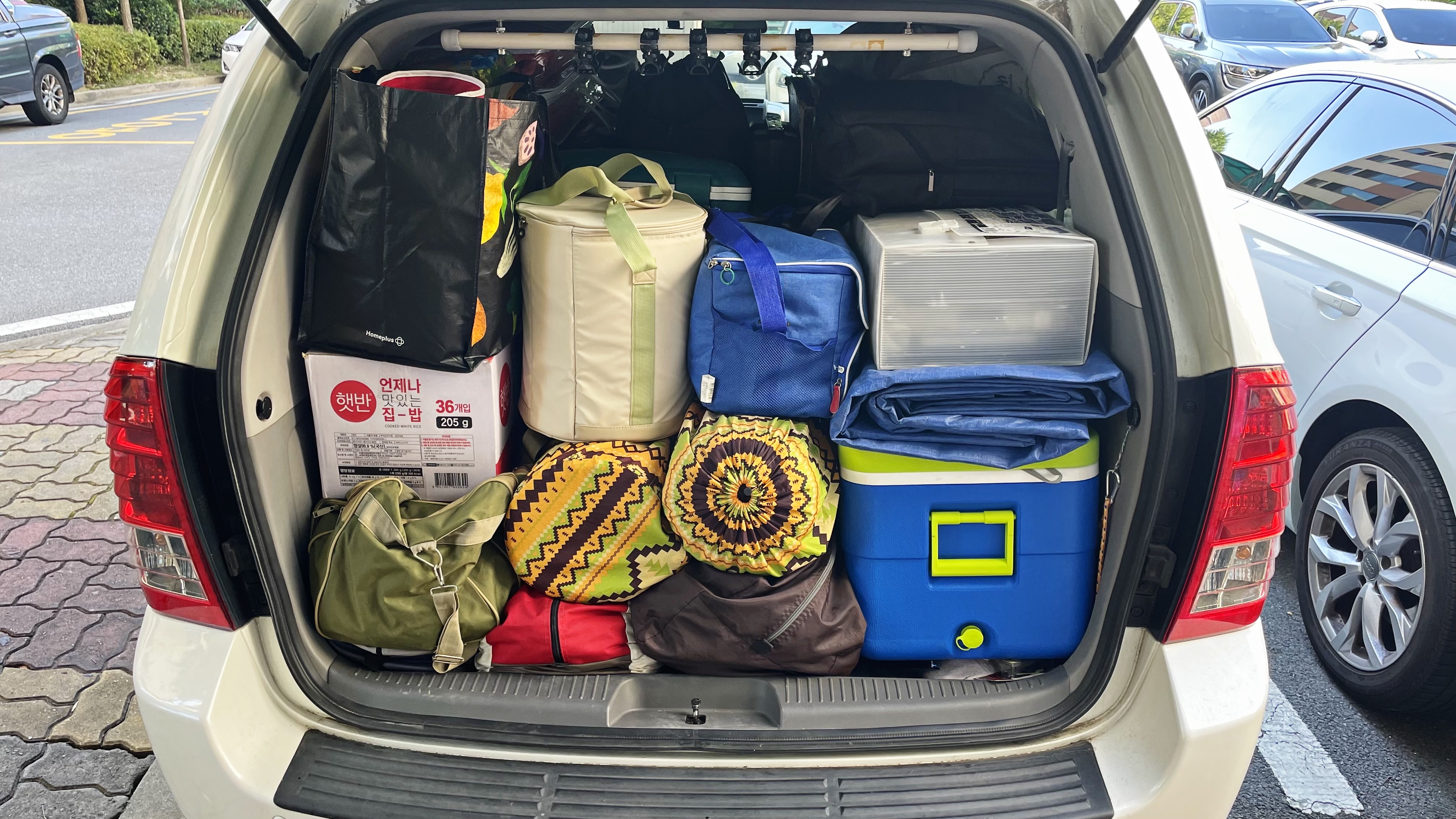 캠핑의 시작은 짐을 차에 싣는 것부터입니다.