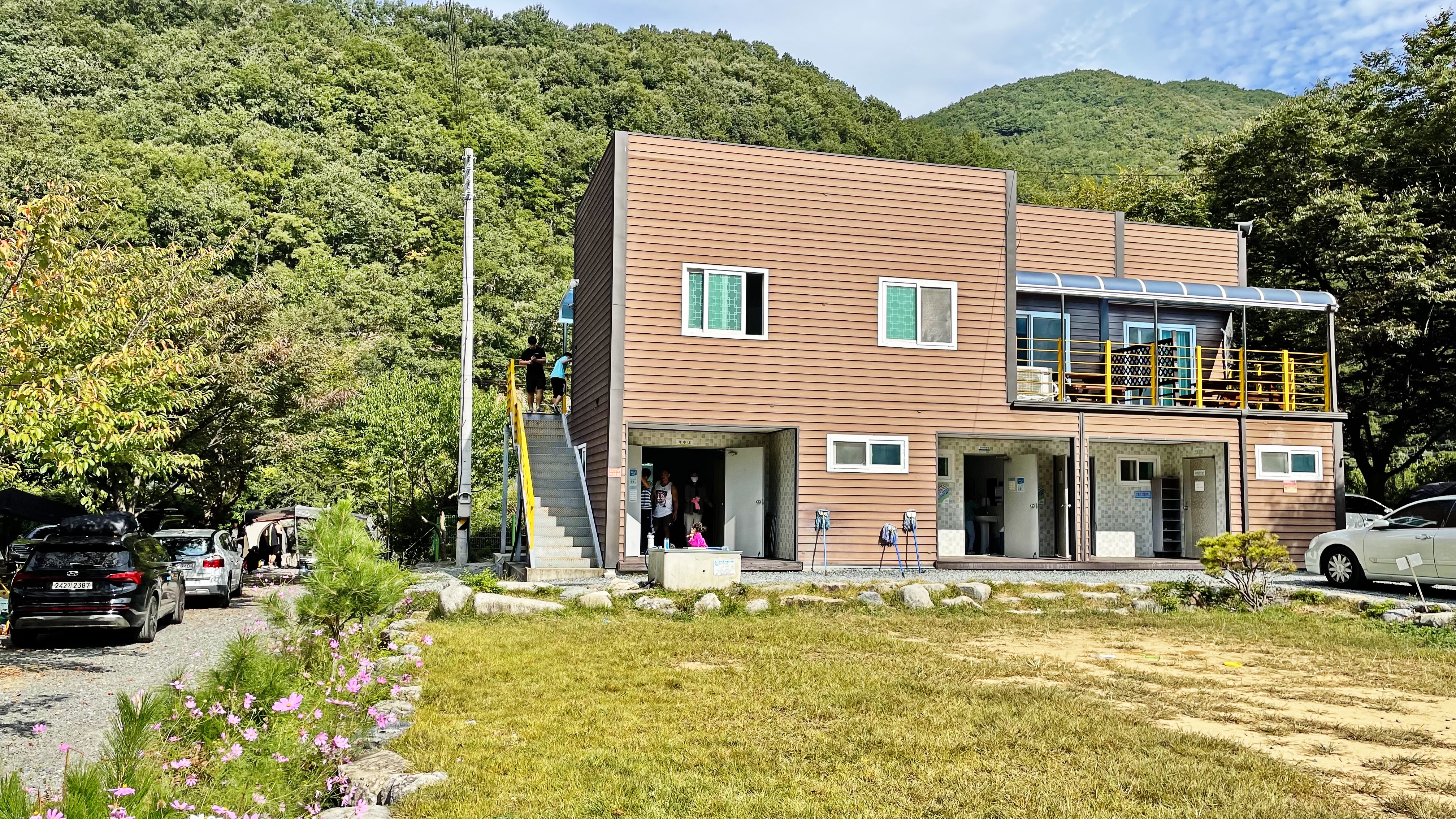 캠핑을 시작하려는 분 또는 잠시 방문하신 분들은 위 사진의 건물 2층에서 숙박을 할 수 있습니다.