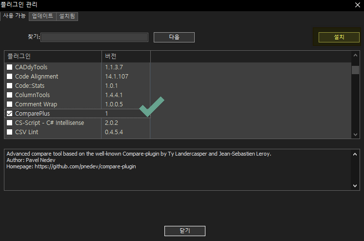 Compare 플러그인 외에도 다양한 기능의 플러그인들이 있으니, 본인에게 유용한 기능을 가진 플러그인이 있는지 위 리스트에서 확인해 보세요.