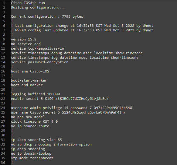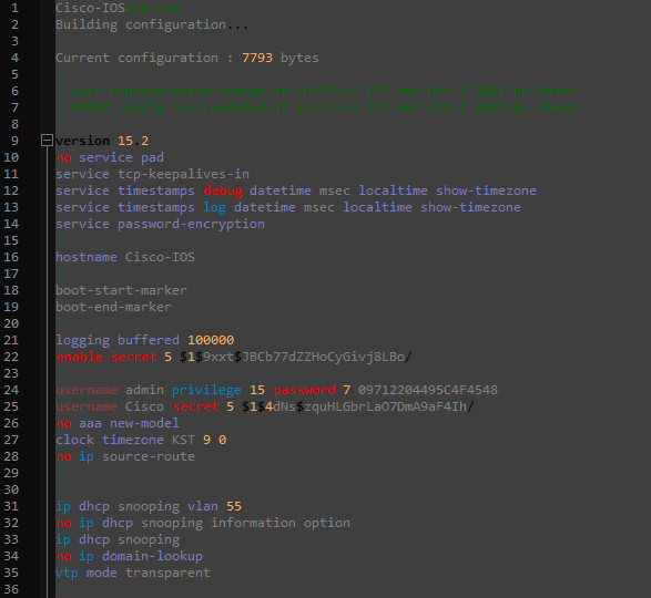 저는 네트워크 관련 일을 하다 보니 Cisco 장비의 Config를 볼 일이 많은데요.