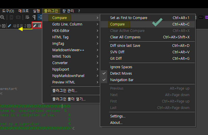 문서 비교 프로그램을 별도로 사용하고 있었는데, Notepad++에 플러그인을 추가하고 나서는 따로 프로그램을 설치할 필요가 없어졌습니다.