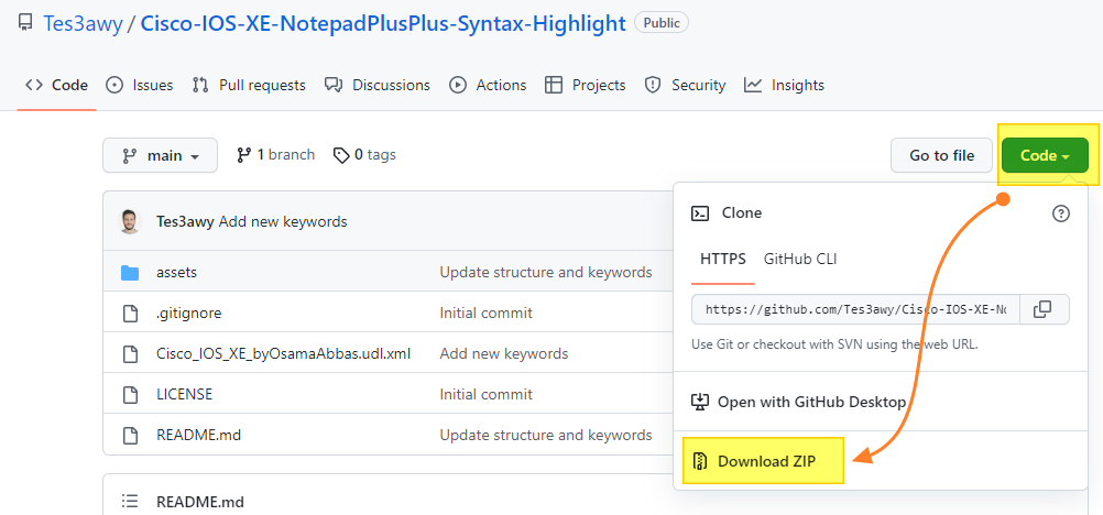 Google 에서 "notepad++ Cisco ios language" 로 검색을 해서 아래 GitHub 페이지를 찾았습니다.