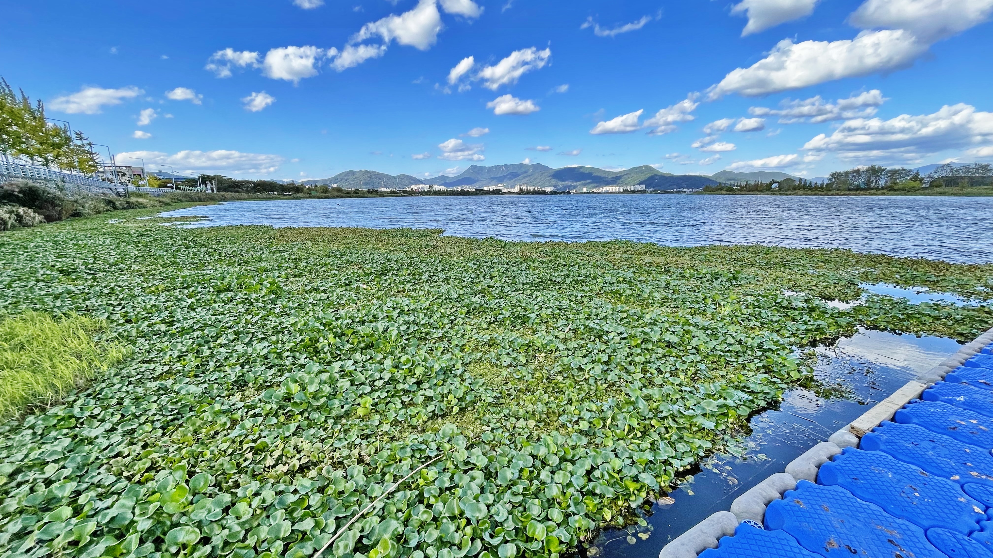 부레옥잠 같은 아이들이 연안에 한 가득입니다.
