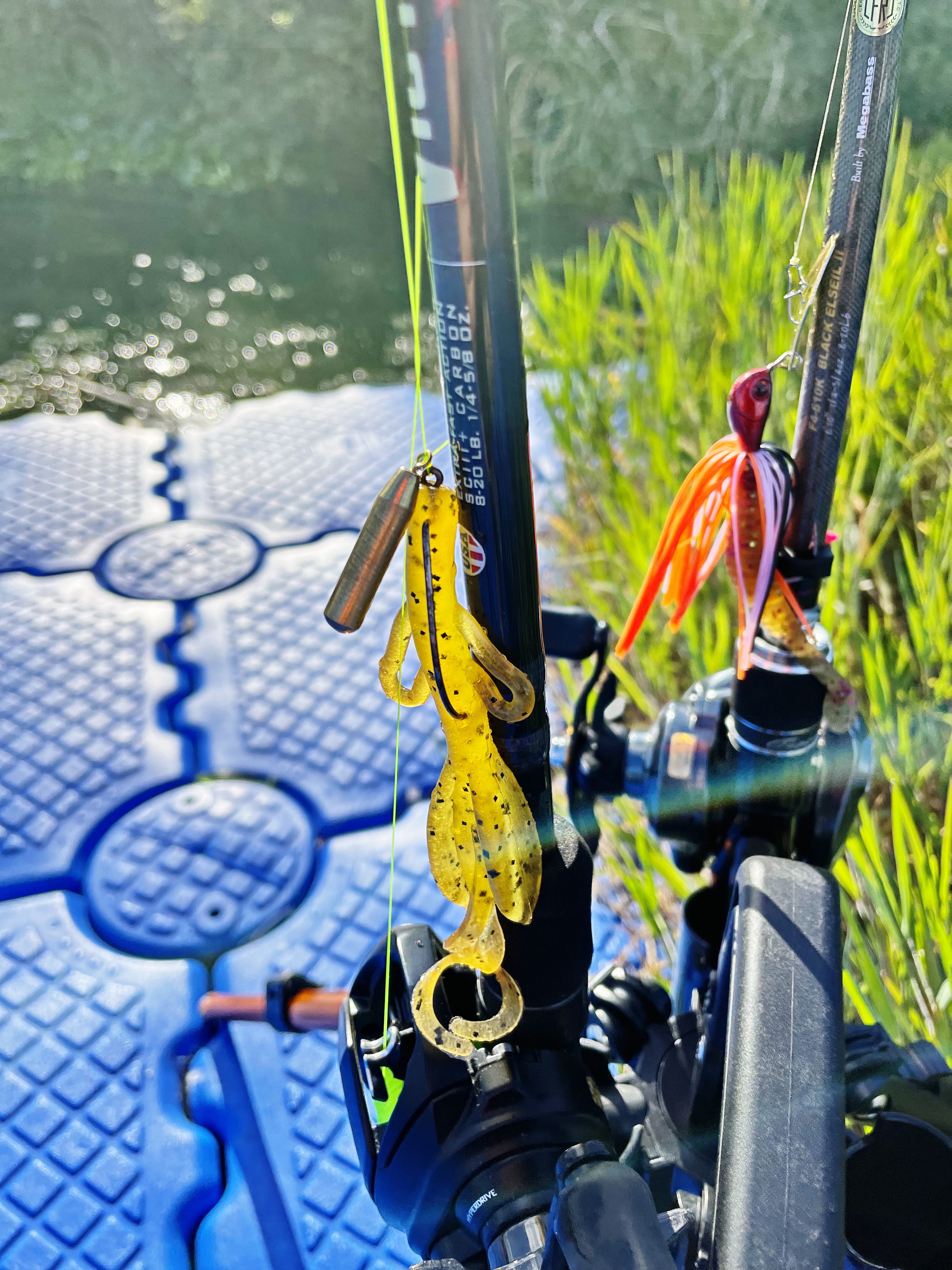 빠른 탐색용으로 메가배스 오로치 F4, 웜낚용으로 세인트68mxf, 최종병기 쏘치n 662L 입니다.