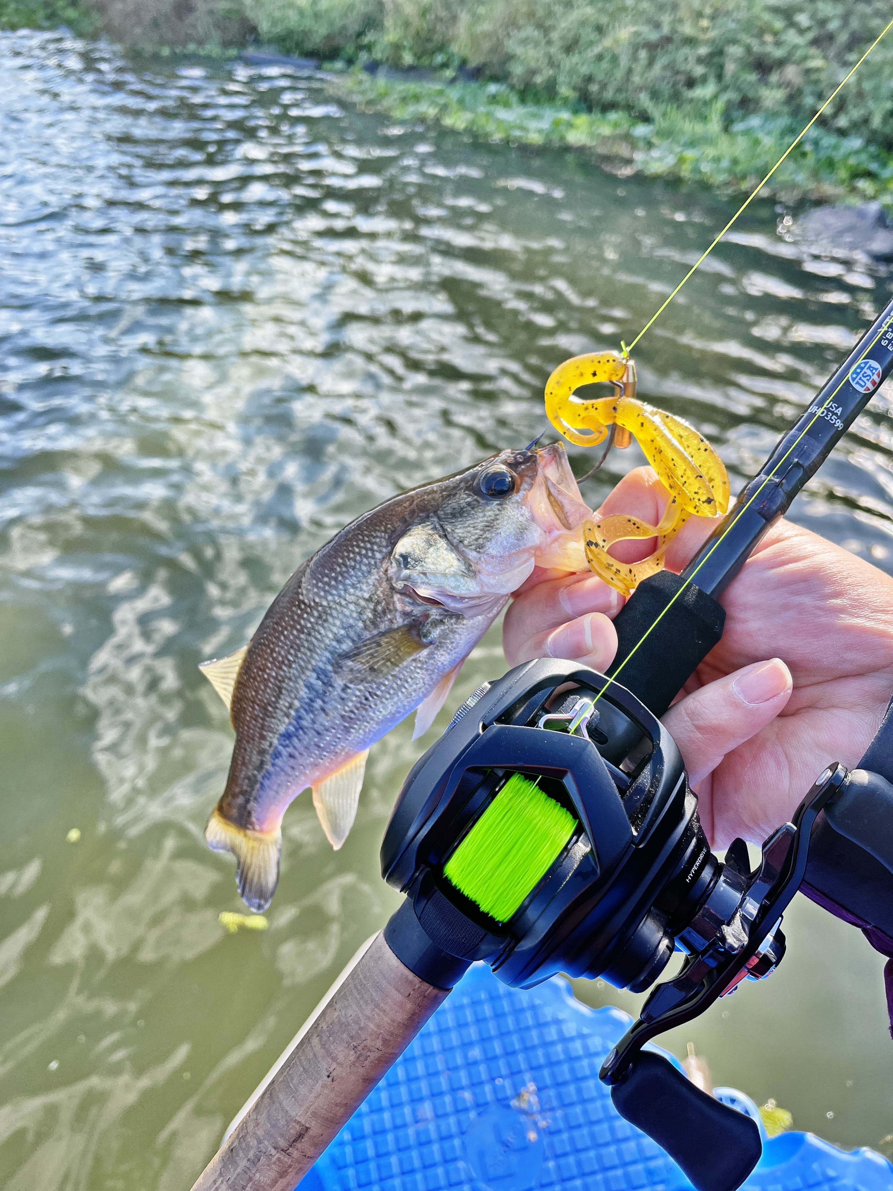 수초 아래로 루어를 집어넣으면 무조건 잡을 수 있을거라 생각했는데,