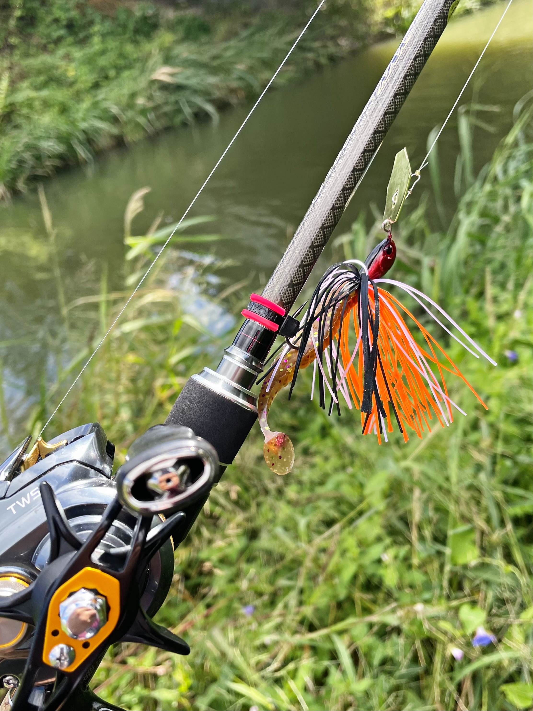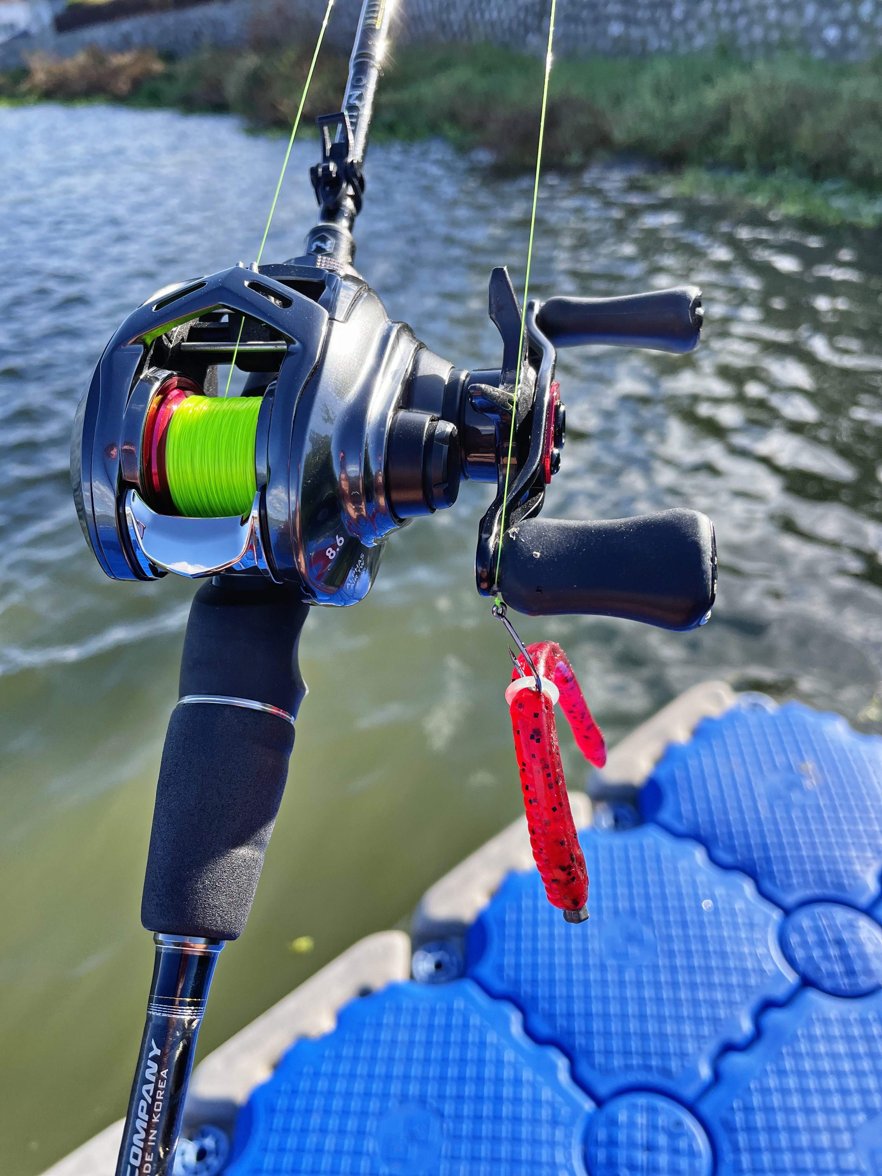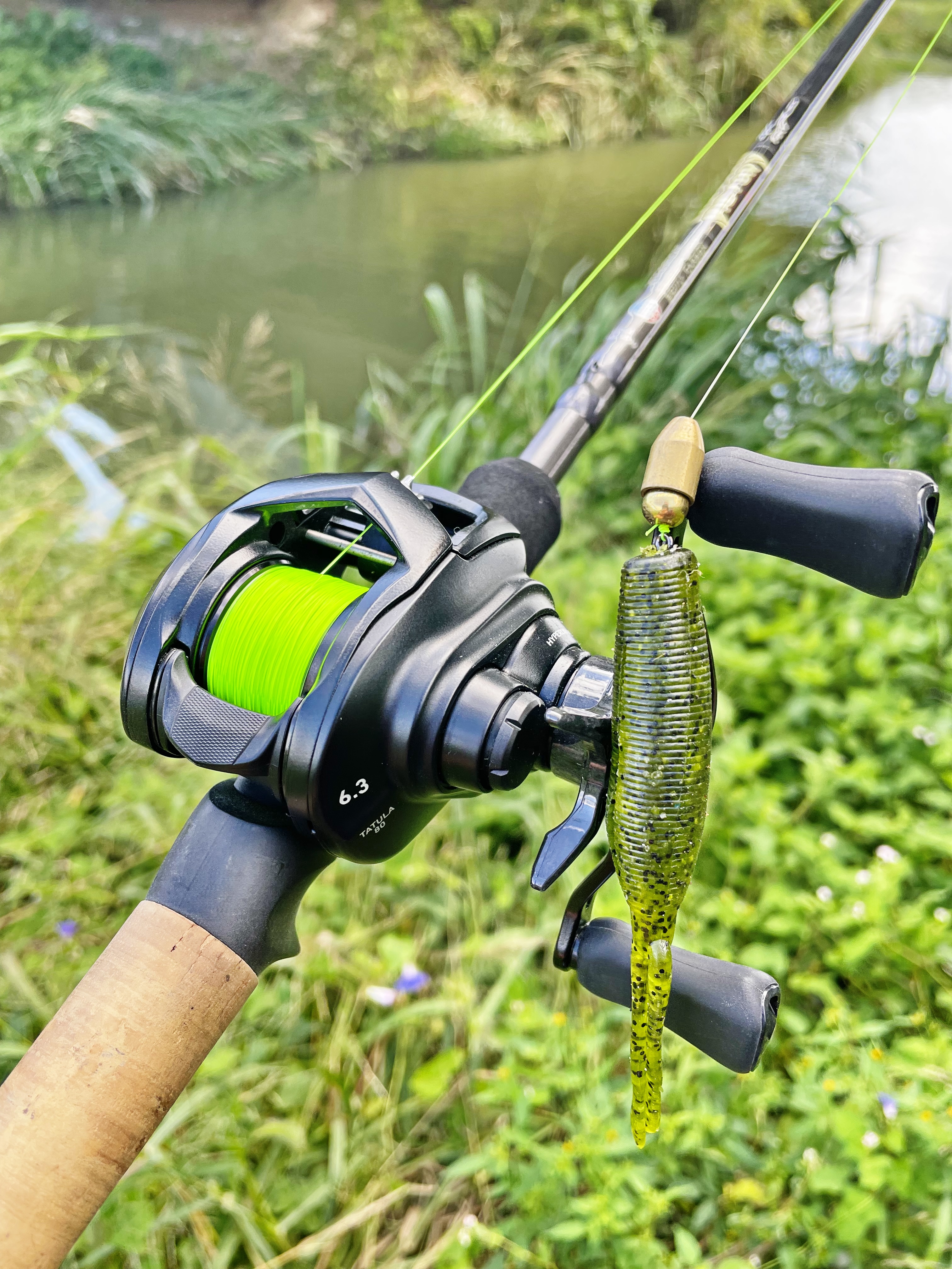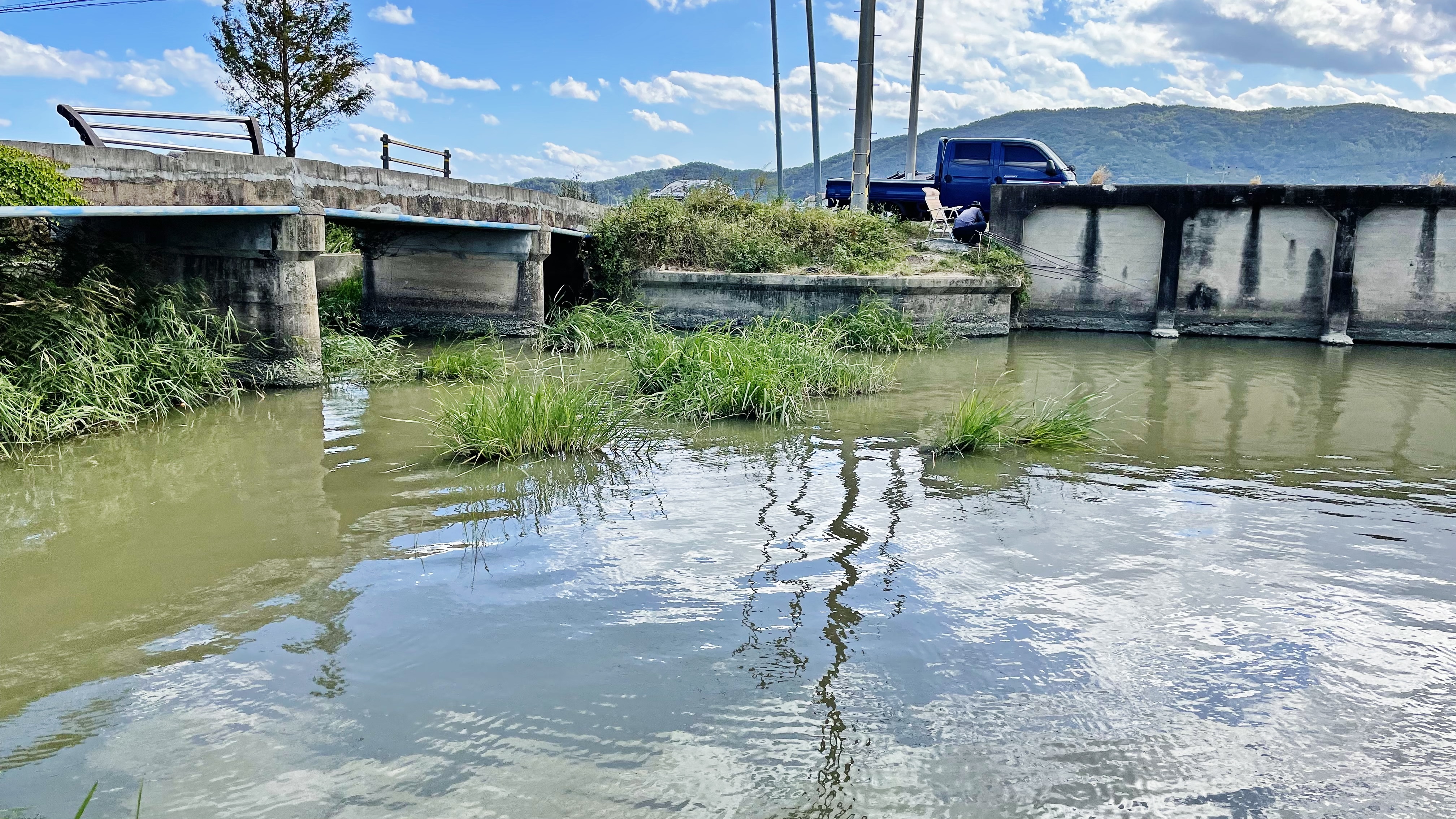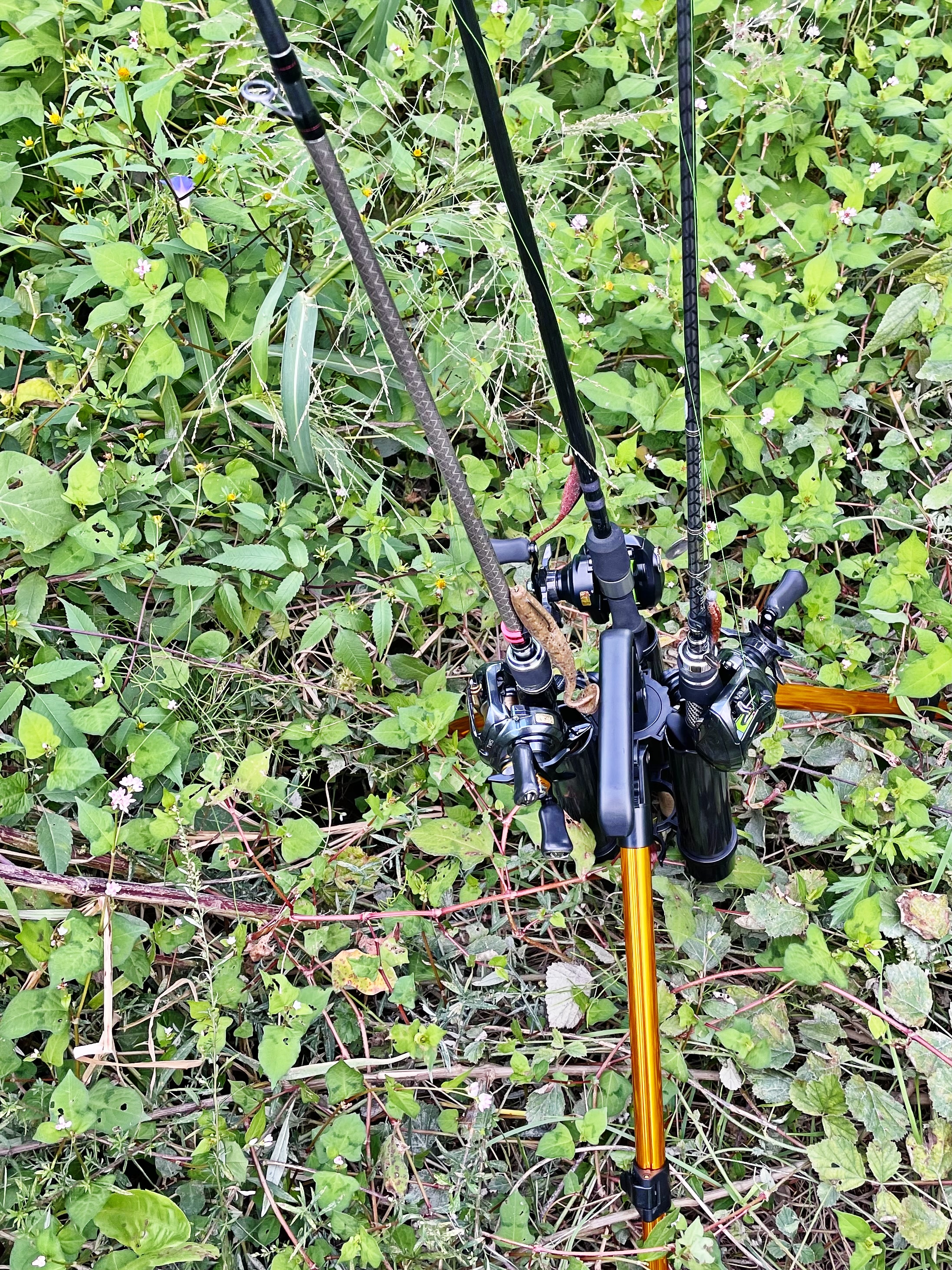 튼튼한 H대나 합사 라인을 감아왔으면 저 부레옥잠 사이로 펀칭이라도 해볼텐데..