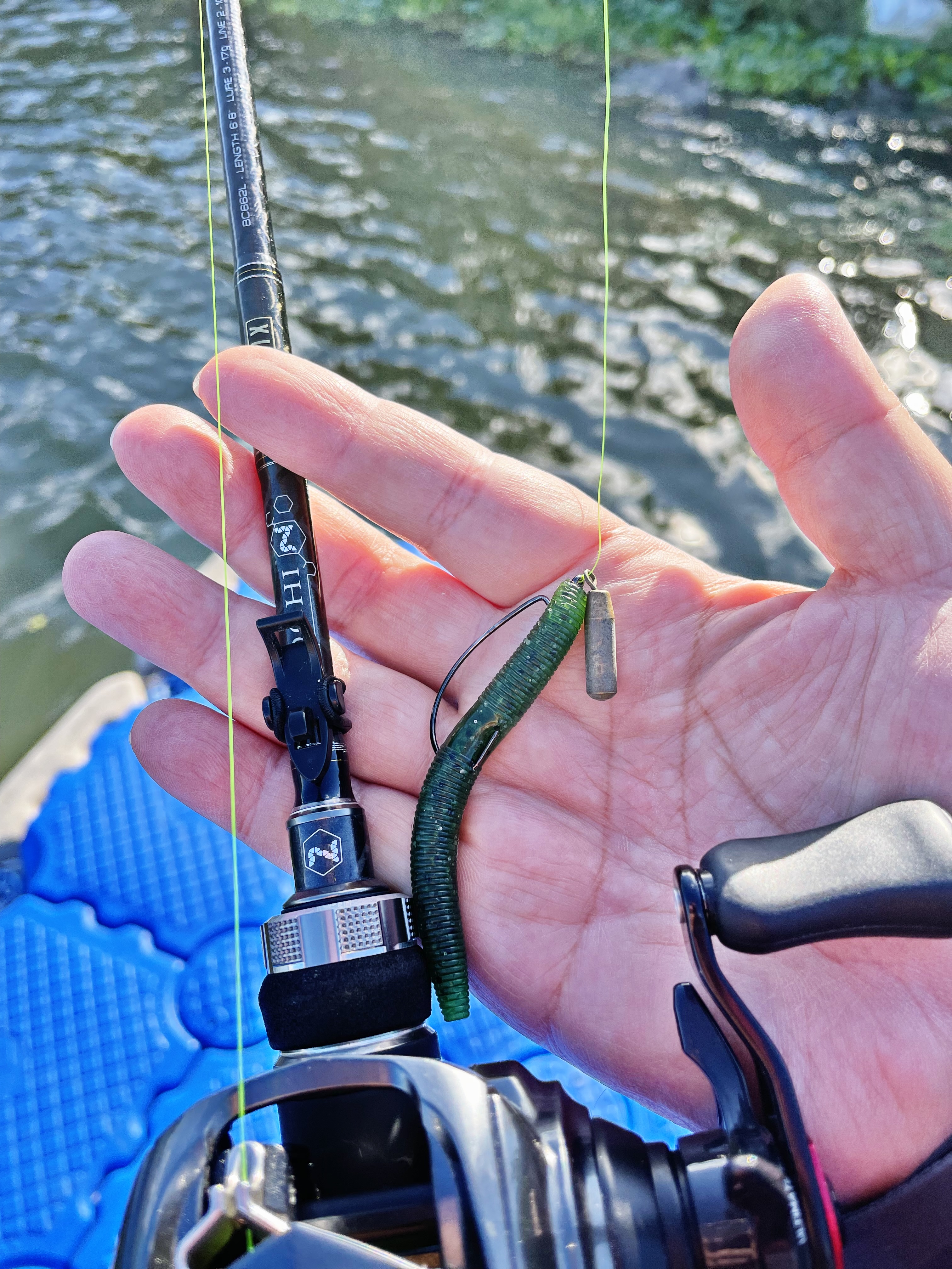 통통한 짭TK트위스터웜을 노싱커 리그로 사용하기에는 물살도 빠르게 흐르고 바람도 제법 불어서