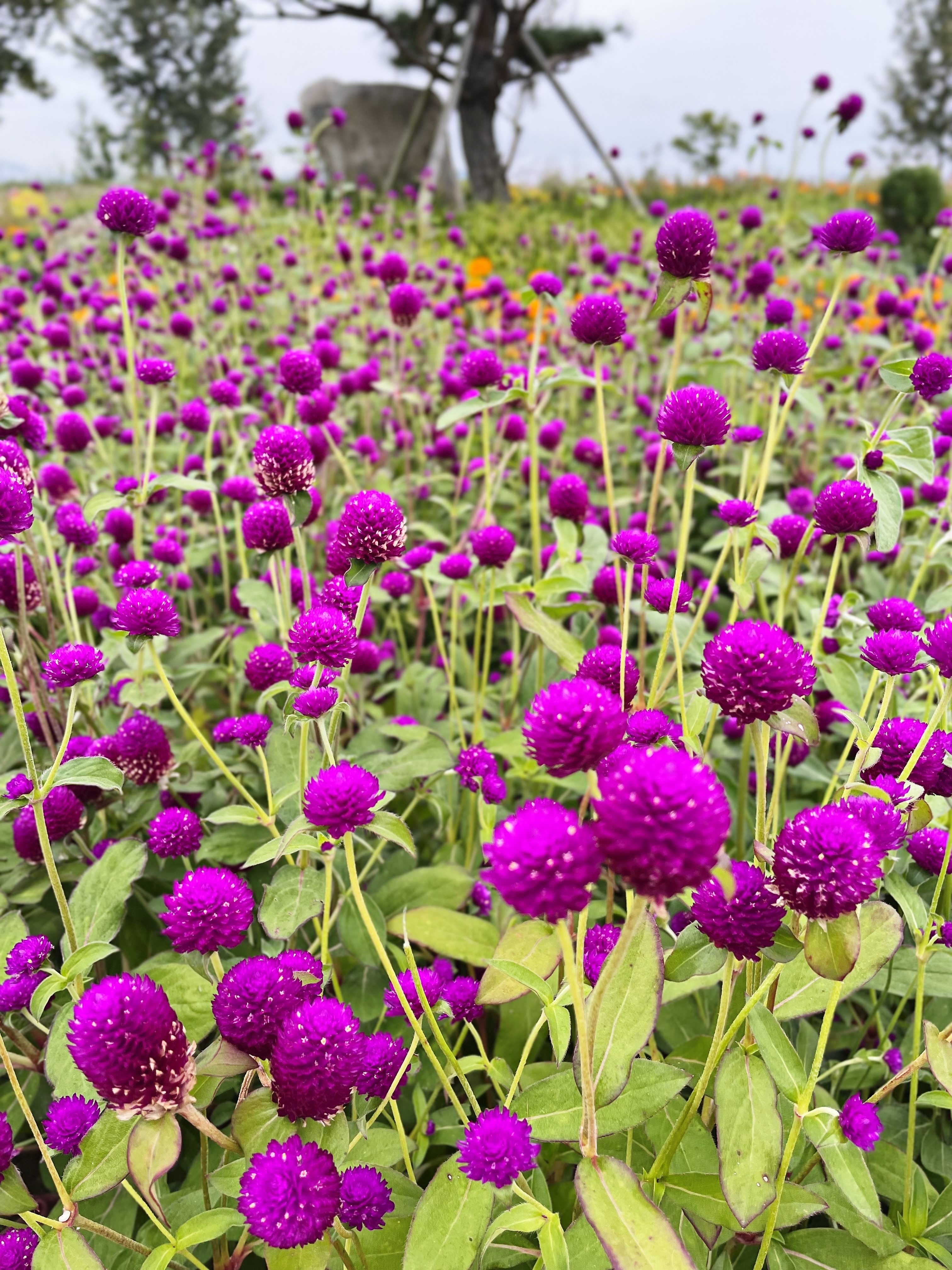 쨍한 보라색의 이 꽃은 꽃의 색이 오랫동안 변하지 않아 '천일홍' 이라고 불린다고 합니다.