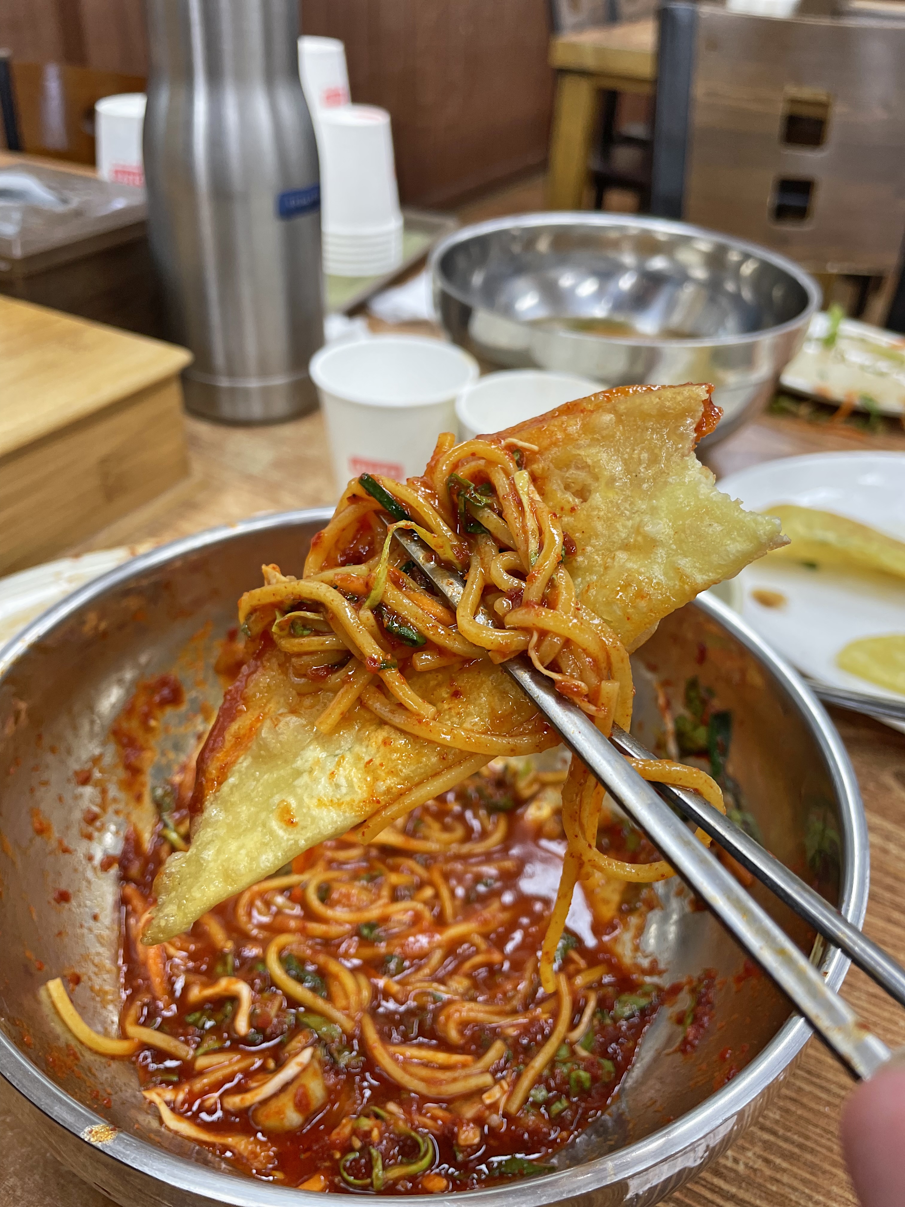 비빔국수와 납딱만두의 조합도 아주 좋습니다.