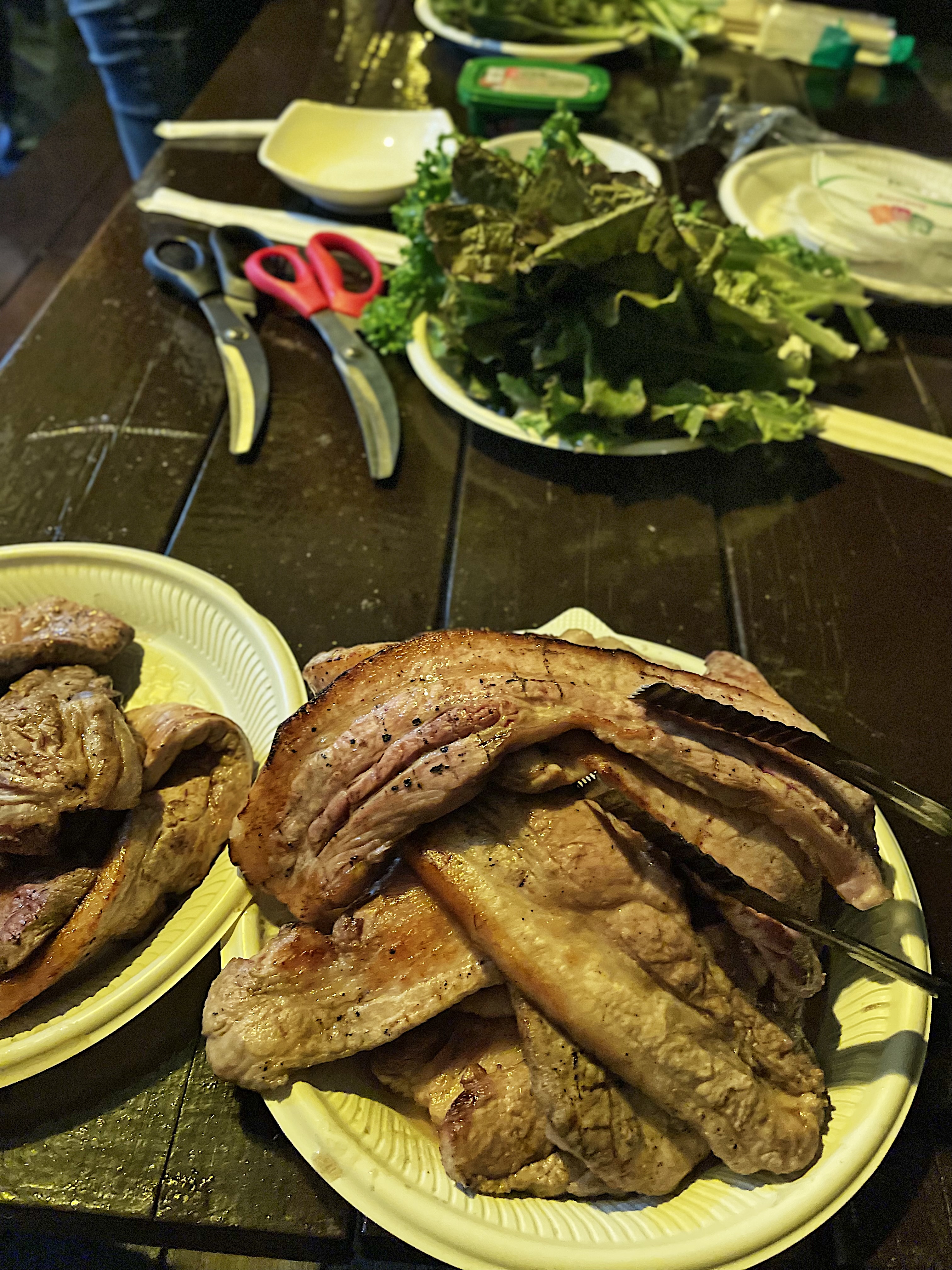 순천 원예농협 하나로마트에서 구매한 삼겹살과 목살, 야채로 맛있는 저녁을 해결하였습니다.