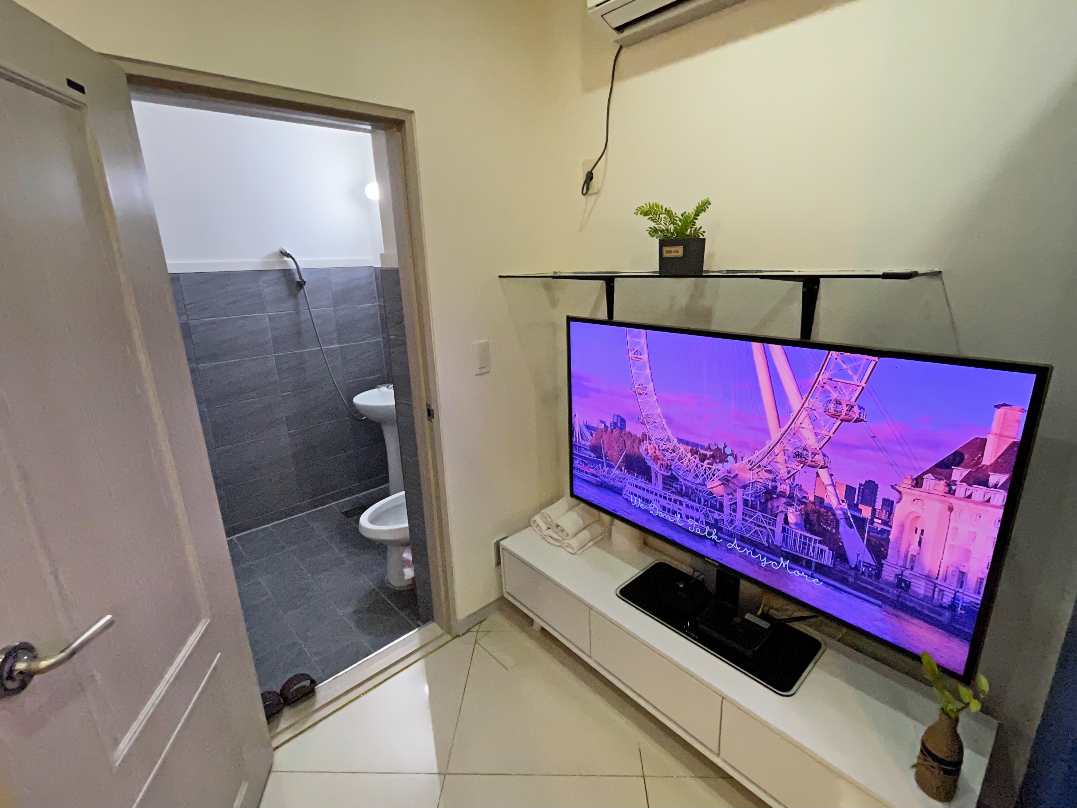 티비 좌측으로 화장실이 있습니다.