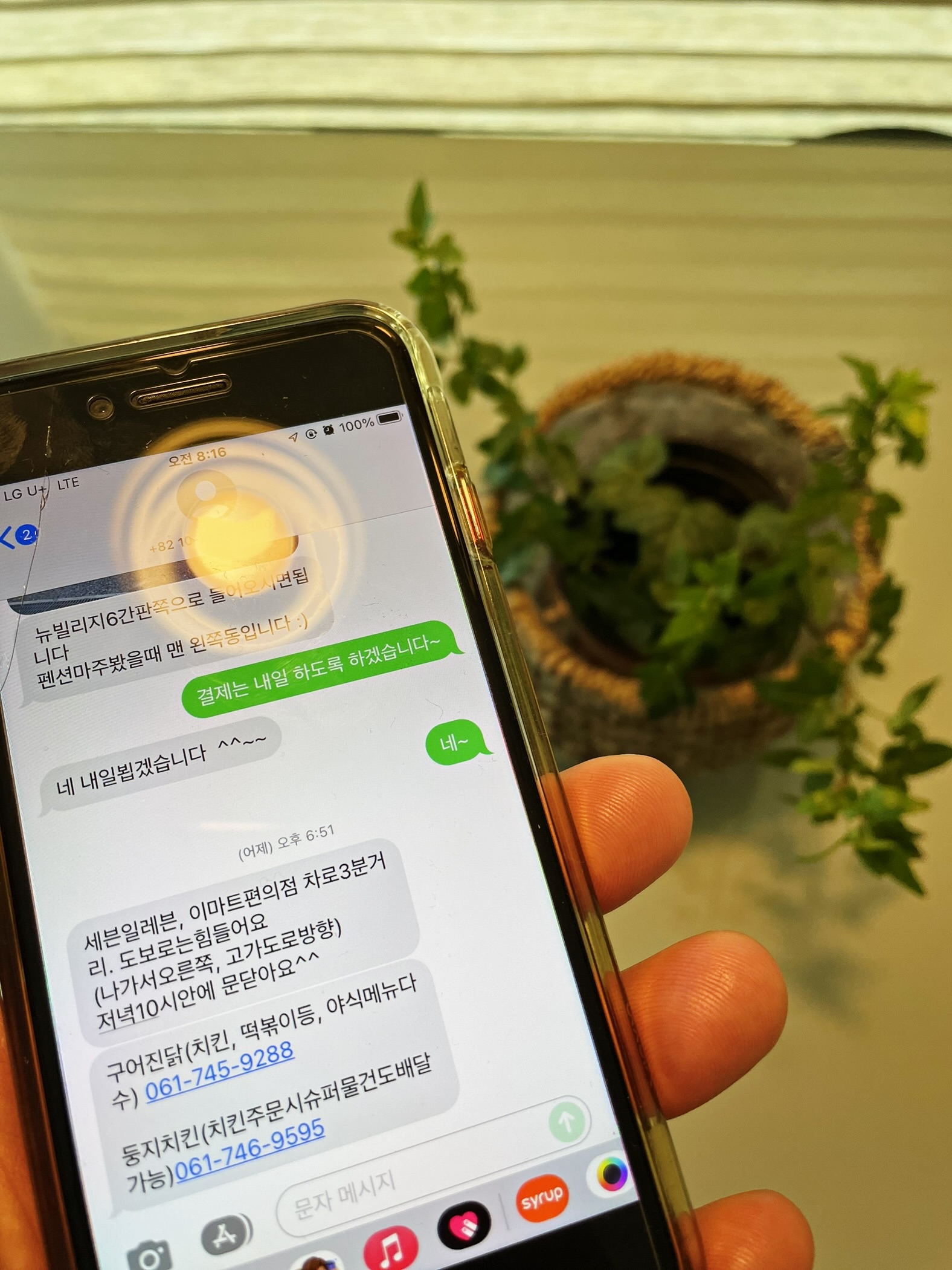 저녁에는 펜션 사장님께서 친절하게 근처 편의점과 배달음식점을 문자로 안내해 주셨습니다.