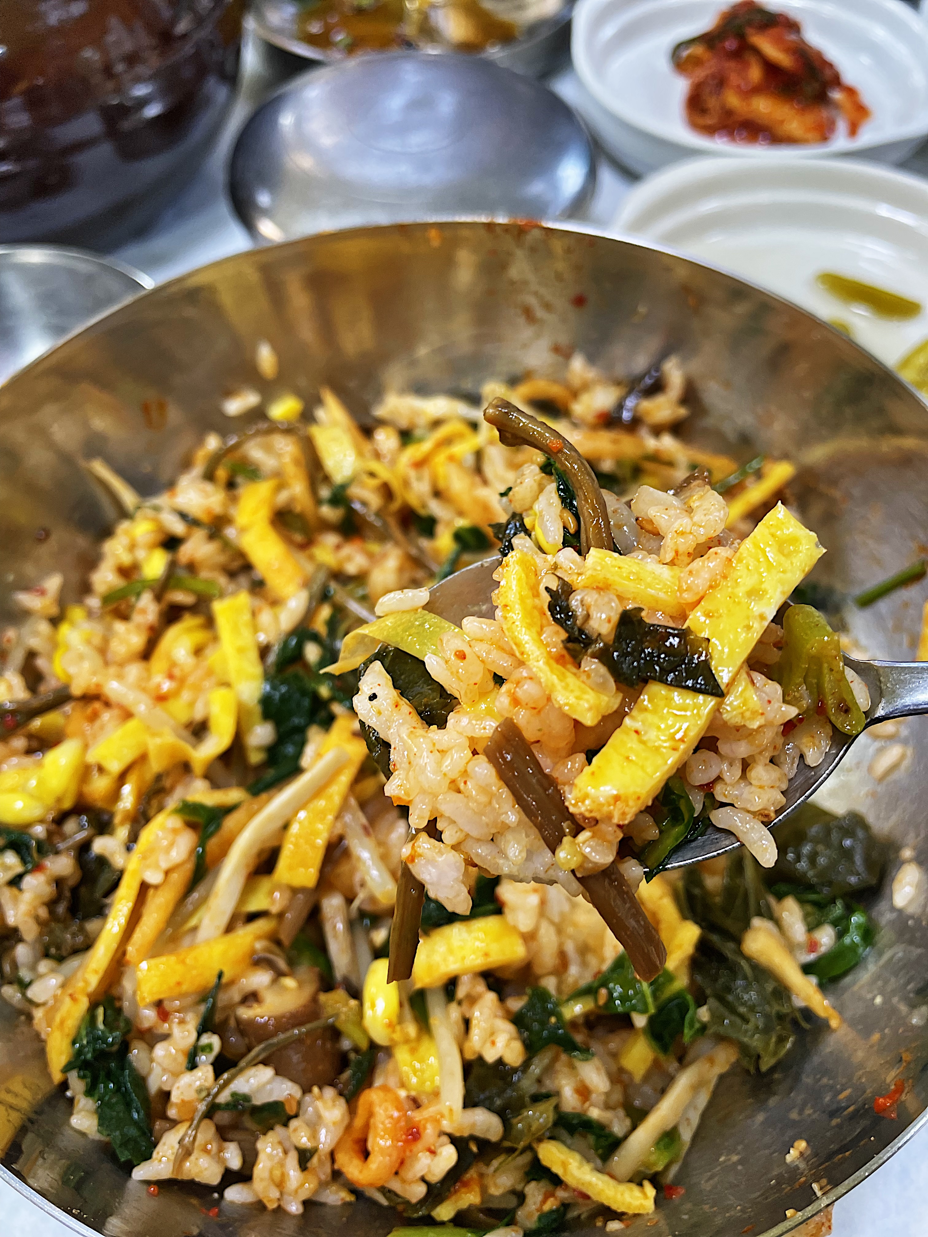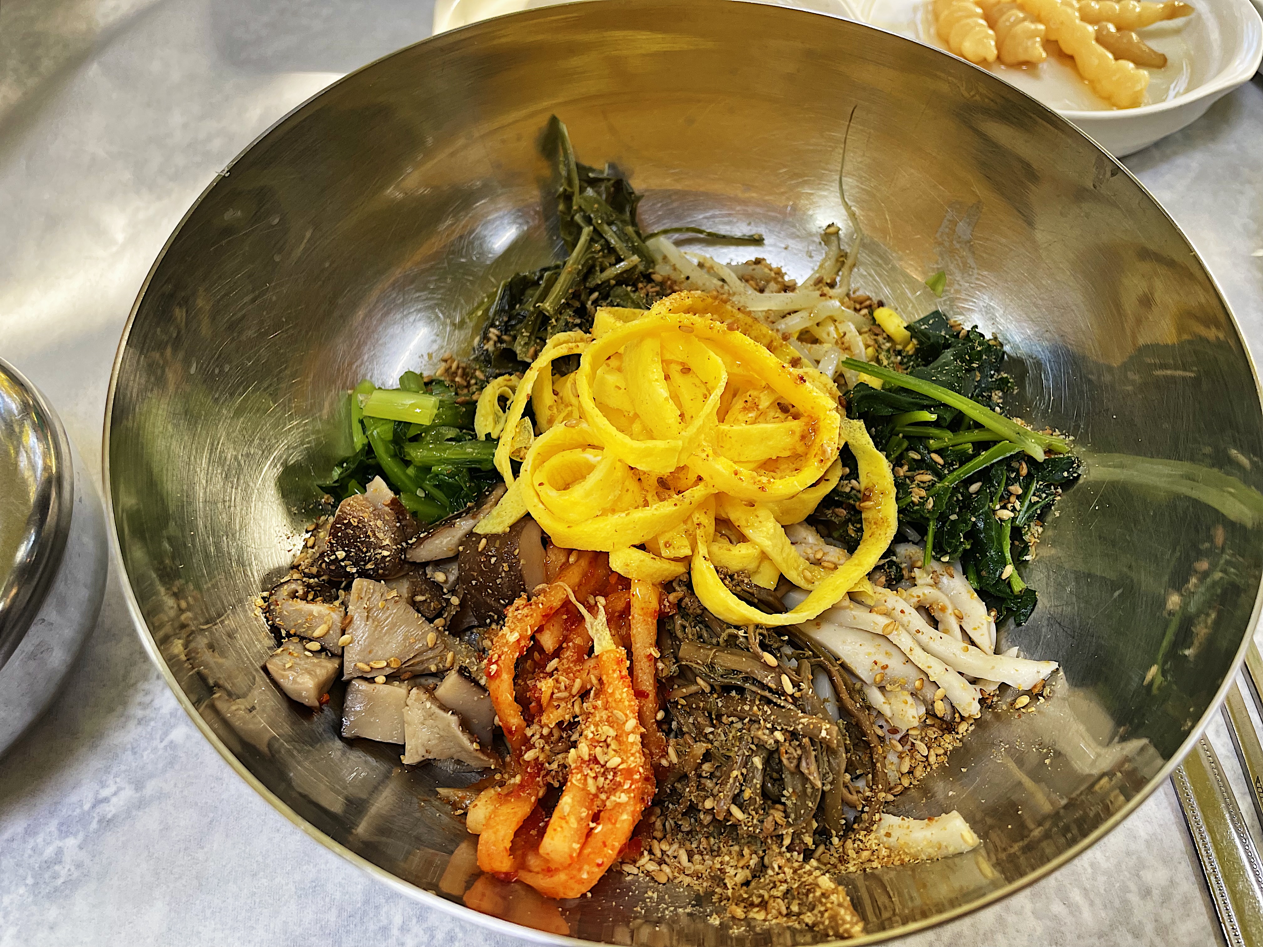 시금치 고사리 버섯 달걀까지 다양한 나물이 들어있네요.