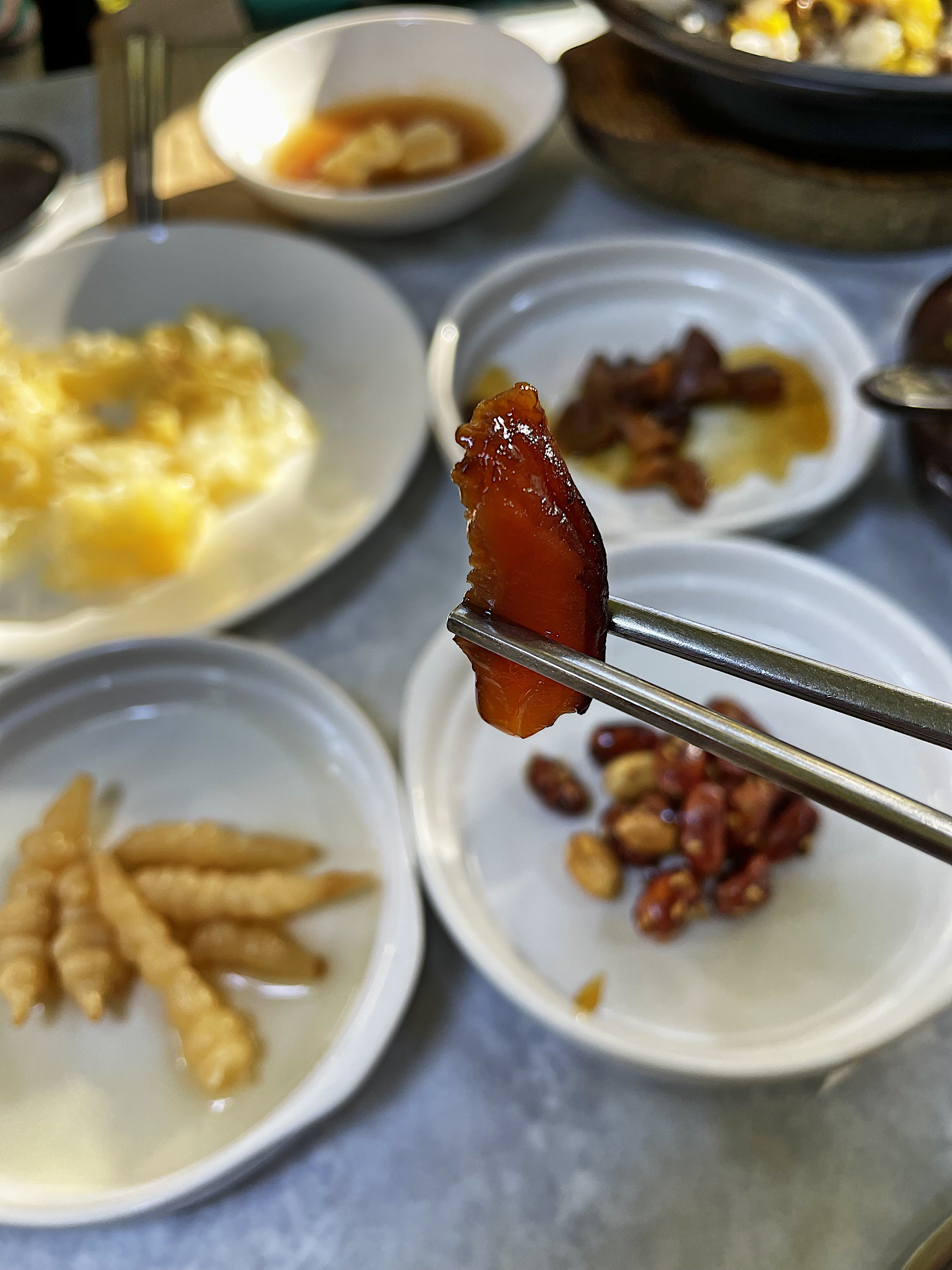 반찬들이 전체적으로 간이 강하지 않고 건강한 맛입니다.